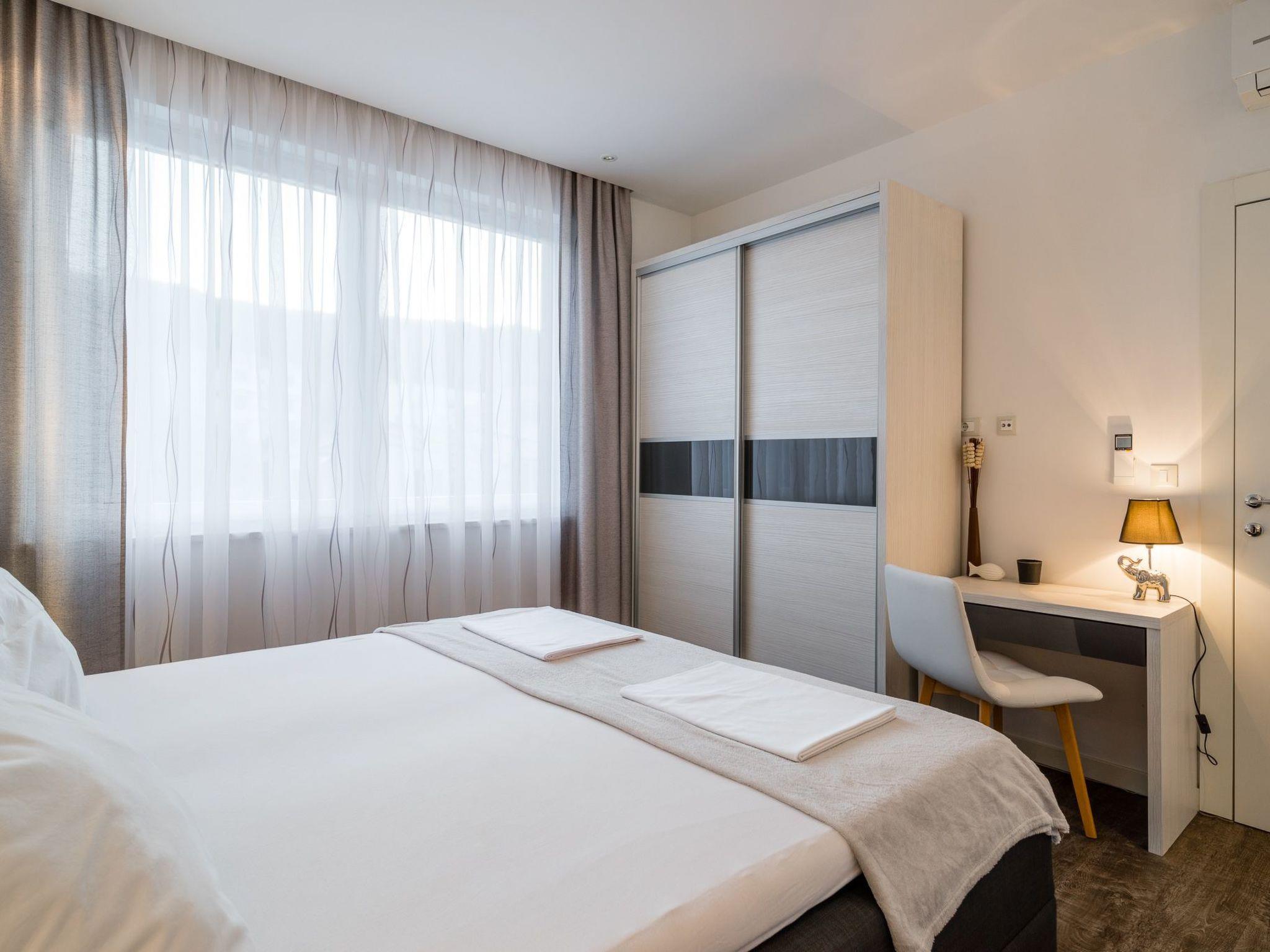 Das Apartment Golden D3 befindet sich im zweiten Stock des Gebäudes. Das sorgfältig gestaltete Interieur mit klaren Linien schafft eine Atmosphäre von Eleganz und Luxus, die in Kombination mit der wunderbaren Umgebung niemanden gleichgültig lässt. Das luxuriöse Appartement Golden D3 besteht aus 2 Doppelschlafzimmern, 1 modernen Badezimmer, 1 Halbbad, einem modernen Wohnzimmer mit Essbereich und einer gut ausgestatteten offenen Küche. Die Wohnung ist für 4 Personen geeignet. Diejenigen, die einen aktiven Urlaub suchen, sind willkommen, gut ausgestattete Fitnessraum für die Gäste des Komplexes Golden reserviert zu verwenden. Das Appartement Golden D3 ist voll klimatisiert und ausgestattet mit SAT-TV, Wi-fi, Safe, Bügeleisen und Bügelbrett, Waschmaschine, elektrischem Außengrill, Haartrockner, Herd, Backofen, Dunstabzugshaube, Kühlschrank mit Gefrierfach, Geschirrspüler, Wasserkocher und Kaffeemaschine. Babybett und Hochstuhl sowie Liegeplatz für Boote sind auf Anfrage erhältlich. Den Gästen steht ein kostenloser Parkplatz zur Verfügung. Haustiere sind nicht erlaubt. Die Gäste erhalten bei ihrer Ankunft ein Begrüßungsgetränk. Genießen Sie Ihren Aufenthalt im luxuriösen Appartement Golden D3 und verbringen Sie einen unvergesslichen Urlaub auf der Insel Ciovo!