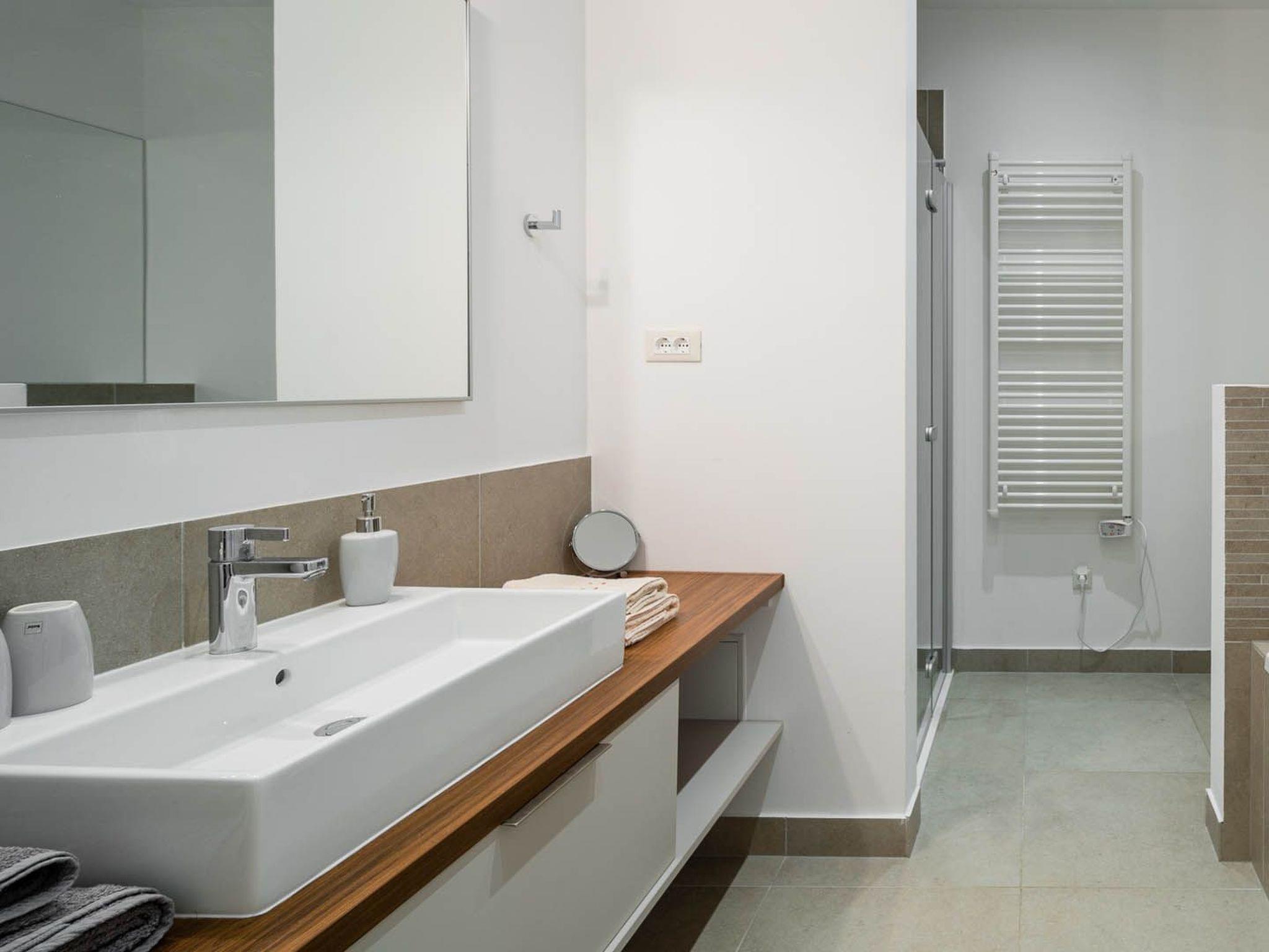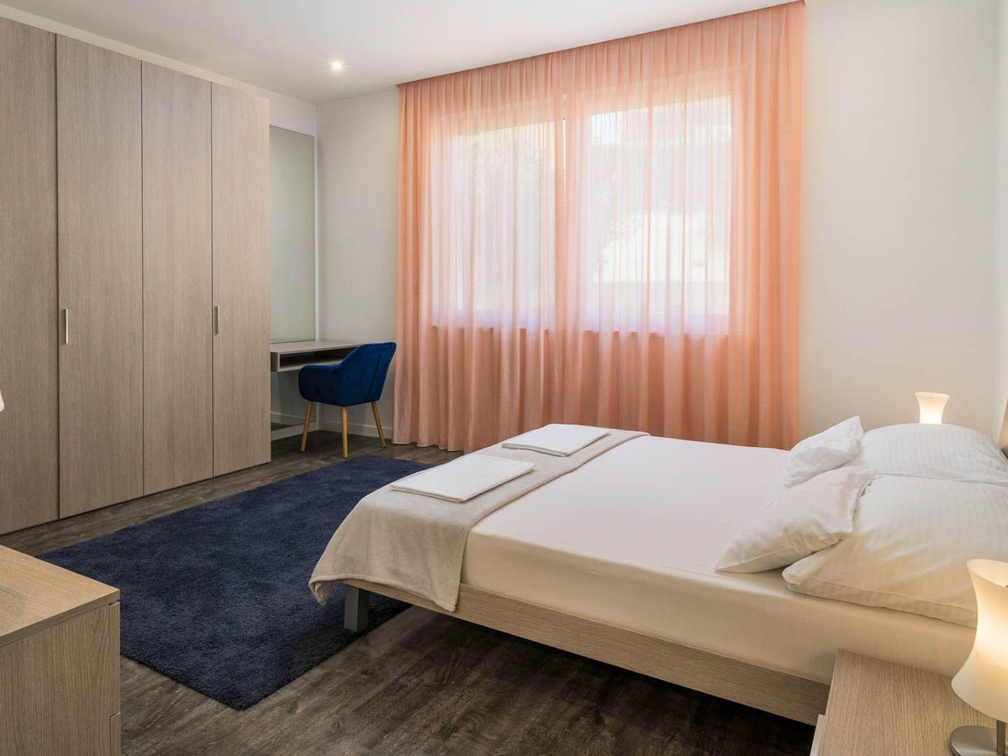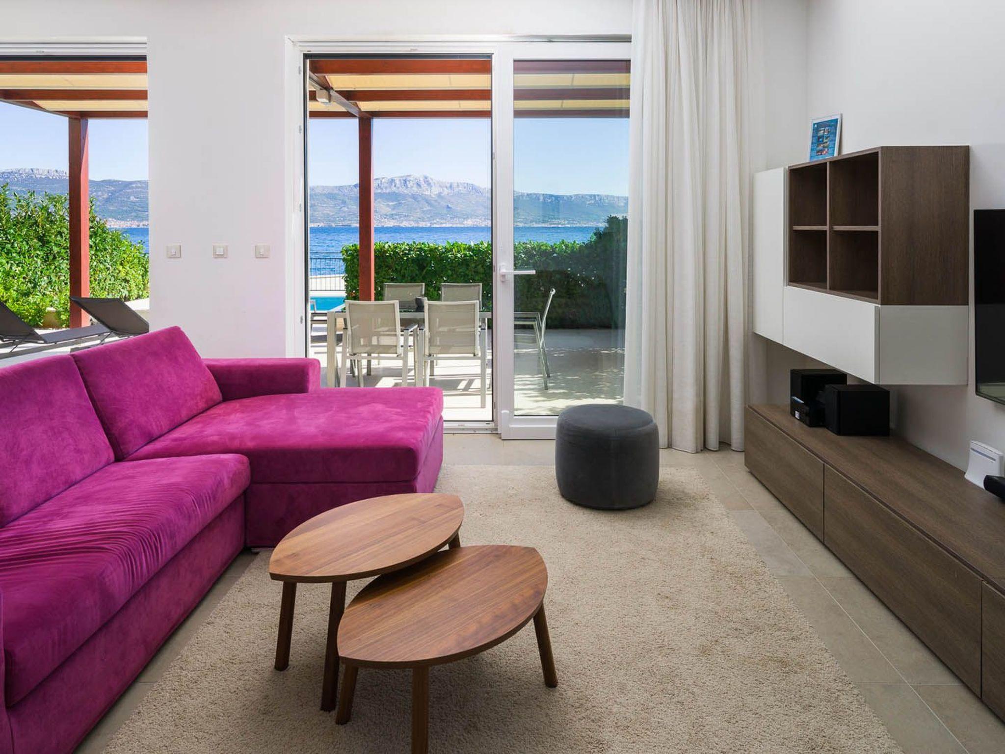 Die Villa Golden C erstreckt sich über das Erdgeschoss, den ersten und zweiten Stock, aufgeteilt in 2 Duplex-Suiten mit separaten Eingängen. Die Villa umfasst 300 m2 Wohnfläche. Sorgfältig gestaltete Innenräume und ein wunderschön gestalteter Außenbereich verbinden Eleganz, Stil und Luxus perfekt miteinander. Villa Golden C besteht aus 6 Doppelschlafzimmern mit angrenzenden Bädern, 2 Wohnzimmern, 1 Halbbad, 2 gut ausgestatteten Küchen und einer geräumigen Dachterrasse mit atemberaubendem Meerblick. Es ist eine geeignete Unterkunft für bis zu 12 Personen. Das Erdgeschoss besteht aus einem geräumigen und luxuriös eingerichteten Wohnzimmer mit Essbereich, einer offenen Küche, einem Schlafzimmer mit Doppelbett und einem eigenen Bad mit Dusche und Badewanne. Eine große Glastür führt vom Wohnzimmer auf die geräumige Terrasse, die mit Gartenmöbeln ausgestattet ist und einen Blick auf den Pool und das Meer bietet. Eine Innentreppe führt in die erste Etage, die als Ruhebereich mit 3 modernen Schlafzimmern (zwei davon mit atemberaubenden französischen Balkonen mit Meerblick) mit eigenem Bad konzipiert ist. Die zweite Etage besteht aus einem zweiten Wohnzimmer mit Essbereich und Zugang zu einem schönen Balkon mit Meerblick, einer offenen Küche und 2 Doppelschlafzimmern mit eigenem Bad. Villa Golden C ist voll klimatisiert und ausgestattet mit SAT-TV, Wi-fi, Safe, Bügeleisen und Bügelbrett, Waschmaschine, Haartrockner, Herd, Backofen, Dunstabzugshaube, Kühlschrank mit Gefrierfach, Geschirrspüler, Wasserkocher und Kaffeemaschine. Babybett und Hochstuhl sowie Liegeplatz für Boote sind auf Anfrage erhältlich.