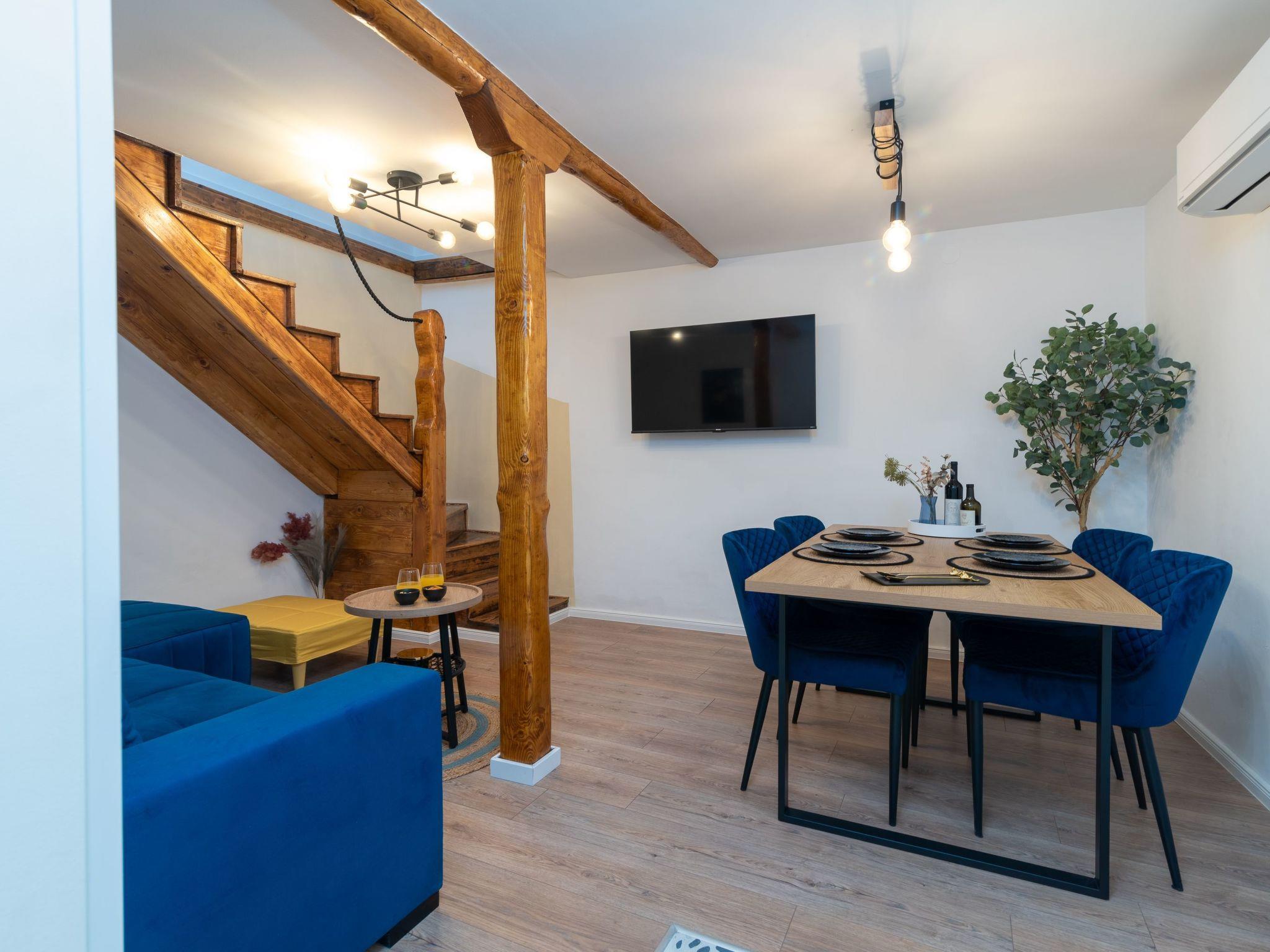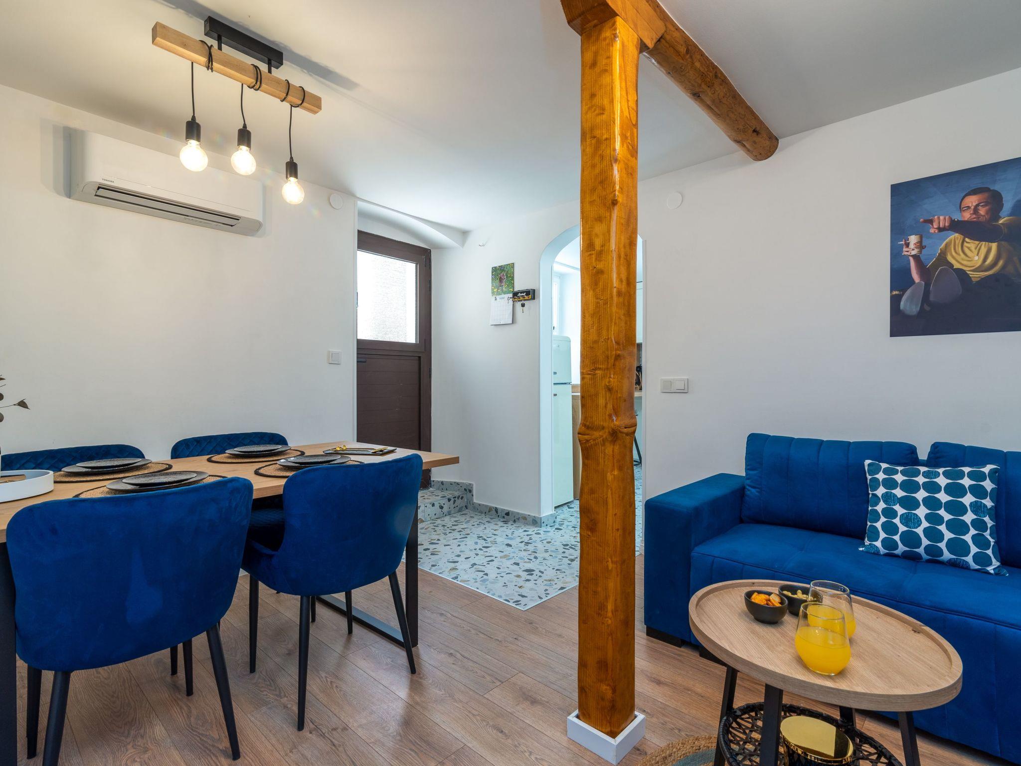 Apartment Domi (PET FRIENDLY) bietet eine voll ausgestattete Unterkunft in einem kürzlich (Mai 24') restaurierten Steinhaus auf zwei Etagen (mit einer Gesamtfläche von 74 qm), bestehend aus zwei Schlafzimmern (mit Kingsize-Betten von 160x200 cm), Wohnzimmer, Küche, Bad mit Dusche und einen kleinen Abstellraum.