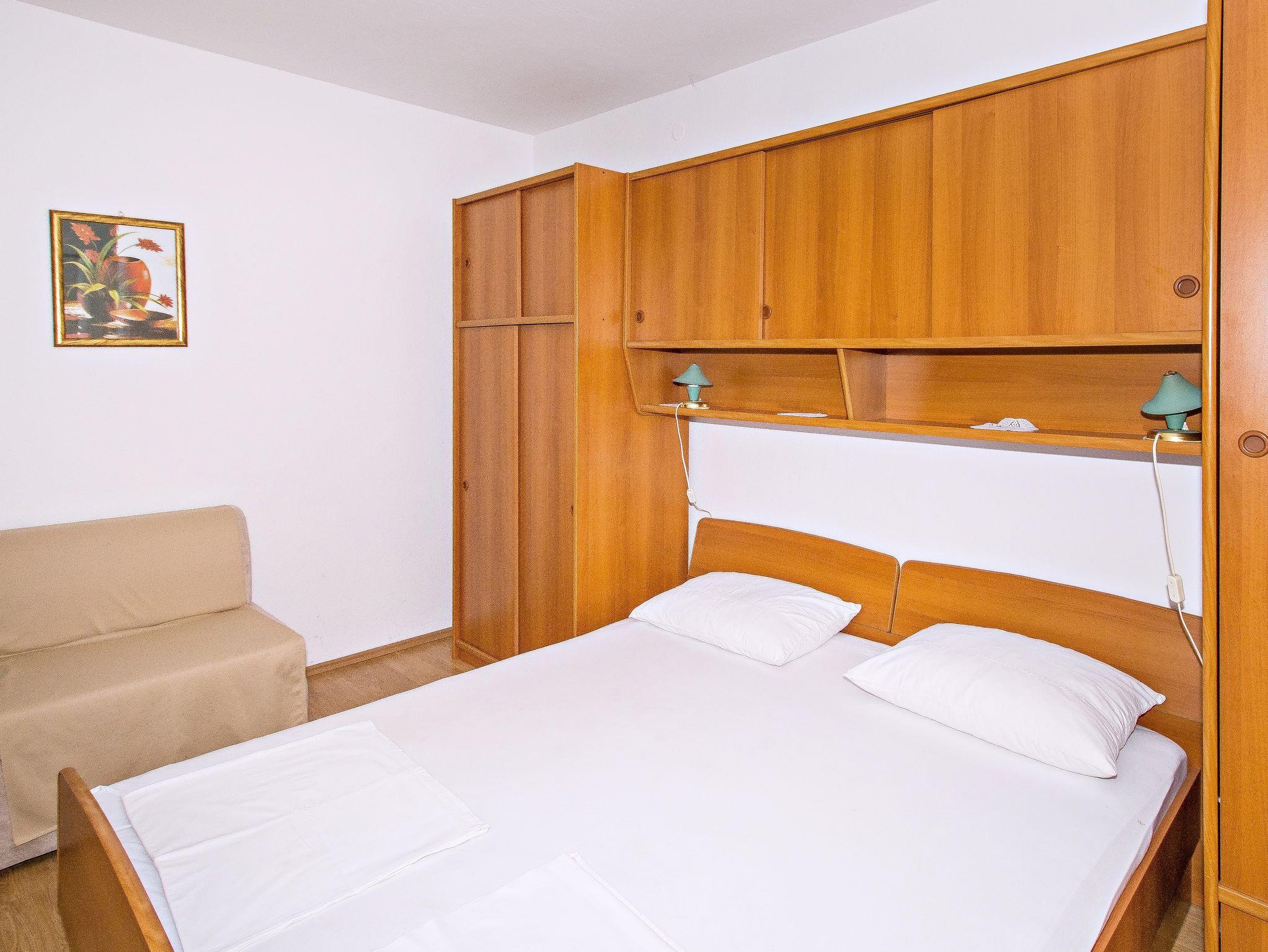 Ferienwohnung bietet Platz für 5 Gäste. Die Betten sind in Schlafzimmern, die es 2 gibt, innerhalb einer Gesamtfläche von 39m2, angeordnet. Die Gäste haben eine eigene Terrasse zur Verfügung, auf der sie in warmen Sommernächten genießen können. Es ist erlaubt, Speisen auf dem Gemeinschafts-Grill vorzubereiten. Durch den Flur der gebuchten Unterkunftseinheit gehen auch andere Gäste oder Vermieter. IM PREIS INBEGRIFFEN: Kurtaxe, Endreinigung, Klimatisierung, Parkplatz, Internet. VERBINDLICHE ZUSÄTZLICHE KOSTEN: Aufzahlung für Kurzaufenthalte (prozentualer Zuschlag pro Nächtigungsanzahl: 30% - 1, 20% - 2, 10% - 3). UNVERBINDLICHE ZUSÄTZLICHE KOSTEN: Wäschewaschen (5,00 € Waschen). Die Verfügbarkeit zusätzlicher Dienstleistungen in Ihrem reservierten Termin und die Preise derselben (falls nicht aufgeführt) müssen im Voraus überprüft werden. Zusätzliche Dienstleistungen die in der Zahlungsaufforderung nicht aufgeführt sind werden direkt beim Vermieter bezahlt, angenommen der Gast nutzt auch diese.