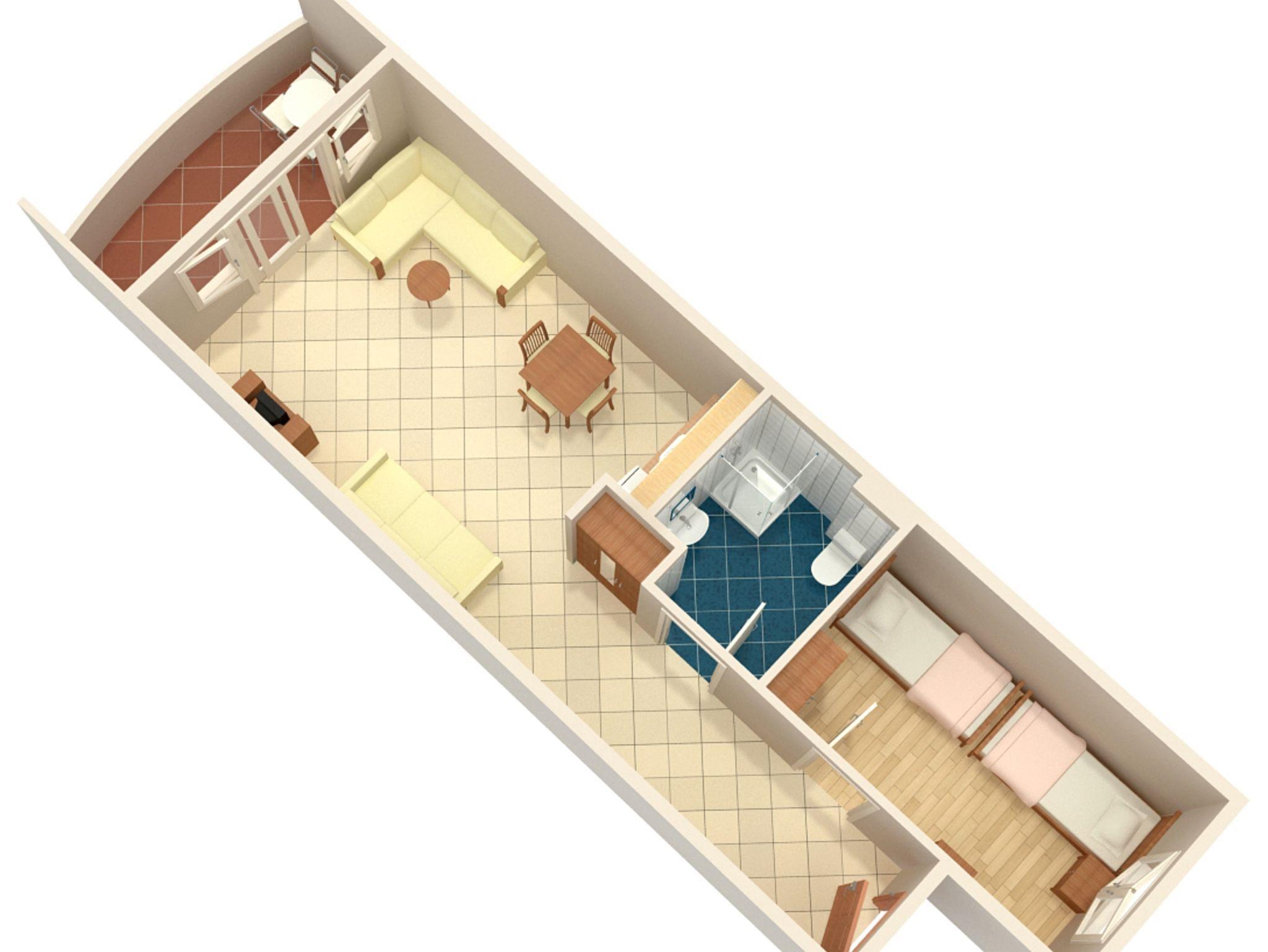 Ferienwohnung bietet Platz für 5 Gäste. Die Betten sind in Schlafzimmern, die es 1 gibt, und in Wohnzimmer, innerhalb einer Gesamtfläche von 38m2, angeordnet. Die Gäste haben eine eigene Terrasse zur Verfügung, auf der sie in warmen Sommernächten genießen können. Es ist erlaubt, Speisen auf dem Gemeinschafts-Grill vorzubereiten. In der Unterkunftseinheit besteht die Möglichkeit des Mitbringens von Haustieren gegen Aufpreis. IM PREIS INBEGRIFFEN: Endreinigung, Klimatisierung, Parkplatz, Internet, Kinderbett, Bügeleisen, Bügelbrett, Föhn. VERBINDLICHE ZUSÄTZLICHE KOSTEN: Kurtaxe (Erwachsene 0,93 € - 1,80 € Nacht/Person, Kinderermäßigung 12 - 17 Jahre). UNVERBINDLICHE ZUSÄTZLICHE KOSTEN: Frühstück (4,00 €, 50% Nachlass für Kinder zwischen 4 und 12 Jahren, Kinder bis 4 Jahre sind frei.), Halbpension (10,00 €, 50% Nachlass für Kinder zwischen 4 und 12 Jahren, Kinder bis 4 Jahre sind frei.), Vollpension (15,00 €, 50% Nachlass für Kinder zwischen 4 und 12 Jahren, Kinder bis 4 Jahre sind frei.), Haustiere (5,00 € pro Nacht). Die Verfügbarkeit zusätzlicher Dienstleistungen in Ihrem reservierten Termin und die Preise derselben (falls nicht aufgeführt) müssen im Voraus überprüft werden. Zusätzliche Dienstleistungen die in der Zahlungsaufforderung nicht aufgeführt sind werden direkt beim Vermieter bezahlt, angenommen der Gast nutzt auch diese.