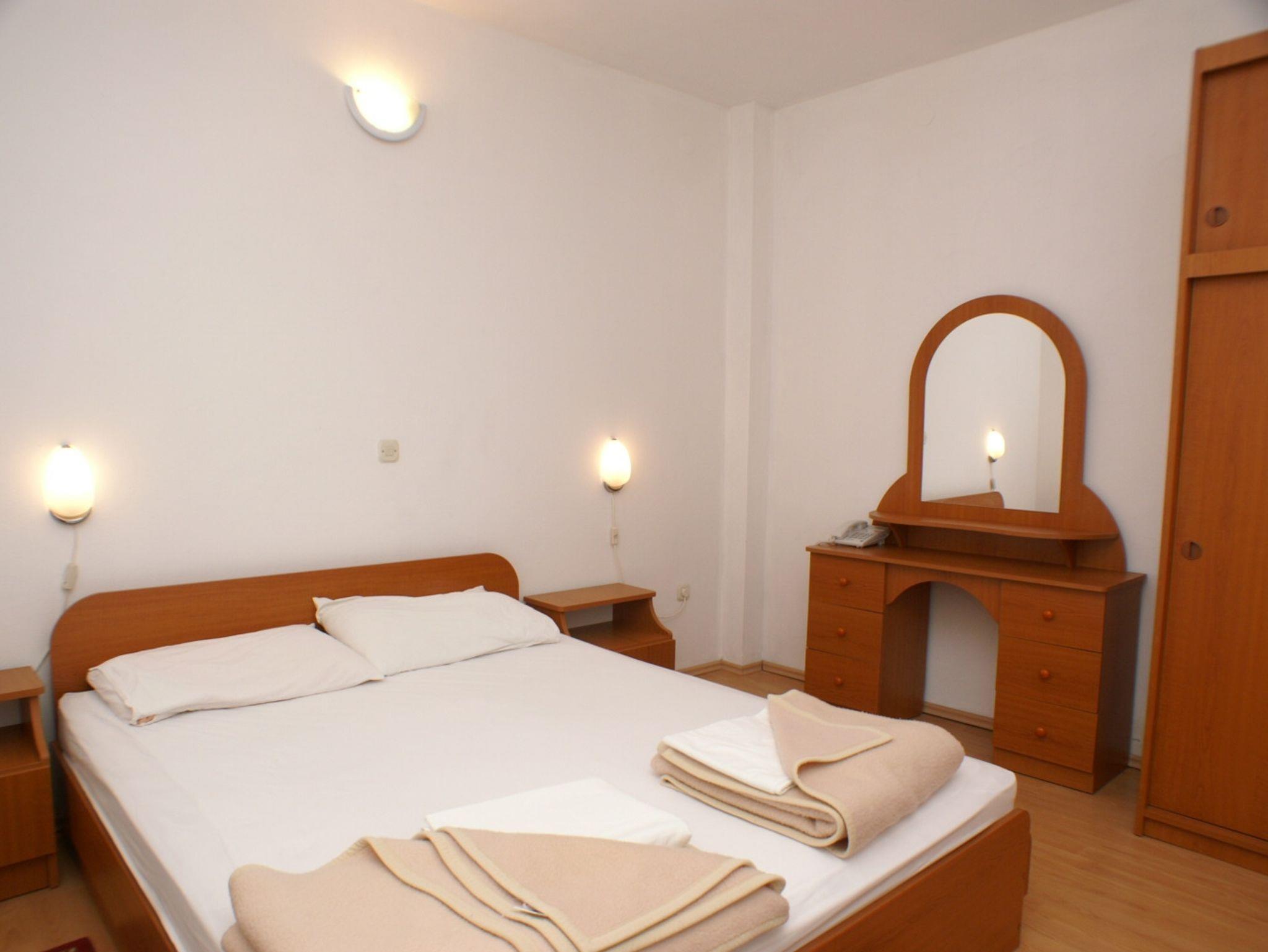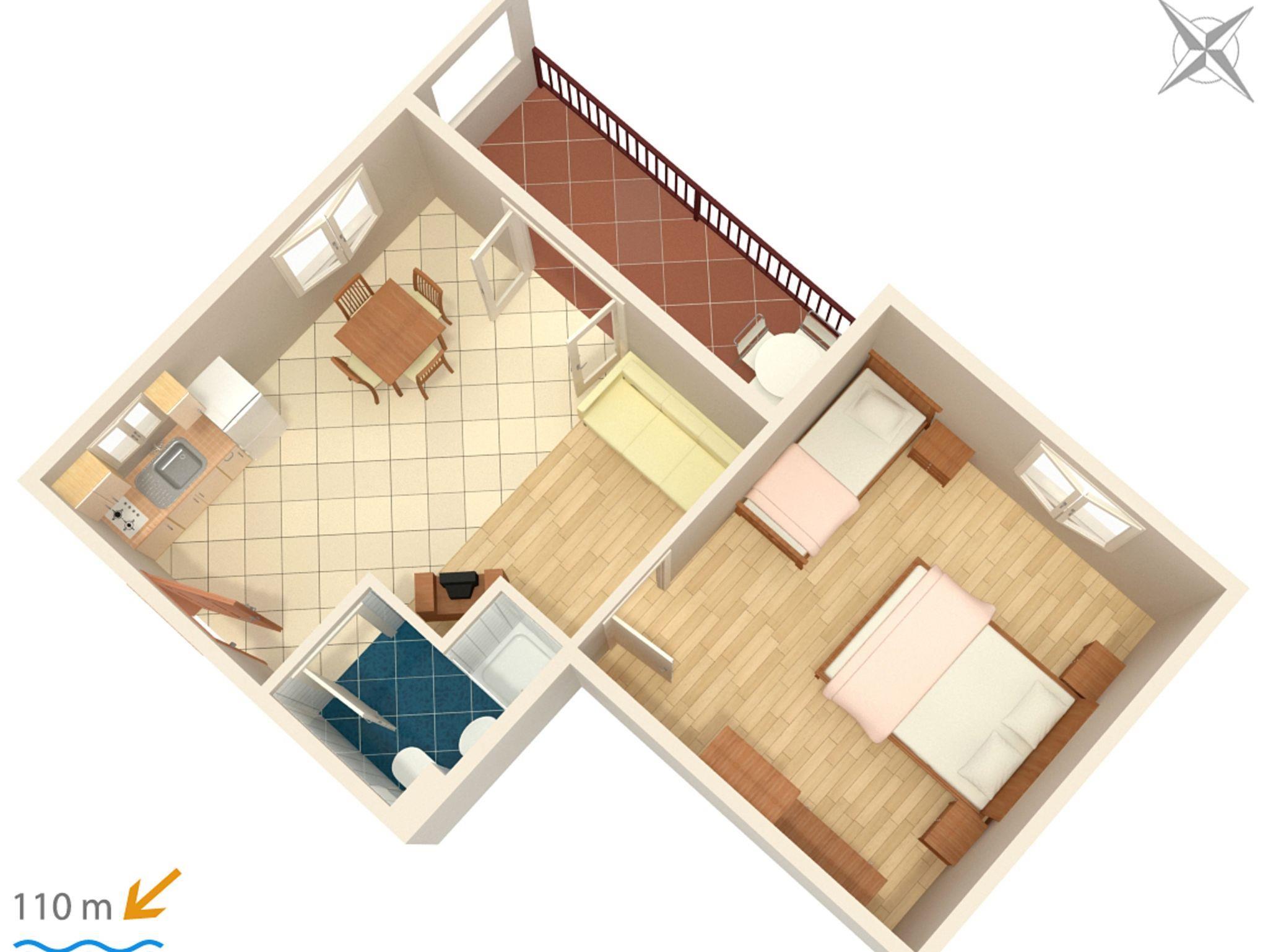 Ferienwohnung bietet Platz für 5 Gäste. Die Betten sind in Schlafzimmern, die es 1 gibt, und in Wohnzimmer, innerhalb einer Gesamtfläche von 40m2, angeordnet. Die Gäste haben eine eigene Terrasse zur Verfügung, auf der sie in warmen Sommernächten genießen können. Es ist erlaubt, Speisen auf dem Gemeinschafts-Grill vorzubereiten. In der Unterkunftseinheit besteht die Möglichkeit des Mitbringens von Haustieren gegen Aufpreis. IM PREIS INBEGRIFFEN: Endreinigung, Klimatisierung, Parkplatz, Internet, Kinderbett, Bügeleisen, Bügelbrett, Föhn. VERBINDLICHE ZUSÄTZLICHE KOSTEN: Kurtaxe (Erwachsene 0,93 € - 1,80 € Nacht/Person, Kinderermäßigung 12 - 17 Jahre). UNVERBINDLICHE ZUSÄTZLICHE KOSTEN: Frühstück (4,00 €, 50% Nachlass für Kinder zwischen 4 und 12 Jahren, Kinder bis 4 Jahre sind frei.), Halbpension (10,00 €, 50% Nachlass für Kinder zwischen 4 und 12 Jahren, Kinder bis 4 Jahre sind frei.), Vollpension (15,00 €, 50% Nachlass für Kinder zwischen 4 und 12 Jahren, Kinder bis 4 Jahre sind frei.), Haustiere (5,00 € pro Nacht). Die Verfügbarkeit zusätzlicher Dienstleistungen in Ihrem reservierten Termin und die Preise derselben (falls nicht aufgeführt) müssen im Voraus überprüft werden. Zusätzliche Dienstleistungen die in der Zahlungsaufforderung nicht aufgeführt sind werden direkt beim Vermieter bezahlt, angenommen der Gast nutzt auch diese.