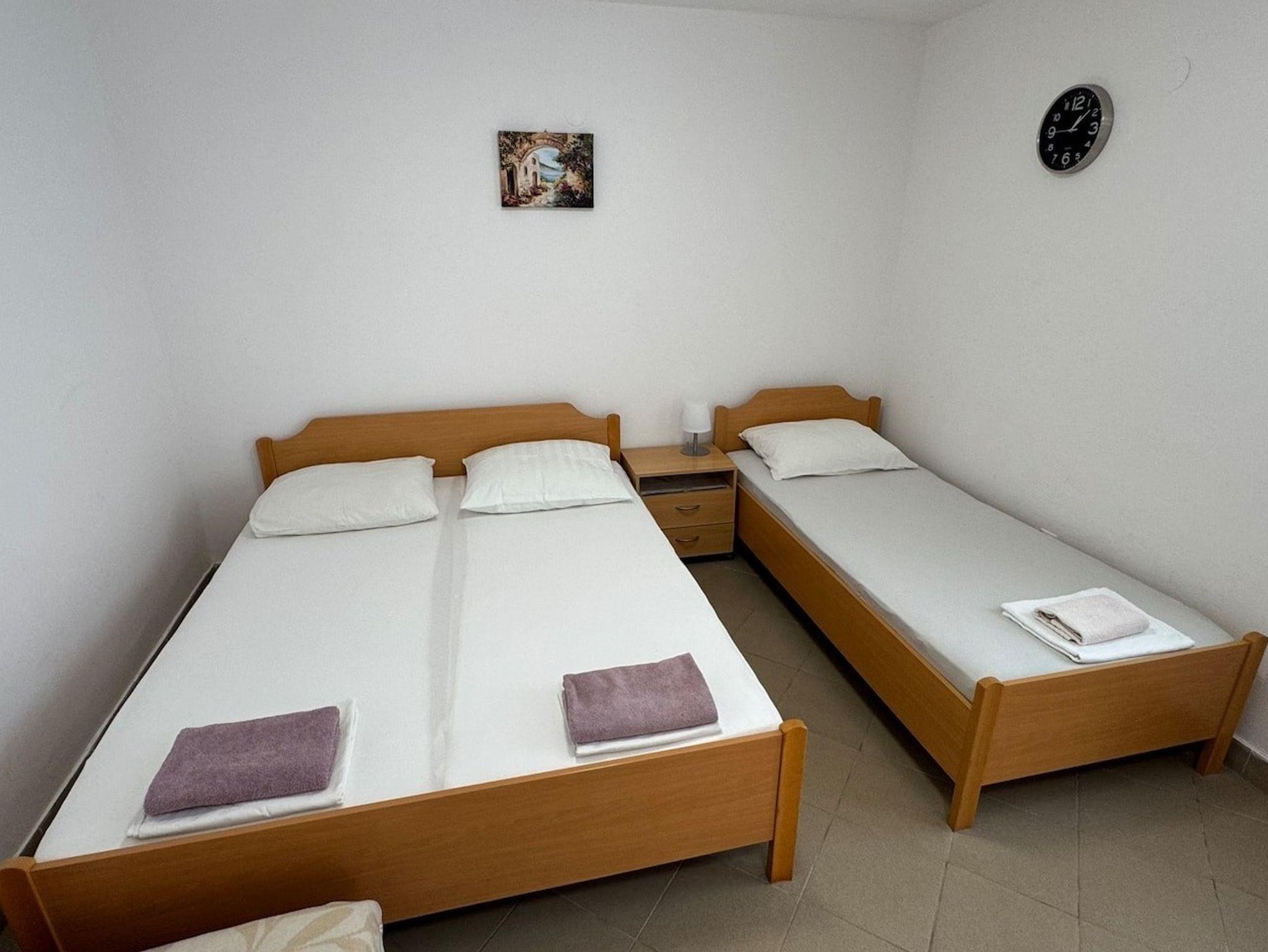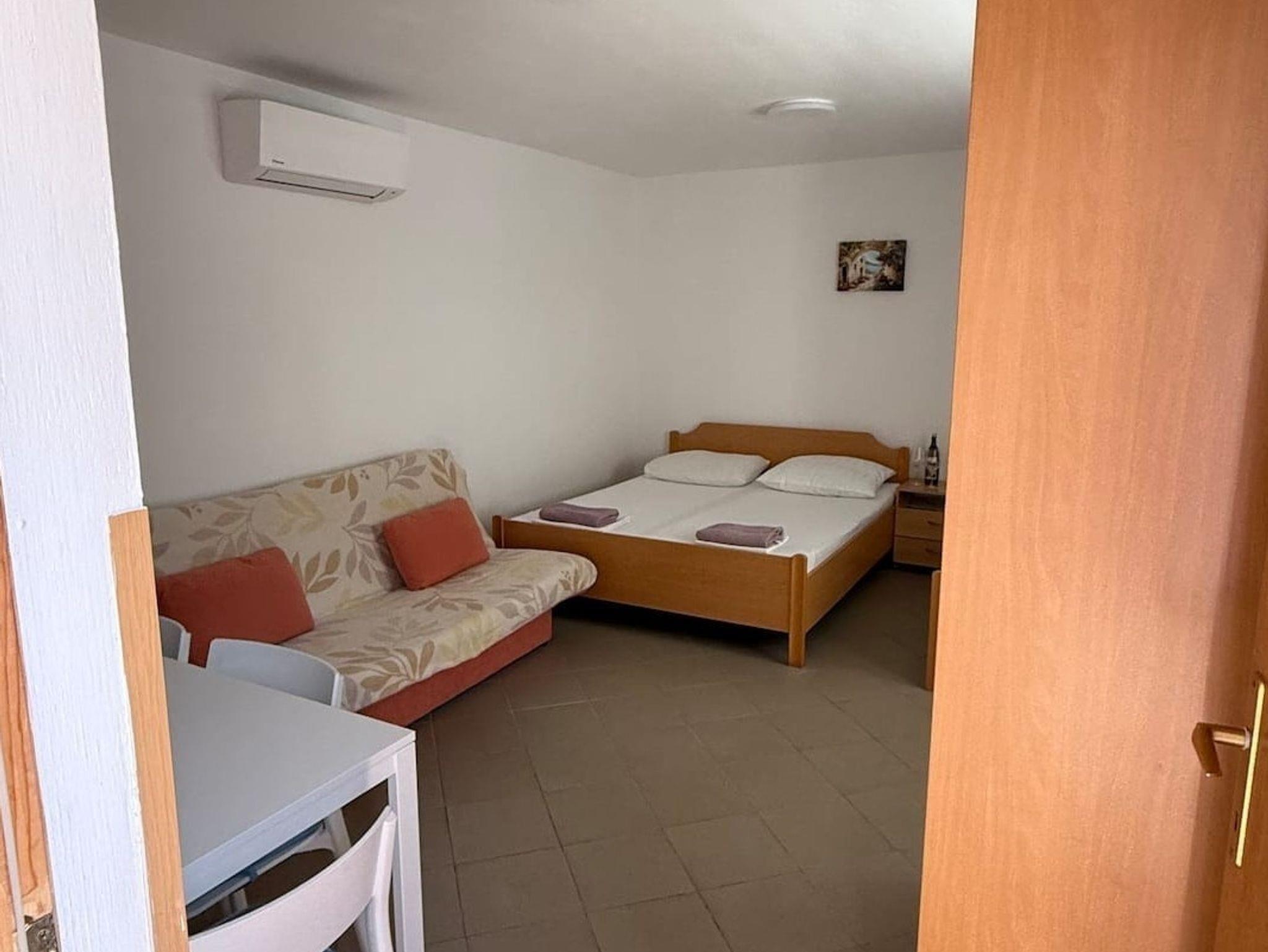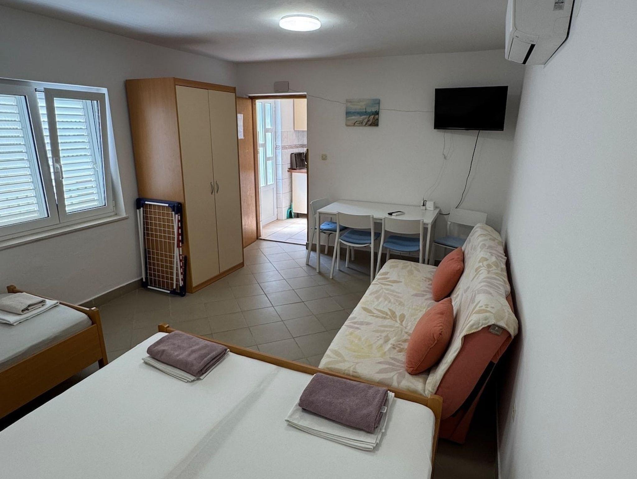 Studio bietet Platz für 3 Gäste. Die Betten sind in Schlafzimmern, die es 1 gibt, innerhalb einer Gesamtfläche von 29m2, angeordnet. Die Gäste haben eine eigene Terrasse zur Verfügung, auf der sie in warmen Sommernächten genießen können. Es ist erlaubt, Speisen auf dem Gemeinschafts-Grill vorzubereiten. Durch die Terrasse der gebuchten Unterkunftseinheit gehen auch andere Gäste oder Vermieter. IM PREIS INBEGRIFFEN: Kurtaxe, Endreinigung, Klimatisierung, Parkplatz, Internet. VERBINDLICHE ZUSÄTZLICHE KOSTEN: Aufzahlung für Kurzaufenthalte (prozentualer Zuschlag pro Nächtigungsanzahl: 30% - 1, 20% - 2, 10% - 3). Die Verfügbarkeit zusätzlicher Dienstleistungen in Ihrem reservierten Termin und die Preise derselben (falls nicht aufgeführt) müssen im Voraus überprüft werden. Zusätzliche Dienstleistungen die in der Zahlungsaufforderung nicht aufgeführt sind werden direkt beim Vermieter bezahlt, angenommen der Gast nutzt auch diese. Ermäßigung auf den Grundpreis: Gratistag 14=13 (bei einem Aufenthalt von 14 Tagen oder mehr erhalten Sie einen Gratistag für den Aufenthalt bis 31.12.26).