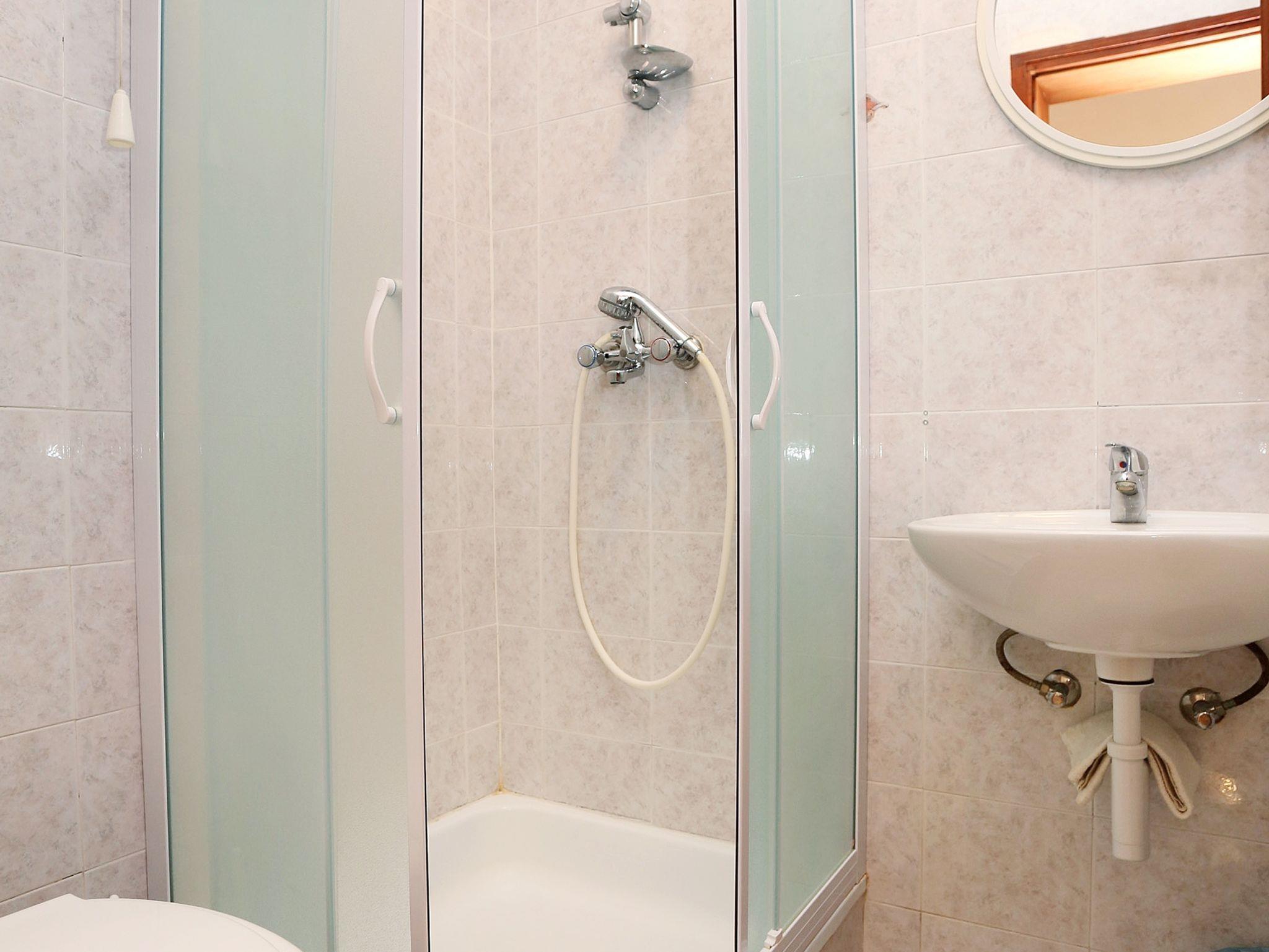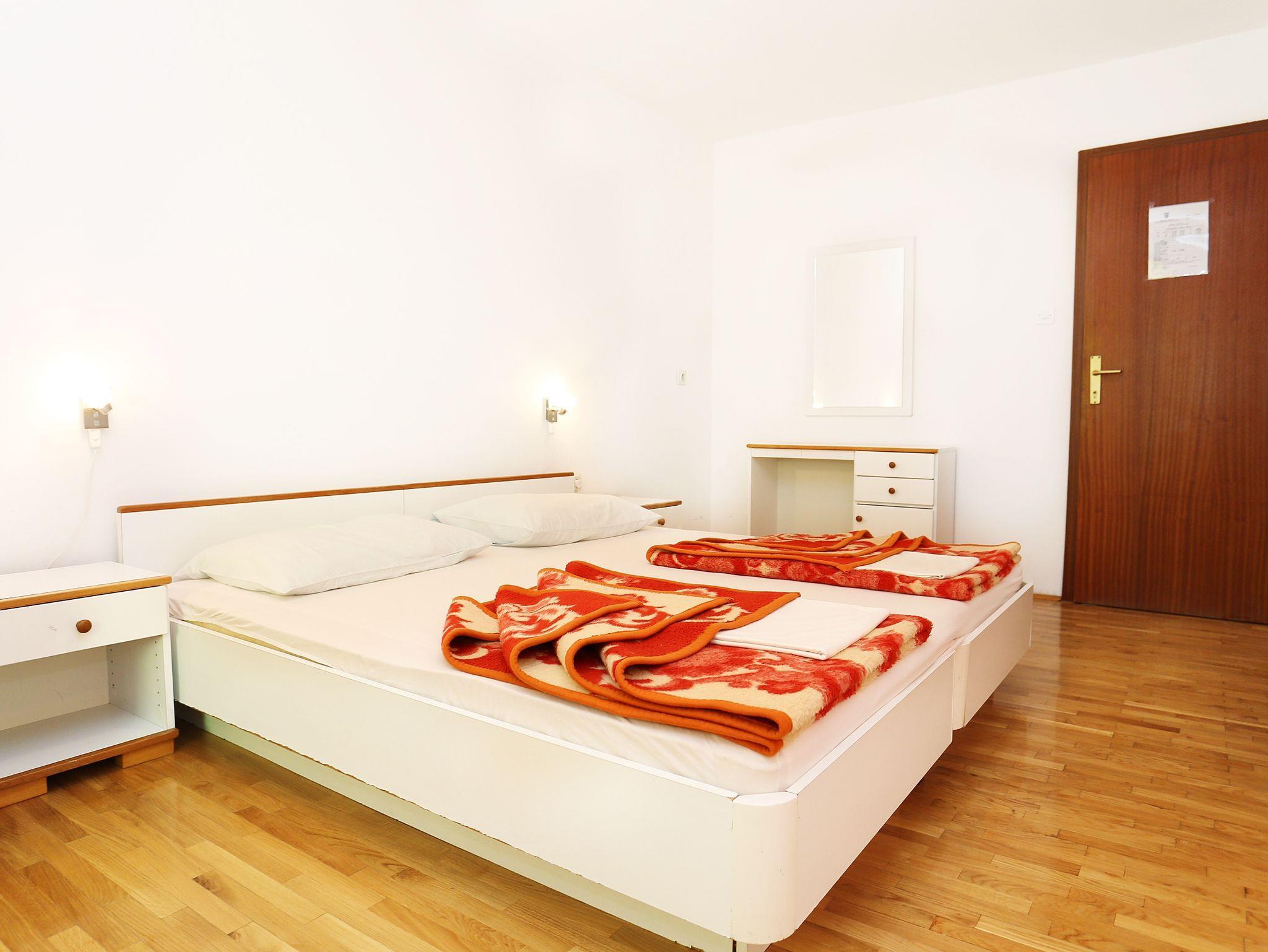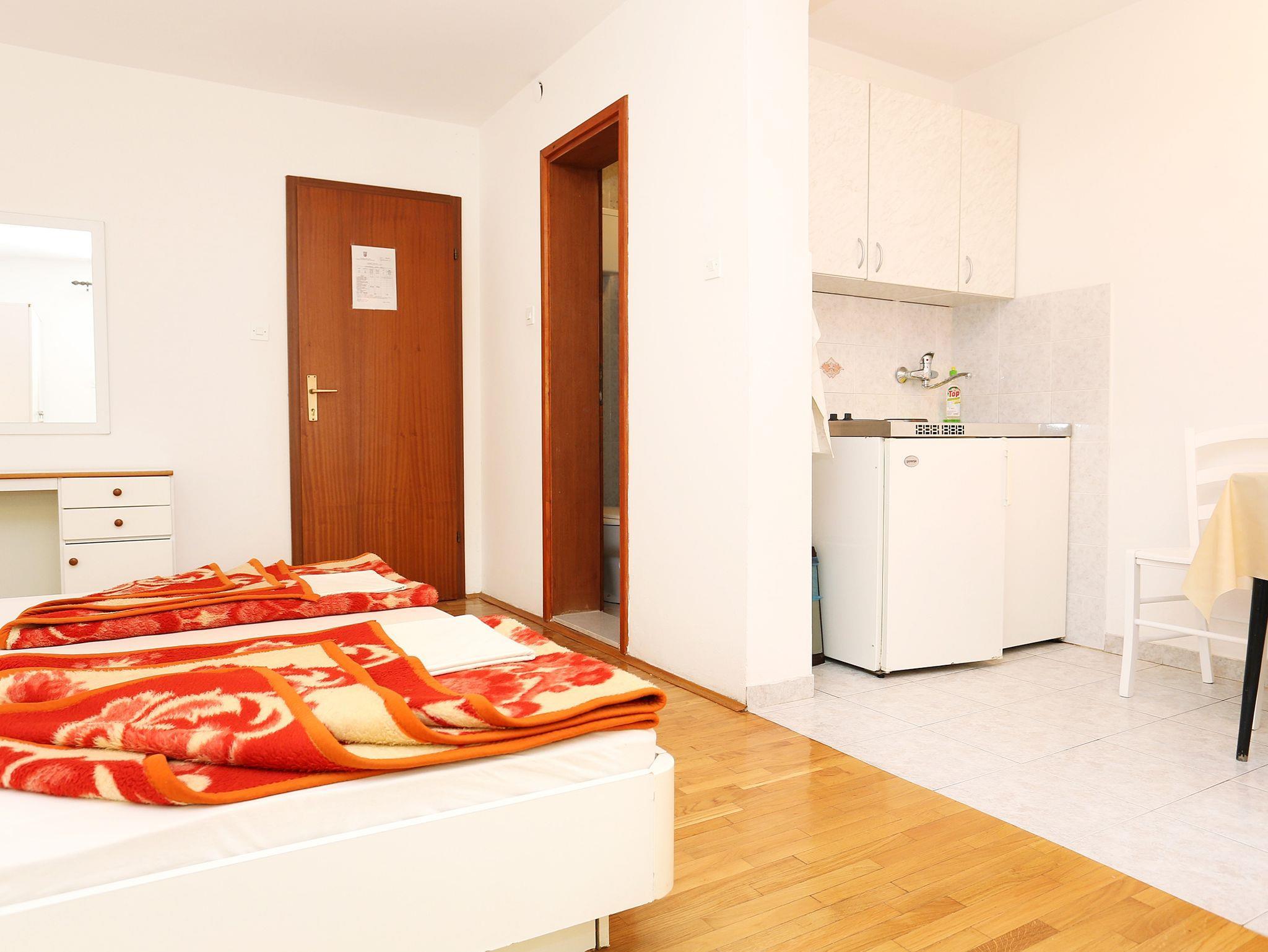 Studio bietet Platz für 3 Gäste. Die Betten sind in Schlafzimmern, die es 1 gibt, innerhalb einer Gesamtfläche von 21m2, angeordnet. Die Gäste haben eine eigene Terrasse zur Verfügung, auf der sie in warmen Sommernächten genießen können. Das Studio-Apartment bietet Meerblick. Es ist erlaubt, Speisen auf dem Gemeinschafts-Grill vorzubereiten. In der Unterkunftseinheit besteht die Möglichkeit des Mitbringens von Haustieren gegen Aufpreis. IM PREIS INBEGRIFFEN: Endreinigung, Klimatisierung, Parkplatz, Internet, Kinderbett. VERBINDLICHE ZUSÄTZLICHE KOSTEN: Kurtaxe (Erwachsene 0,93 € - 1,80 € Nacht/Person, Kinderermäßigung 12 - 17 Jahre), Aufzahlung für Kurzaufenthalte (prozentualer Zuschlag pro Nächtigungsanzahl: 30% - 1, 20% - 2, 10% - 3). UNVERBINDLICHE ZUSÄTZLICHE KOSTEN: Wäschewaschen (3,00 € Waschen), Haustiere (10,00 € pro Nacht). Die Verfügbarkeit zusätzlicher Dienstleistungen in Ihrem reservierten Termin und die Preise derselben (falls nicht aufgeführt) müssen im Voraus überprüft werden. Zusätzliche Dienstleistungen die in der Zahlungsaufforderung nicht aufgeführt sind werden direkt beim Vermieter bezahlt, angenommen der Gast nutzt auch diese. Ermäßigung auf den Grundpreis: Gratistag 14=13 (bei einem Aufenthalt von 14 Tagen oder mehr erhalten Sie einen Gratistag für den Aufenthalt bis 31.12.26).
