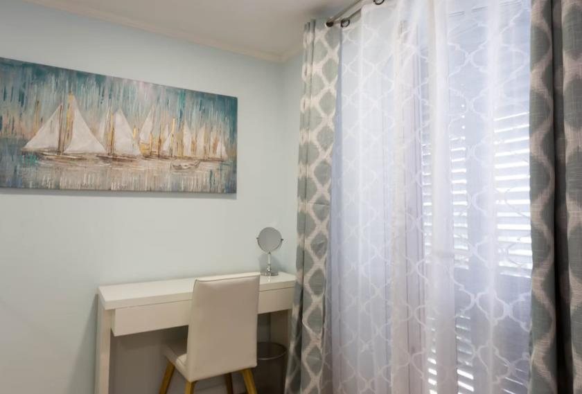 Der Esstisch bietet bequem Platz für acht Personen, und das Wohnzimmersofa bietet bei Bedarf Platz für zwei weitere Schlafgelegenheiten. Wie im Obergeschoss haben Sie vollen Zugriff auf Klimaanlage, Fernseher und Streaming-Dienste mit einem 45-Zoll-Smart-TV.