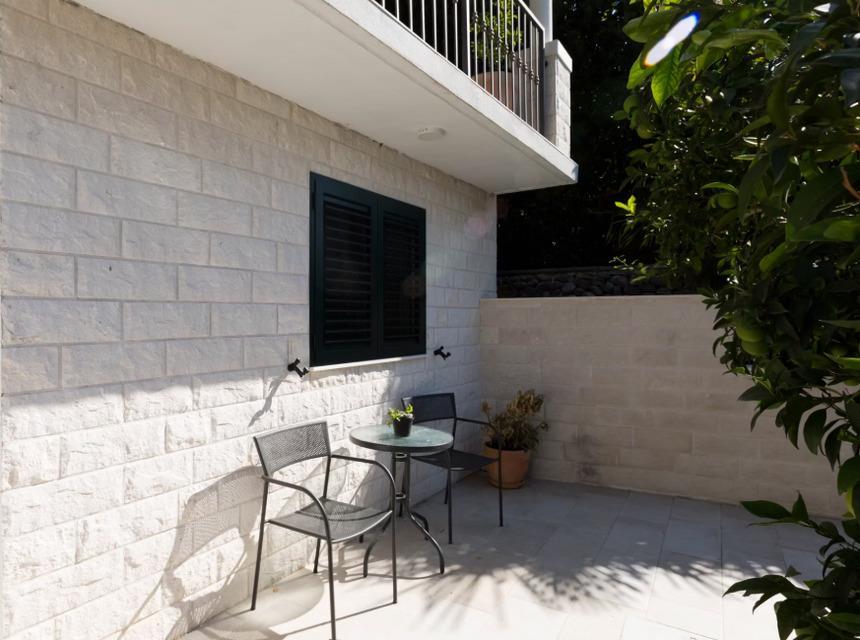 Taxi/Mitfahrgelegenheit, Mietwagen oder andere private Verkehrsmittel. Trsteno liegt an der Küstenstraße D8. Der Parkplatz (Potok 15, 20233, Trsteno, Kroatien), der Sie zum Blue Horizon bringt, befindet sich vor der Hauptkirche des Dorfes, Sv. Vid. Sie können dort einen Parkplatz anfordern oder parken und den markierten Weg zum Strand oder Arboretum entlanggehen. Das Haus befindet sich auf der linken Seite und hat ein eigenes Tor, das zu einer grünen Eingangstür führt.