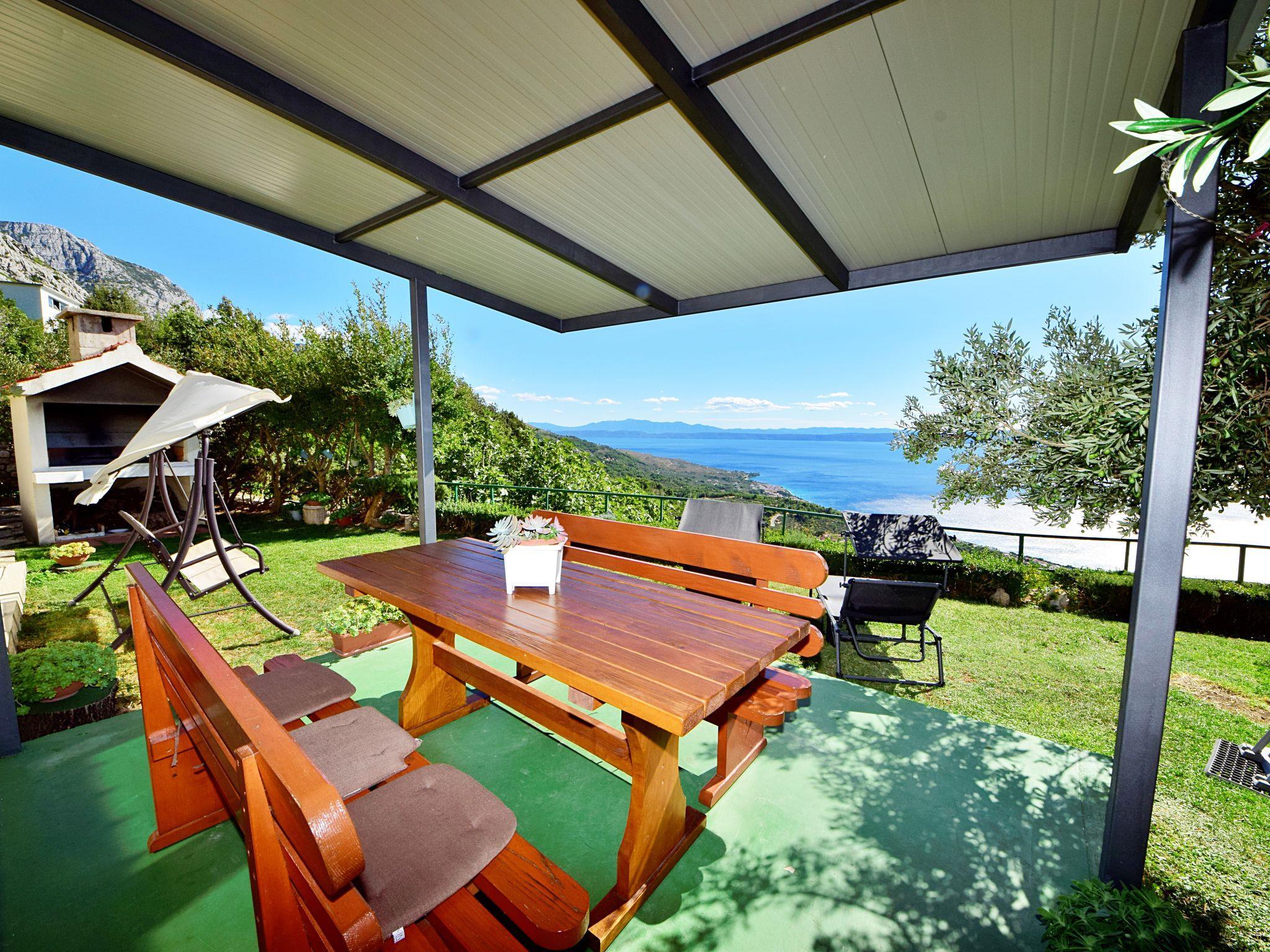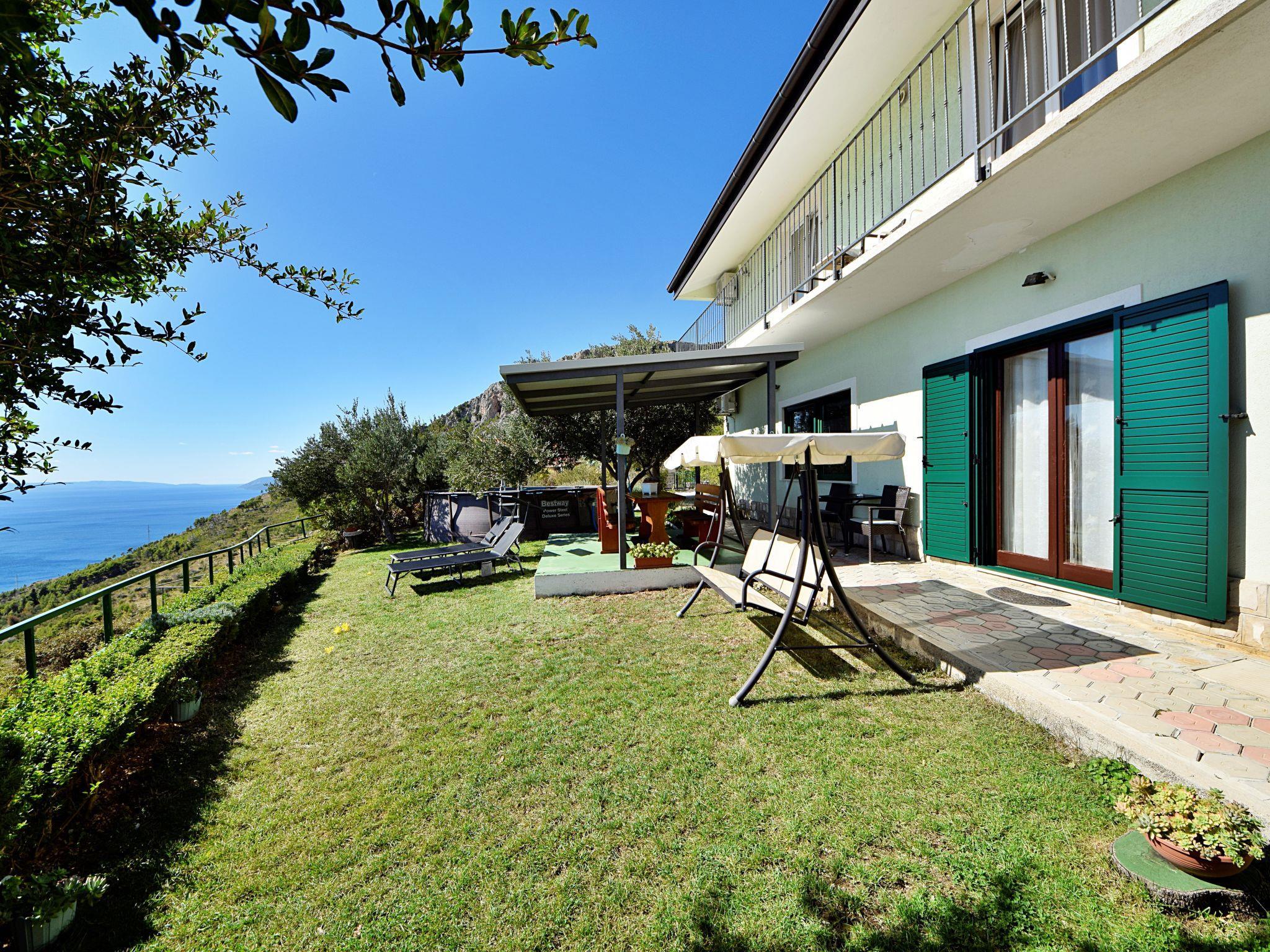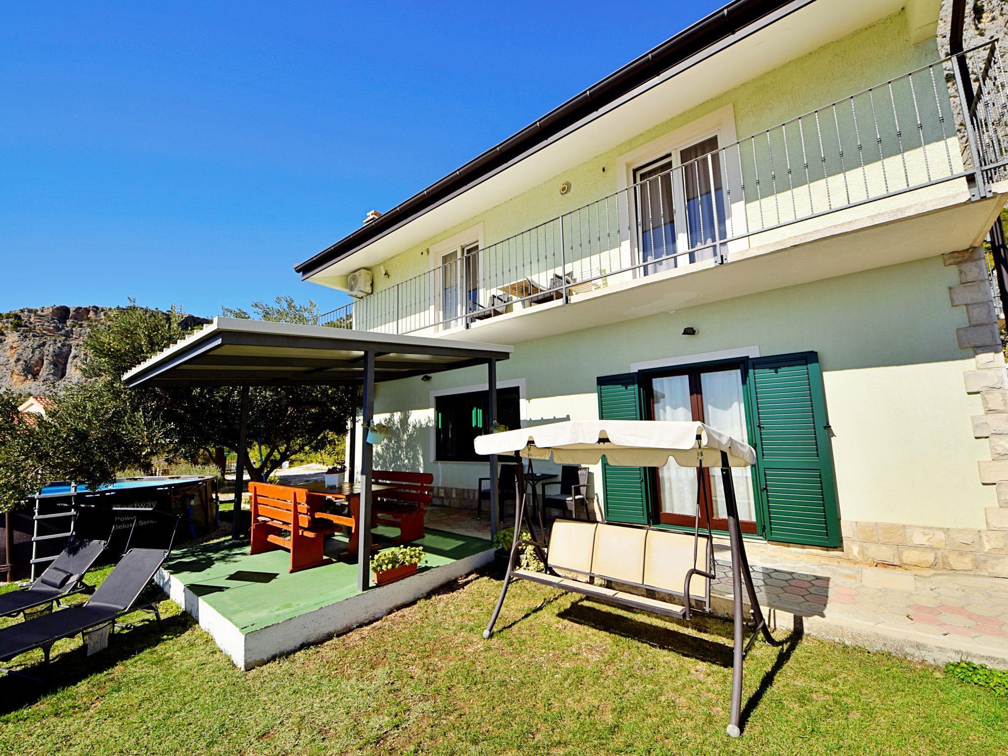 Einfamilienhaus "Vesna". Im Weiler Podpec, 4 km vom Zentrum von Makarska, 6 km vom Zentrum von Tucepi, ruhige, sonnige Lage, 4 km vom Meer. Zur Alleinbenutzung: Grundstück 800 m2, Garten mit Rasen 100 m2, Aufstellpool rund (4.9 m Durchmesser, 120 cm tief, saisonale Verfügbarkeit: 01.Mai. - 01.Okt.). Gartenmöbel, Grill. Im Hause: Internetzugang, Waschmaschine. Parkplatz (für 2 Autos) beim Haus auf dem Grundstück. Einkaufsgeschäft 3.5 km, Restaurant 1.6 km, Bushaltestelle 5.6 km, Kieselstrand 5.5 km. Besitzer nutzt Räume im Haus.