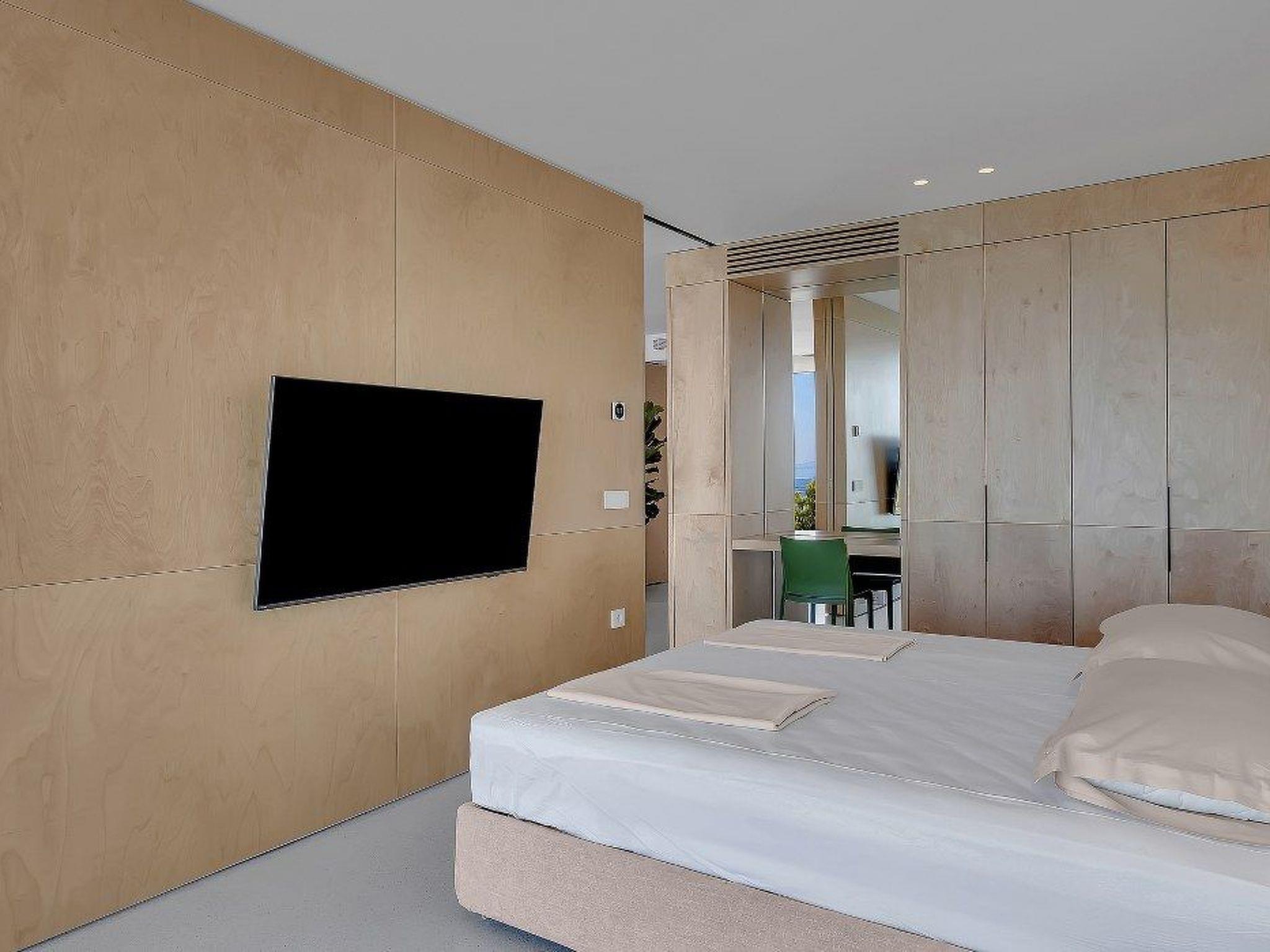 Draußen lädt der schöne Balkon dazu ein, die frische Meeresbrise zu genießen und den Tag bei einem beeindruckenden Ausblick sanft ausklingen zu lassen. Es ist der ideale Ort, um in Ruhe ein Buch zu lesen oder einfach die Aussicht auf das glitzernde Wasser direkt vor Ihnen zu bewundern.