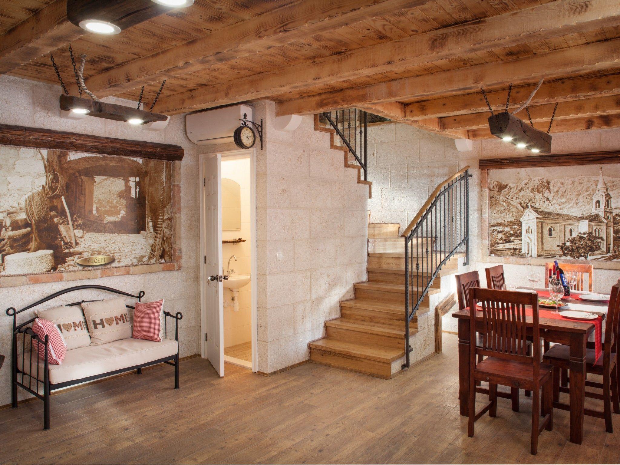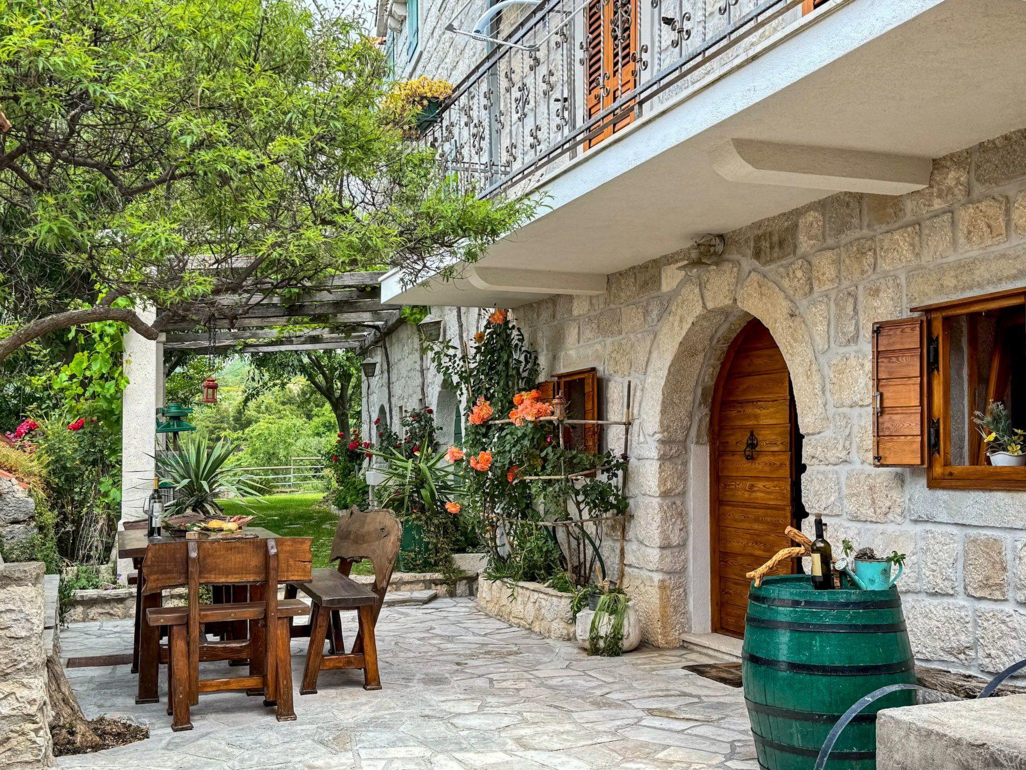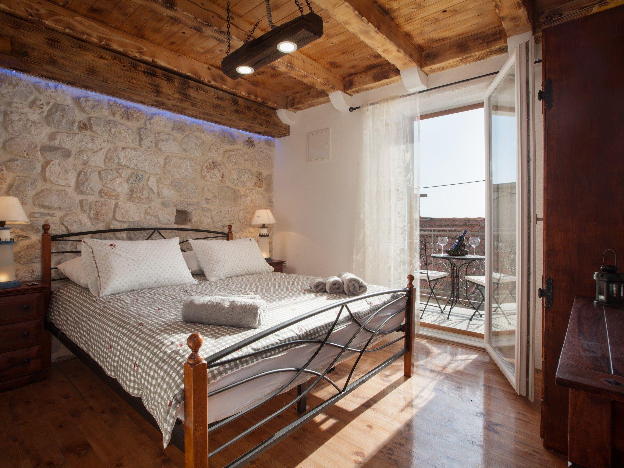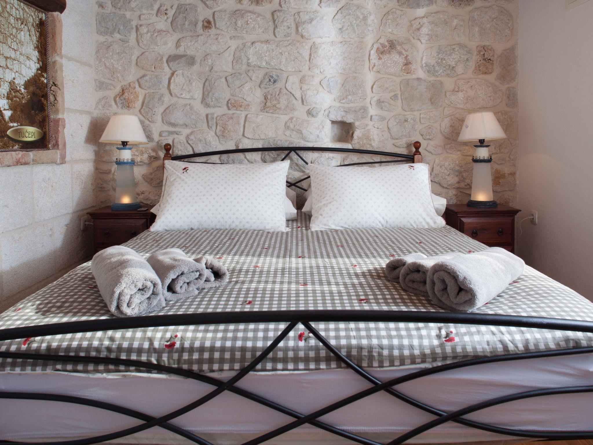 Das Ferienhaus Villa Stina mit Pool wurde mit sehr viel Liebe zum Detail und viel Handarbeit vollkommen renoviert. Es wurde vor 150 Jahren in einer alten Siedlung oberhalb der Küste erbaut. Die Räume verteilen sich über drei Etagen. Im Erdgeschoss befindet sich die Küche mit Essraum und Kamin, ein Gäste WC. Auf der ersten Etage befinden sich zwei Schlafzimmer mit Doppelbett, jedes Zimmer mit Balkon und das Badezimmer mit Dusche.