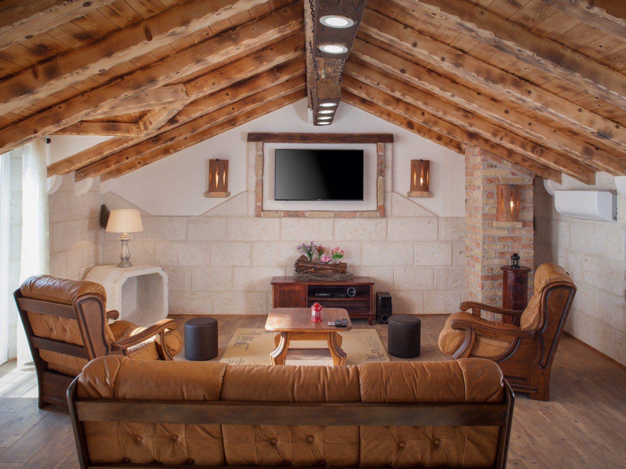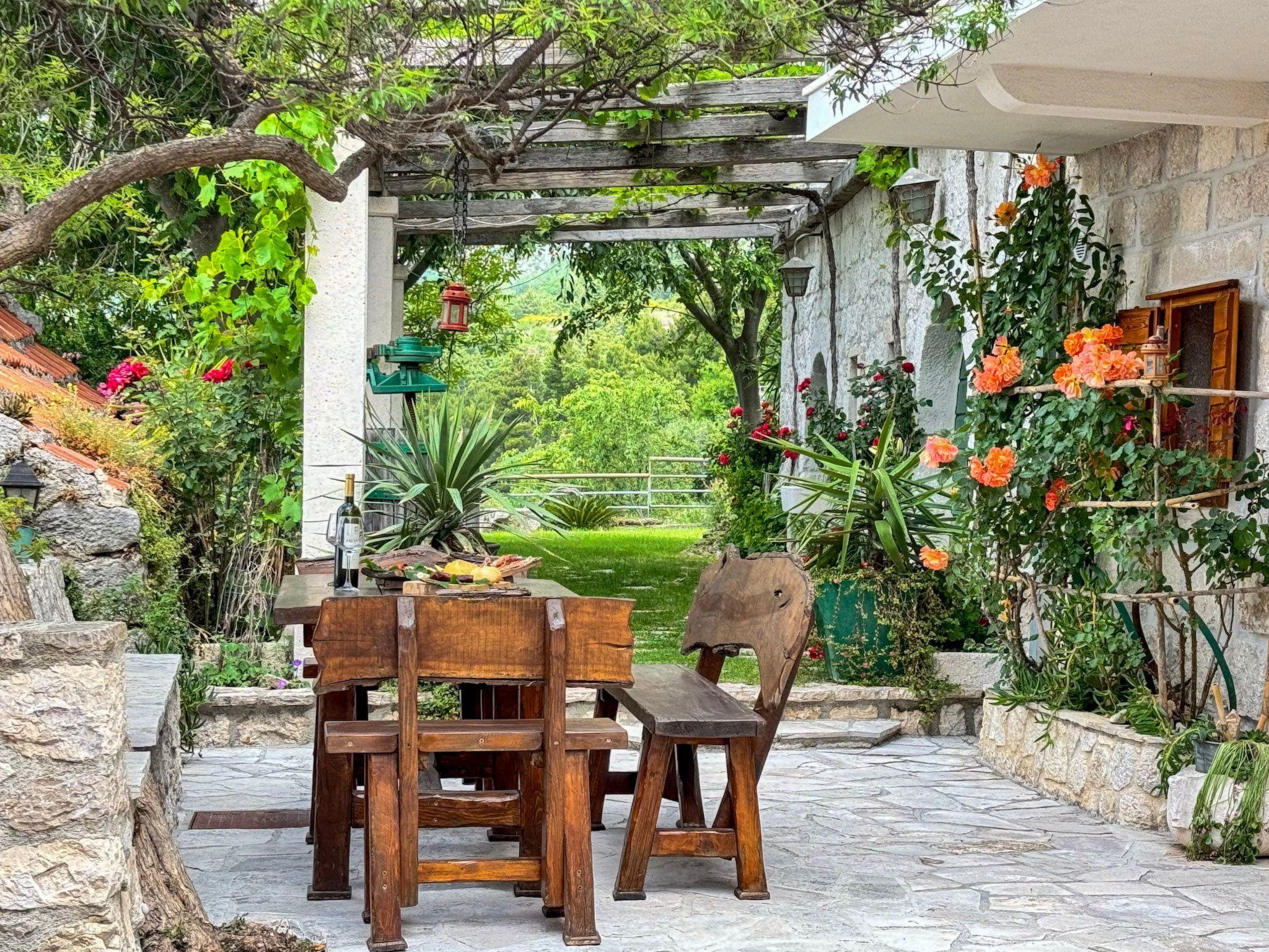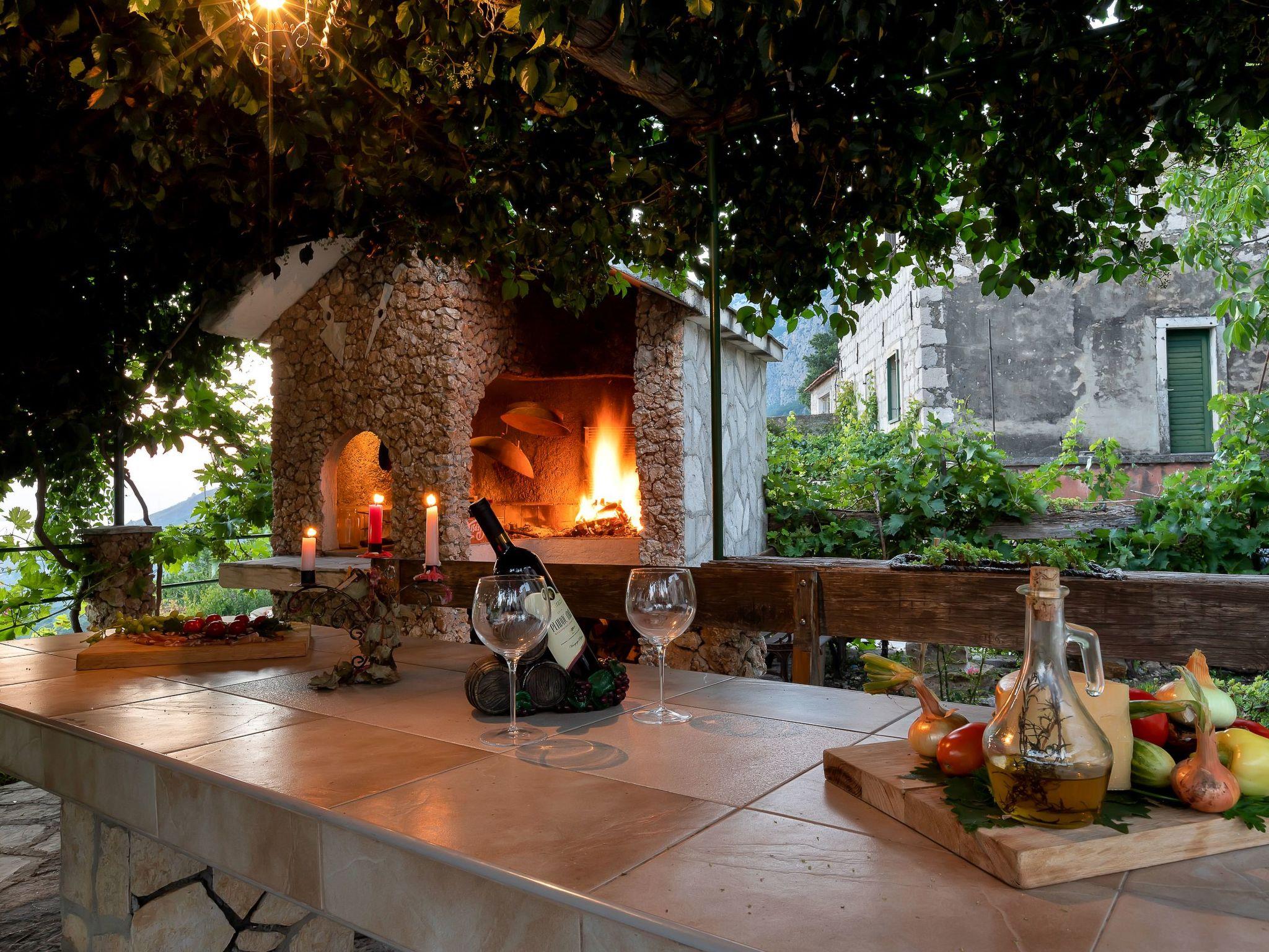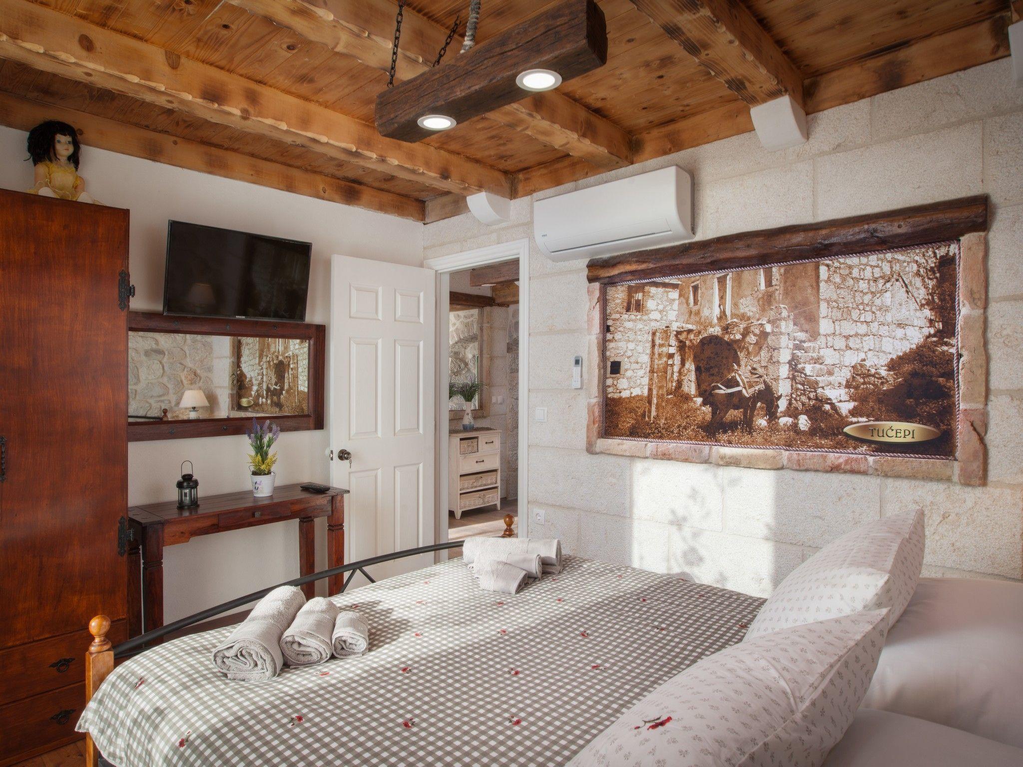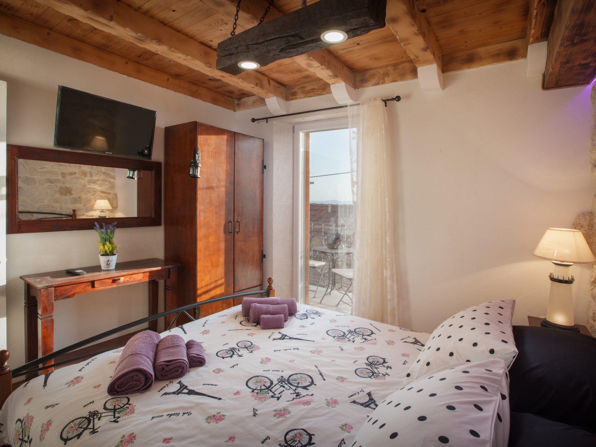 Das Ferienhaus Villa Stina mit Pool wurde mit sehr viel Liebe zum Detail und viel Handarbeit vollkommen renoviert. Es wurde vor 150 Jahren in einer alten Siedlung oberhalb der Küste erbaut. Die Räume verteilen sich über drei Etagen. Im Erdgeschoss befindet sich die Küche mit Essraum und Kamin, ein Gäste WC. Auf der ersten Etage befinden sich zwei Schlafzimmer mit Doppelbett, jedes Zimmer mit Balkon und das Badezimmer mit Dusche.