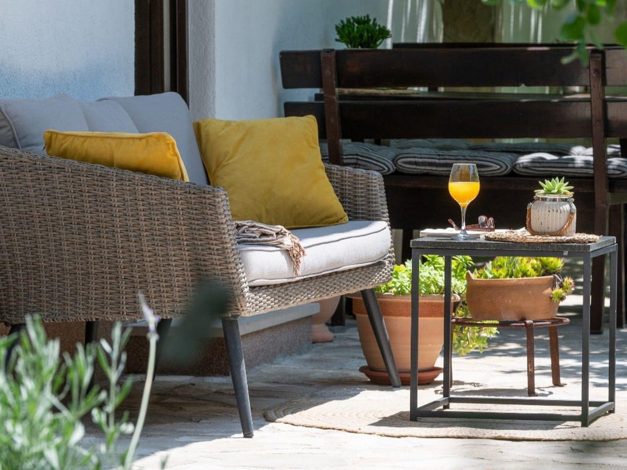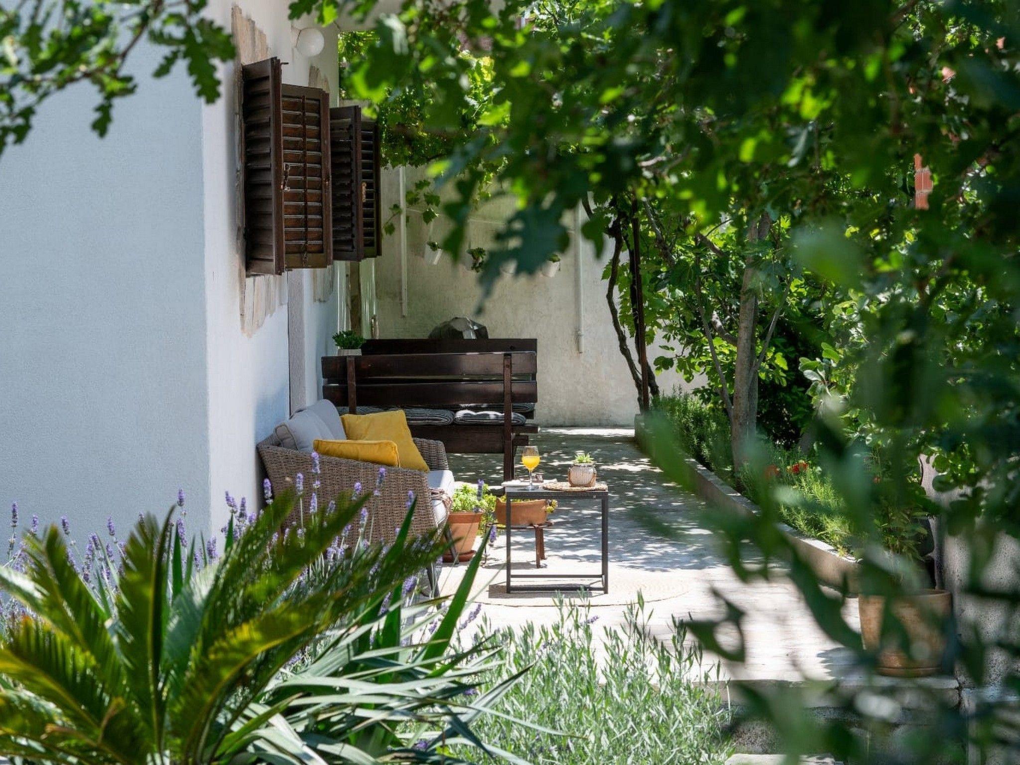 In ruhiger, sonniger Lage am Waldrand von Tucepi, im charmanten Ortsteil Vitlici – Srida Sela, erwartet Sie ein liebevoll gestaltetes Ferienhaus, das sich ideal für Paare eignet, die dem Alltag entfliehen und inmitten der Natur zur Ruhe kommen möchten. Abseits vom Trubel, eingebettet in einen gepflegten, 400 m² großen Garten mit alten Bäumen, duftenden Blumen und mediterranen Sträuchern, bietet dieses kleine Paradies Erholung pur.