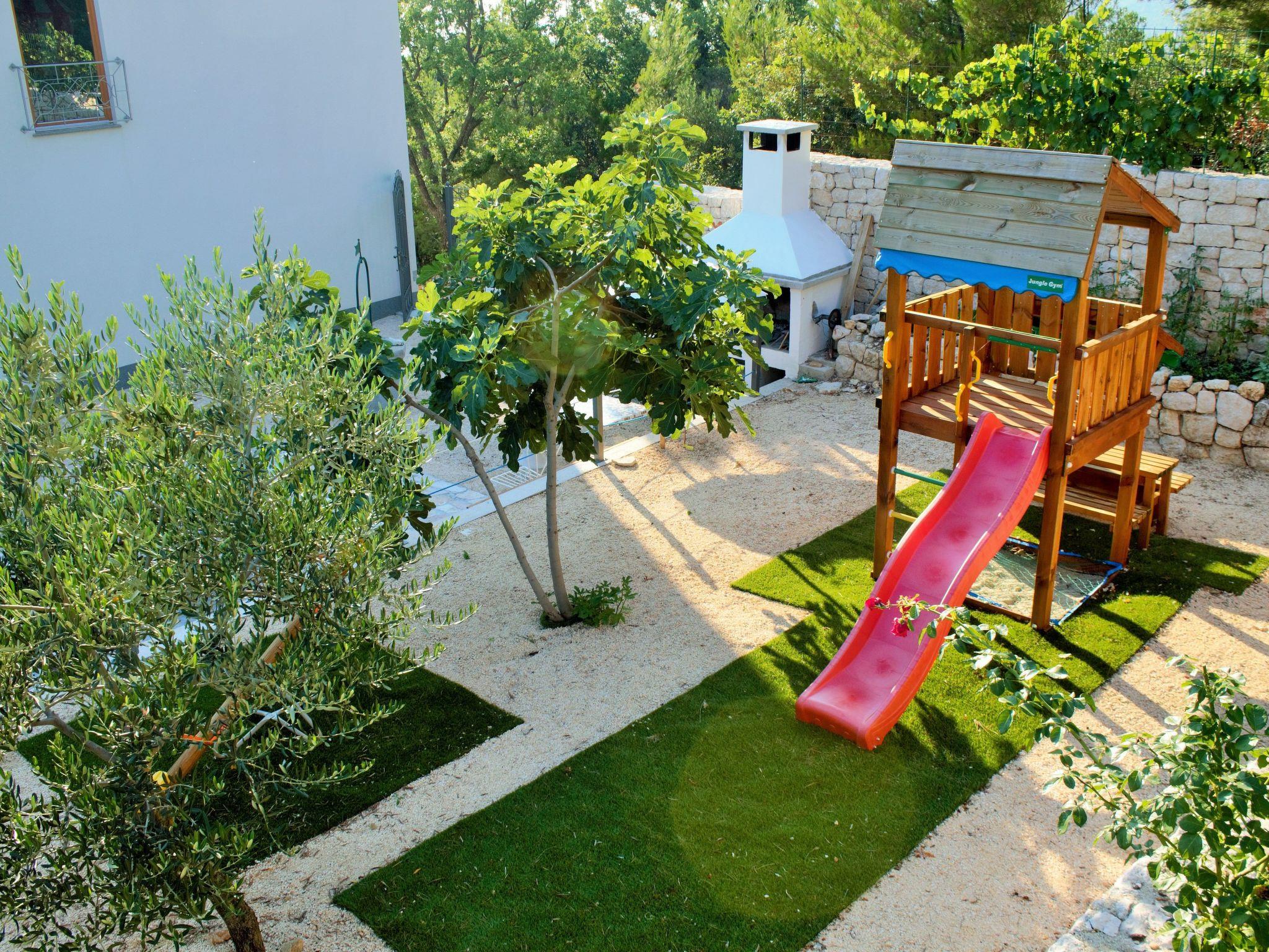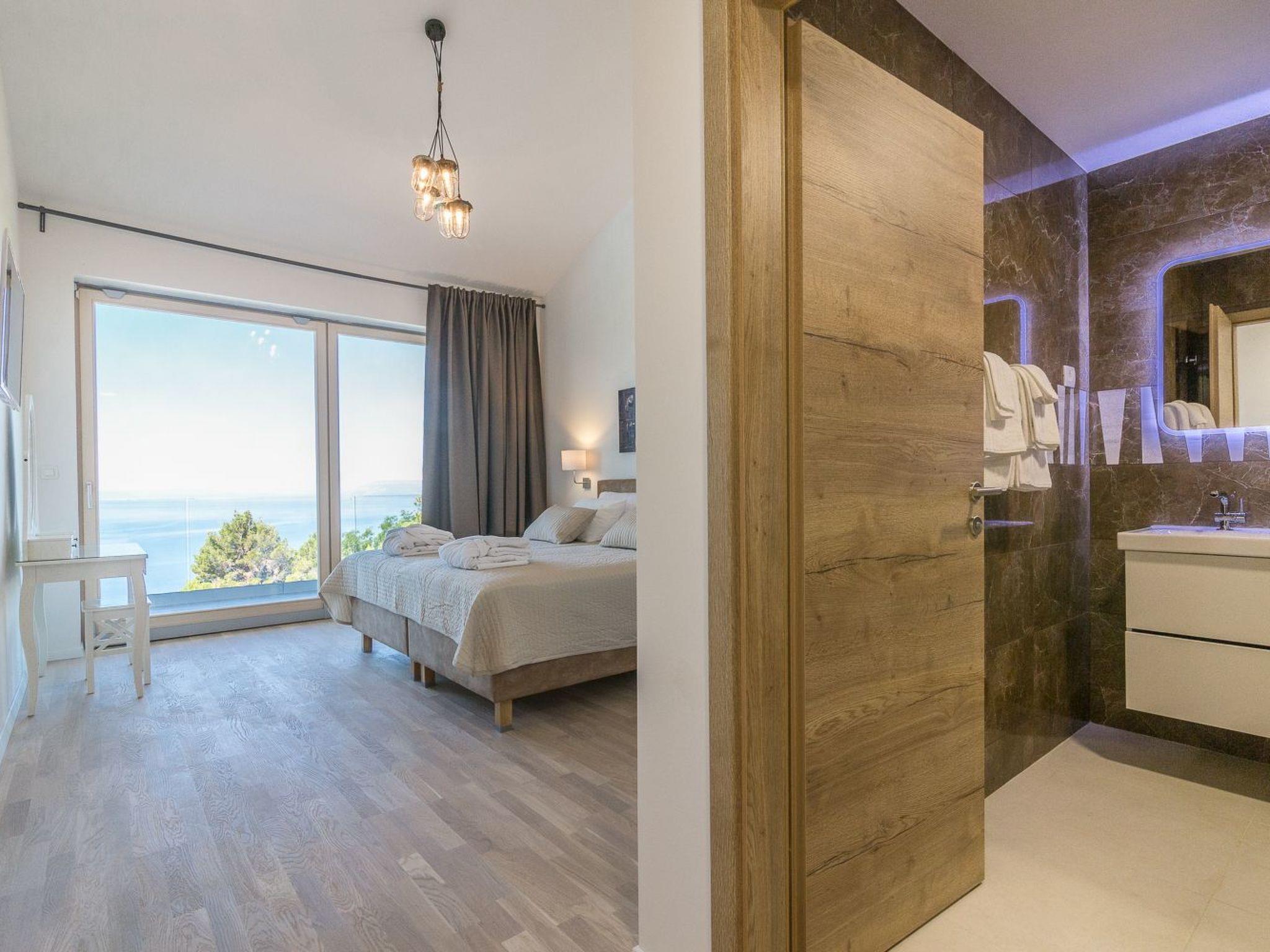 Ferienhaus mit traumhaften Blick über das Meer vom super Pool und von den allen Zimmer Großer beheizter Infinity-Pool für Erwachsene und Pool für Kinder. Atemberaubende Blick auf den Inseln und auf den Berg Biokovo auch. Es gibt den Kinderspielplatz hinten dem Haus, BBQ und 2Tische für essen draussen, jeden für 10 Gäste.