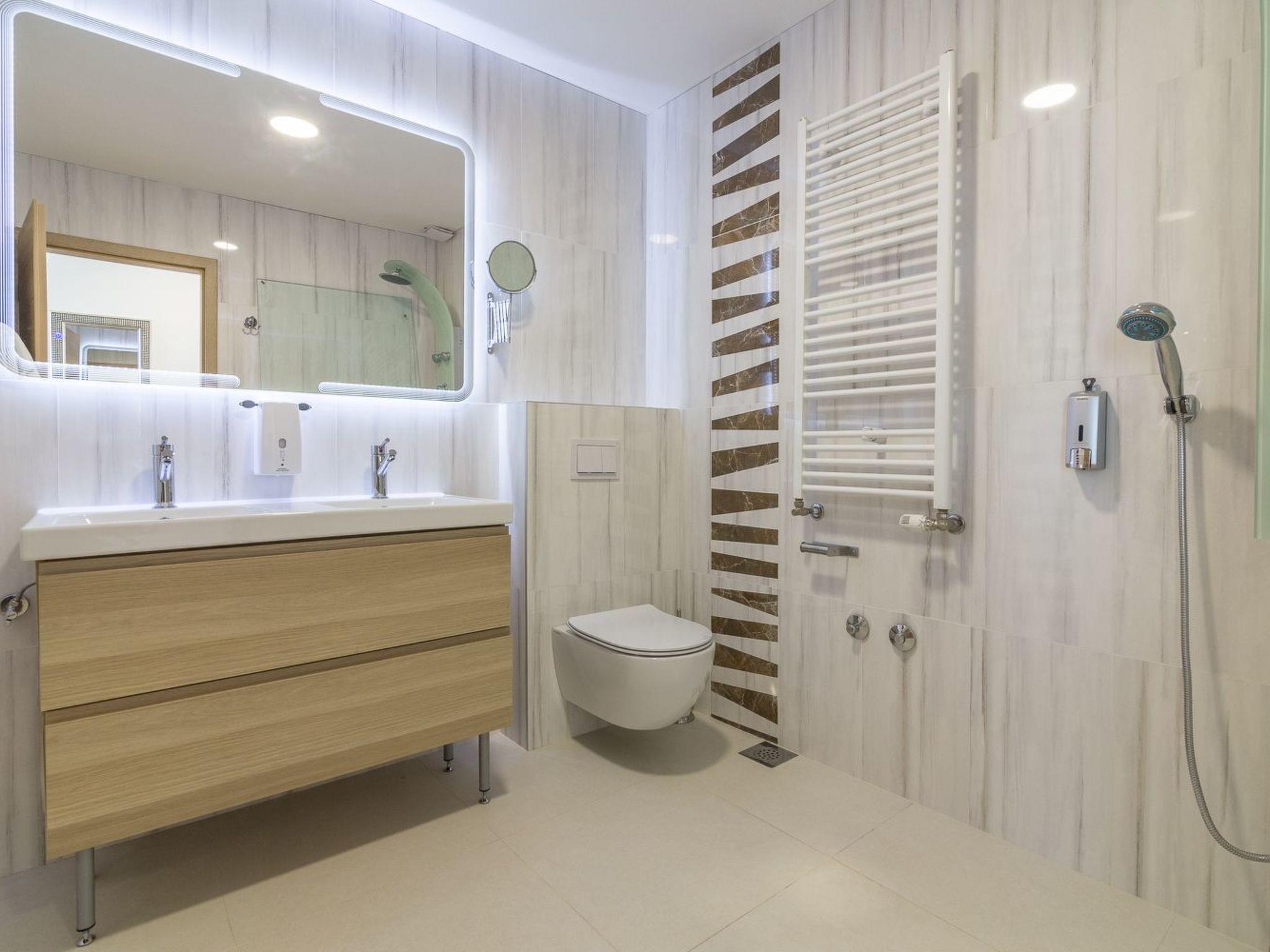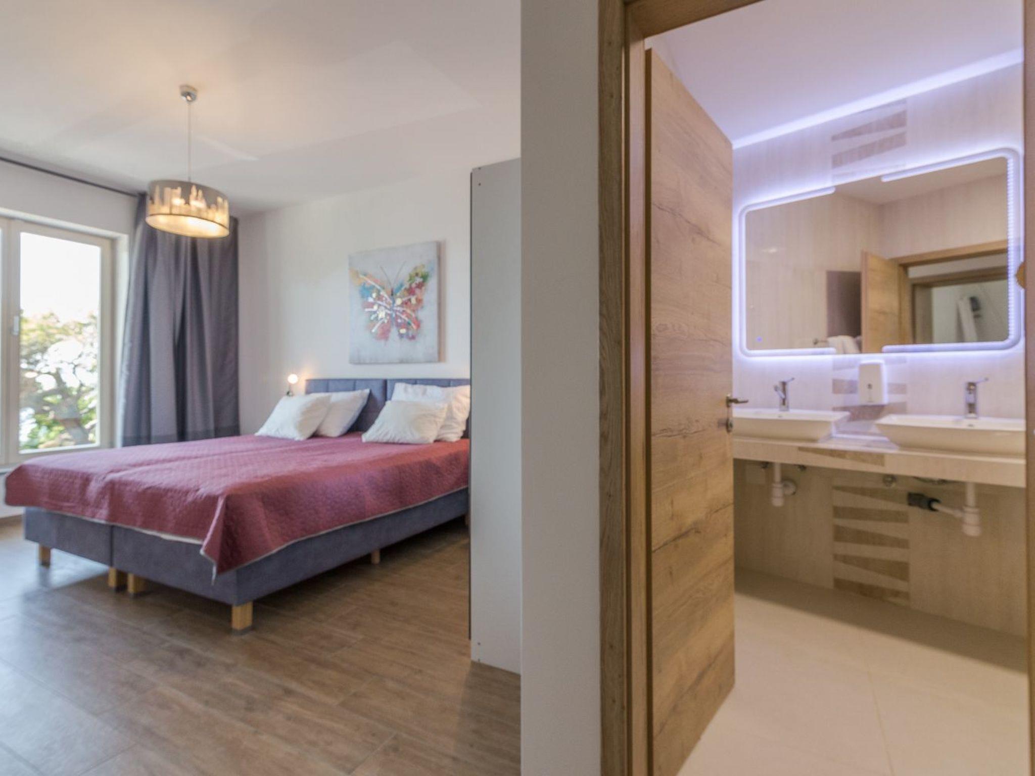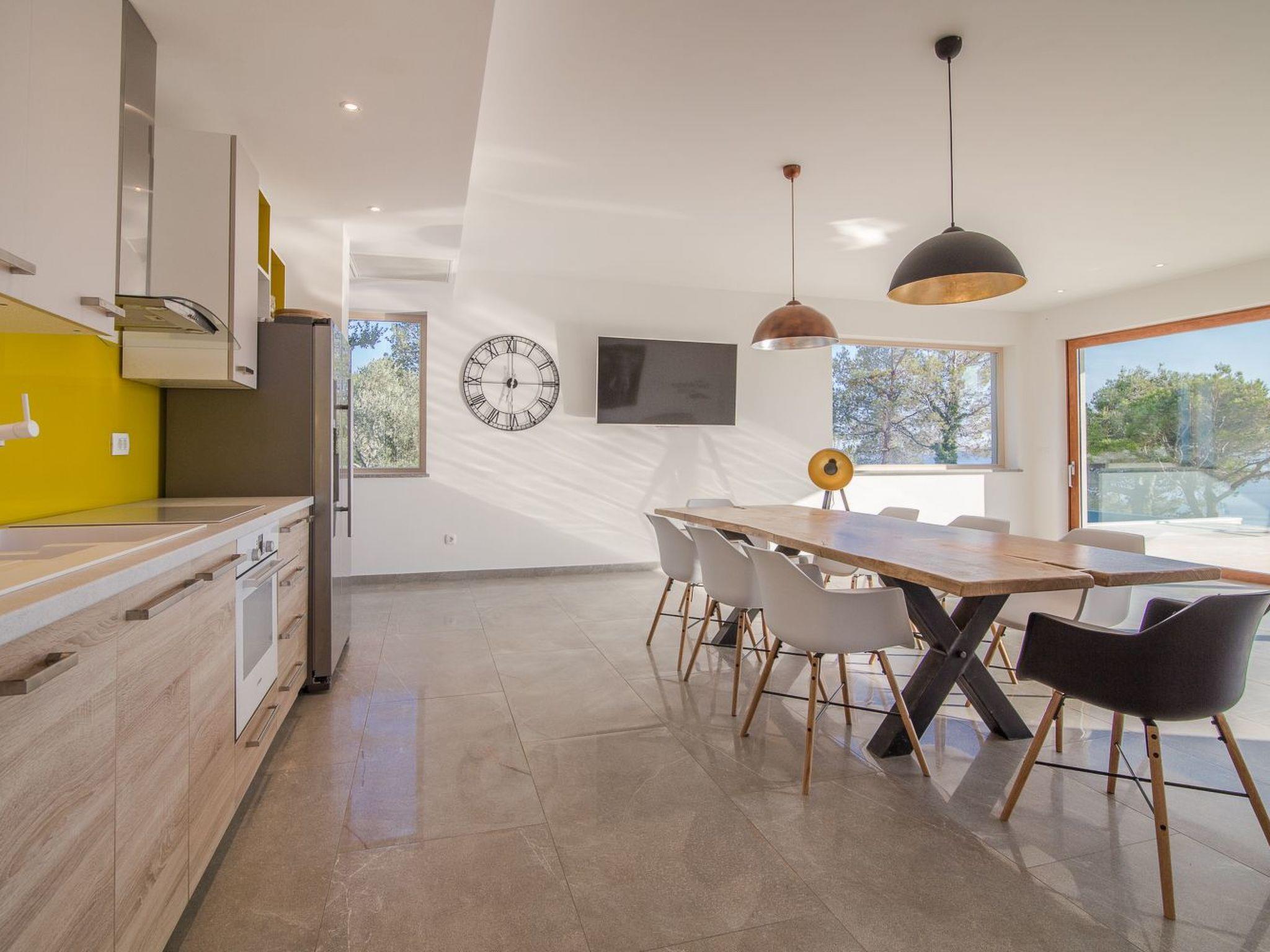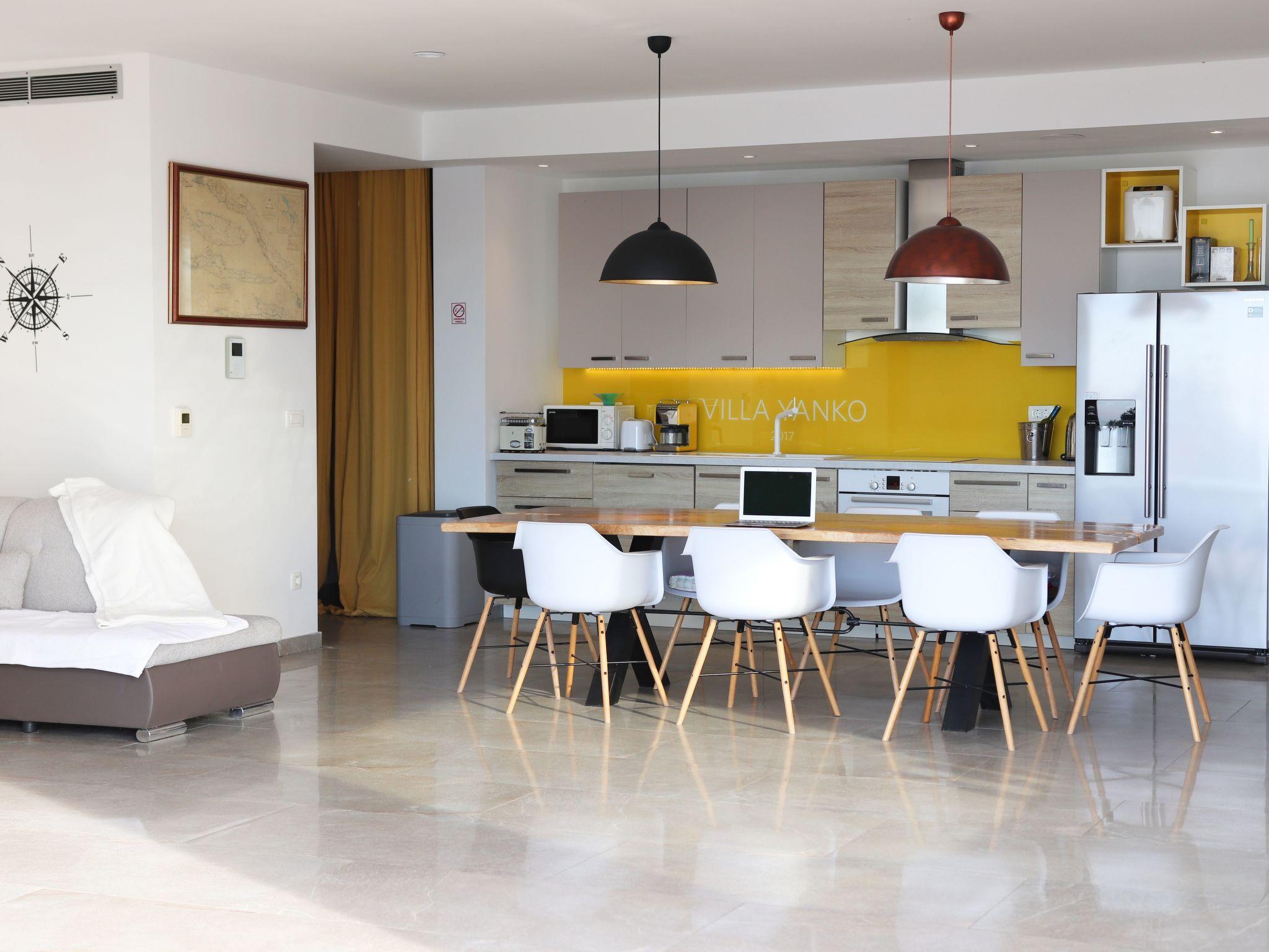 Vila Yanko bietet viel Spaß für Sommer- und Winterferien. Die luxuriöse Villa im modernen Stil, umgeben von ländlichem Ambiente, bietet Genuss in der Natur, perfekt vereint mit dem Raumambiente der architektonischen Gestaltung. Es ist auch ein Laptop-freundlicher Arbeitsbereich, der für Remote-Mitarbeiter komfortabel ist. Es gibt ein schnelles und zuverlässiges WIFI mit Wifi-Boostern und Extendern, die die Wifi-Leistung verbessern. Das Freiluft-Schwimmbad, umgeben von einer wunderschönen dalmatinischen Landschaft, bietet ein vollkommenes Vergnügen für einen Sommerzauber. Villa Yanko enthält auch einen Garten, der entspannende Momente für die Gäste bietet. Während ihres Spaziergangs können sie Früchte abholen und buchstäblich den Geschmack und die Düfte der Natur genießen. Genießen Sie den Olivenhain, auf den wir sehr stolz sind, und probieren Sie die hochwertigen Oliven sowie die köstlichen Feigen, Tomaten und eine große Auswahl an Kräutern. Ein Blick auf die unberührte Natur der Makarska Riviera und das Biokovo Gebirge bietet dem Betrachter visuelle Freude. Der Pool ist mit automatischer Heizung ausgestattet, so dass es auch in den Wintermonaten genutzt werden kann und die Gäste können die Lichtfarbe des Pools wählen, die dem Nachtschwimmbad eine romantische Atmosphäre verleiht. Villa Yanko bietet Platz für bis zu 8 Personen. Im Erdgeschoss befindet sich ein Zimmer mit Bad, Flur, Küche mit allen notwendigen schlauen Küchengeräten, Esszimmer, Wohnzimmer mit großem, schickem TV und langem Esstisch, der eine warme und rustikale Atmosphäre verleiht. Es gibt eine "Rock Corner" im Wohnzimmer mit einer Gitarre und zwei Mikrofone, die zum Spaß mit Lieblingssongs gedacht sind, die den Gästen die Möglichkeit geben, ihre Gesangsfähigkeiten zu testen. Das Haus hat eine wunderschöne, offene Galerie mit Blick auf den Pool und das Meer. Im Obergeschoss befinden sich drei Zimmer mit abnehmbaren Doppelbetten und jedes Zimmer hat einen Fernseher, ein Badezimmer mit WC, zwei Waschbecken, eine Hydromassagedusche und eine Galerie. Von jedem Zimmer aus können Sie auf die überdachte Terrasse gehen und zu Yankos Pavillon kommen, von dem aus die Gäste die Sterne über Nacht oder die Boote, die während des Tages in den Hafen von Makarska fahren, beobachten können. Die Garage verfügt über zwei Parkplätze und die Tür wird automatisch betrieben. Wenn Gäste mit mehr als zwei Autos kommen, bieten wir 6 Parkplätze auf dem privaten Parkplatz vor der Villa Yanko an. Im Hof gibt es einen Rasen, der als Spielplatz neben dem Pool dienen kann. Als Spielplatz für Kinder; Ein Fußballplatz und für diverse Aktivitäten, die man sich mit Freunden und Familie vorstellen kann. Für Gäste, die die natürliche Schönheit von Biokovo in einer dynamischeren Weise genießen möchten, haben wir die Benutzung von Fahrrädern nach vorheriger Absprache sichergestellt. Die Villa Yanko liegt in einer abgelegenen Natur und bietet jedem Gast Ruhe und Privatsphäre.
