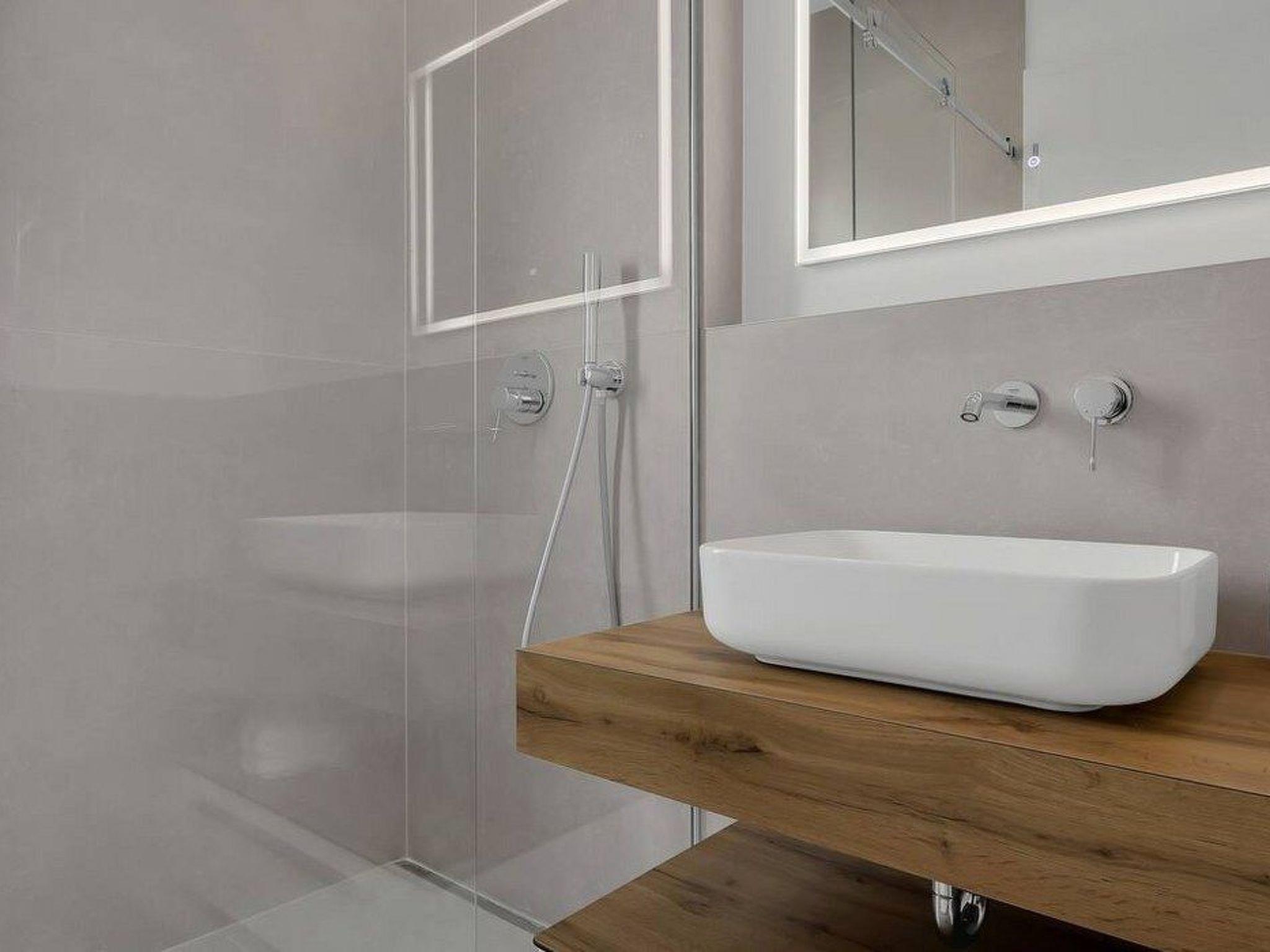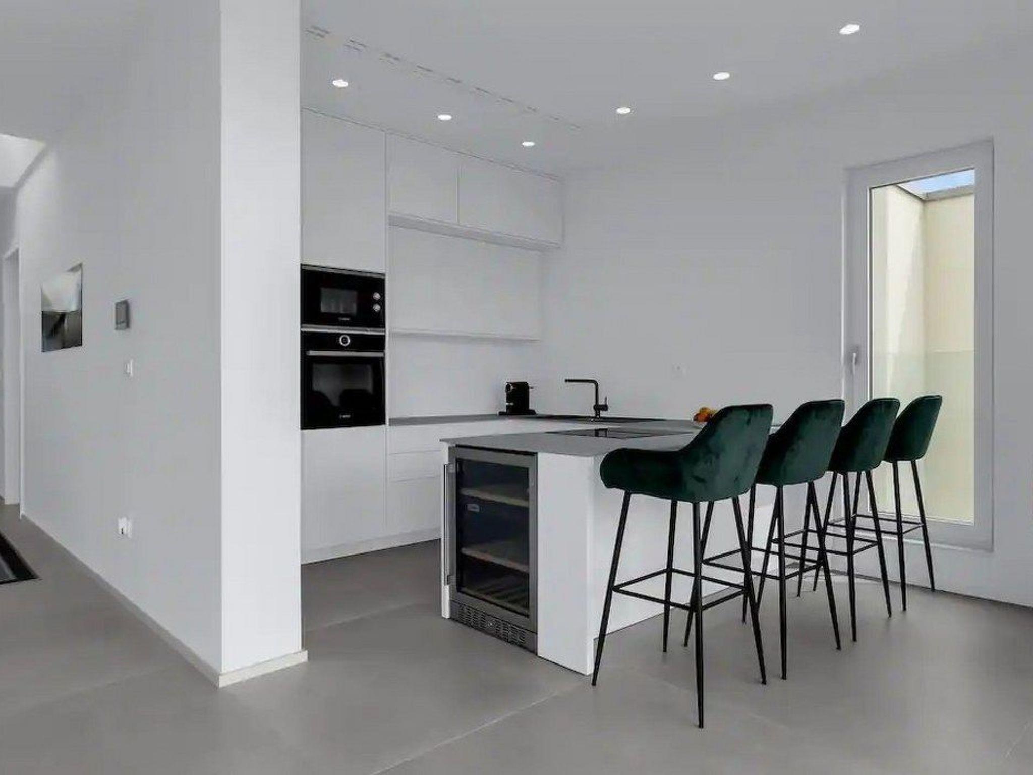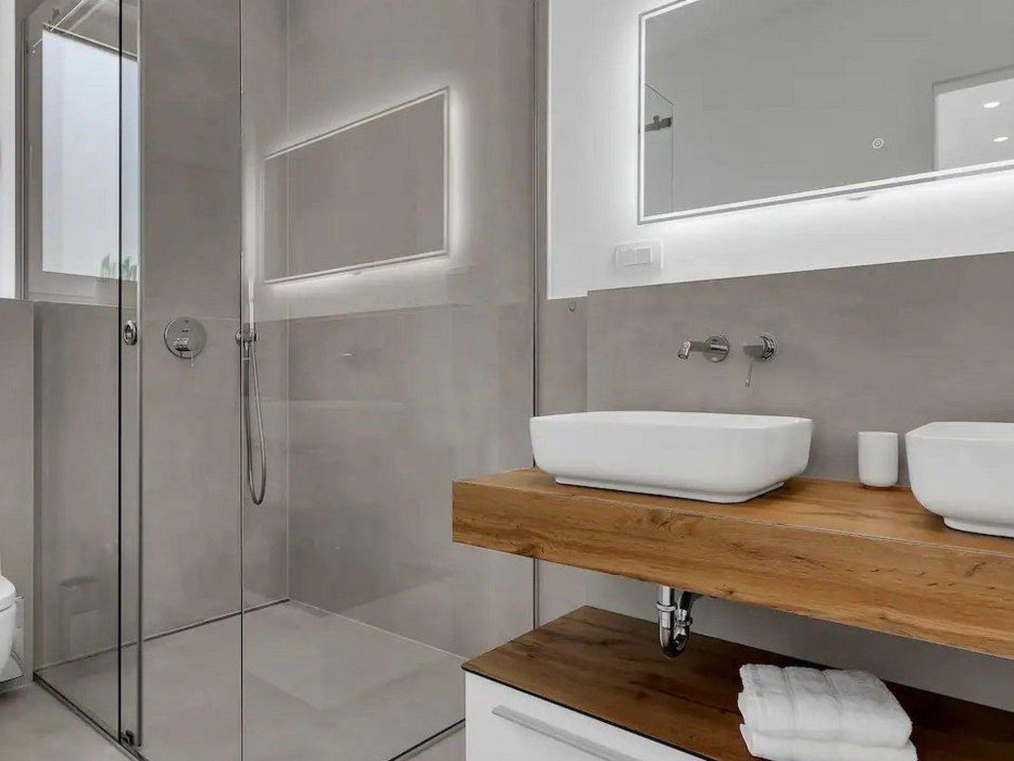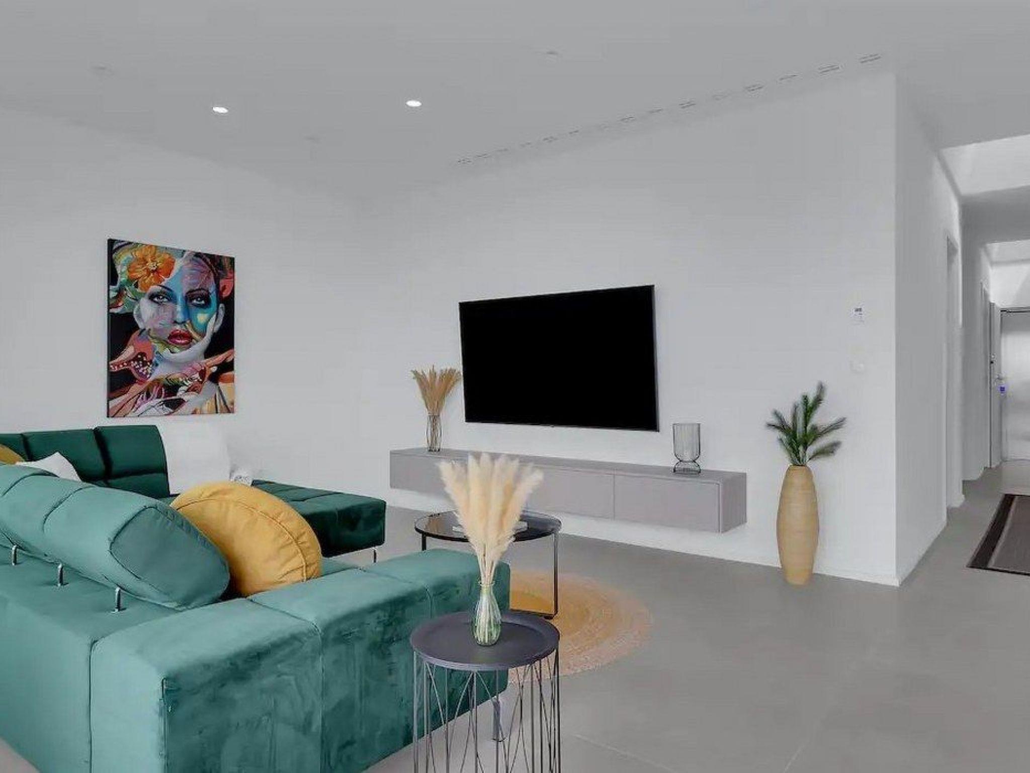 Innen bietet das Apartment nicht nur eine klimatisierte Umgebung, die während der heißen Sommertage für angenehme Kühle sorgt, sondern auch die Intimität von drei separaten Schlafzimmern, jeweils gekoppelt mit einem eigenen Badezimmer. Dies bietet ausreichend Privatsphäre und Komfort für bis zu sechs Personen, ideal für Familien oder Gruppen von Freunden. Die Wohnung ist zudem mit modernen Annehmlichkeiten ausgestattet, darunter eine Waschmaschine zur alleinigen Nutzung und eine Spülmaschine, die den Aufenthalt noch angenehmer gestalten.