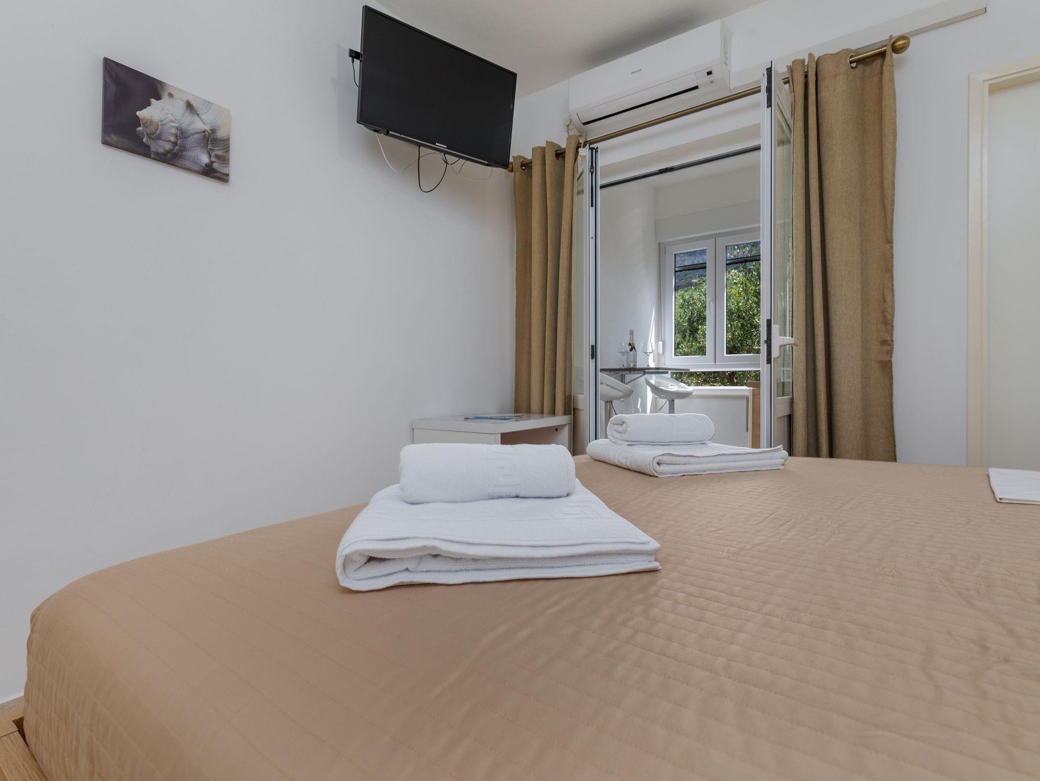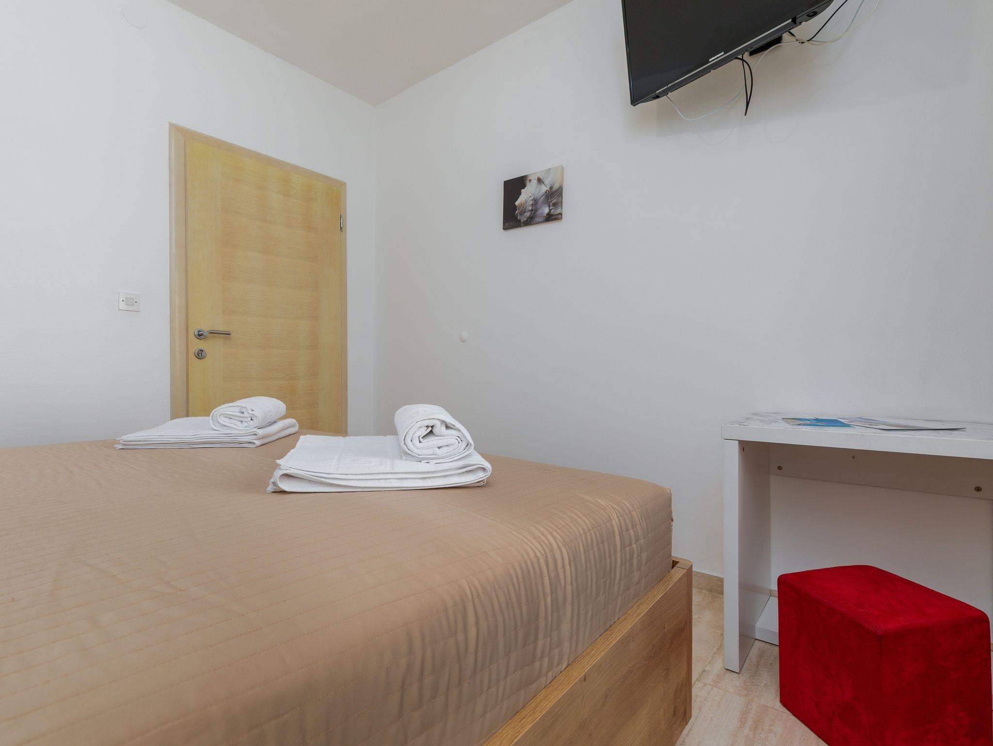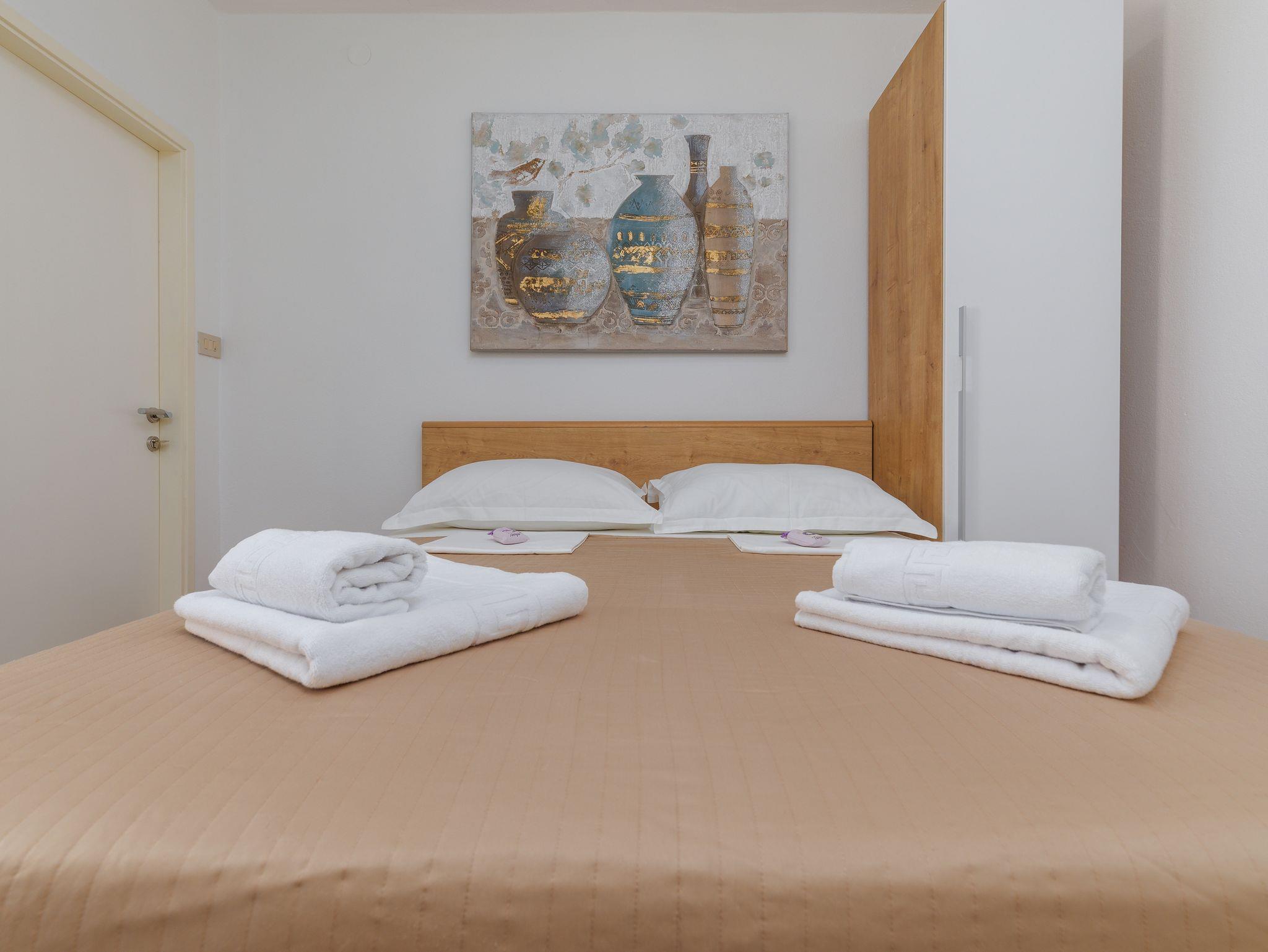 Studio bietet Platz für 2 Gäste. Die Betten sind in Schlafzimmern, die es 1 gibt, innerhalb einer Gesamtfläche von 18m2, angeordnet. Die Gäste haben eine eigene Terrasse zur Verfügung, auf der sie in warmen Sommernächten genießen können. Unterkunftseinheit hat Räume, die von dem Rest der Einheit abgetrennt werden. IM PREIS INBEGRIFFEN: Kurtaxe, Endreinigung, Klimatisierung, Parkplatz, Internet, Kinderbett, Bügeleisen, Bügelbrett, Föhn. VERBINDLICHE ZUSÄTZLICHE KOSTEN: Aufzahlung für Kurzaufenthalte (prozentualer Zuschlag pro Nächtigungsanzahl: 30% - 1, 20% - 2, 10% - 3). Die Verfügbarkeit zusätzlicher Dienstleistungen in Ihrem reservierten Termin und die Preise derselben (falls nicht aufgeführt) müssen im Voraus überprüft werden. Zusätzliche Dienstleistungen die in der Zahlungsaufforderung nicht aufgeführt sind werden direkt beim Vermieter bezahlt, angenommen der Gast nutzt auch diese.