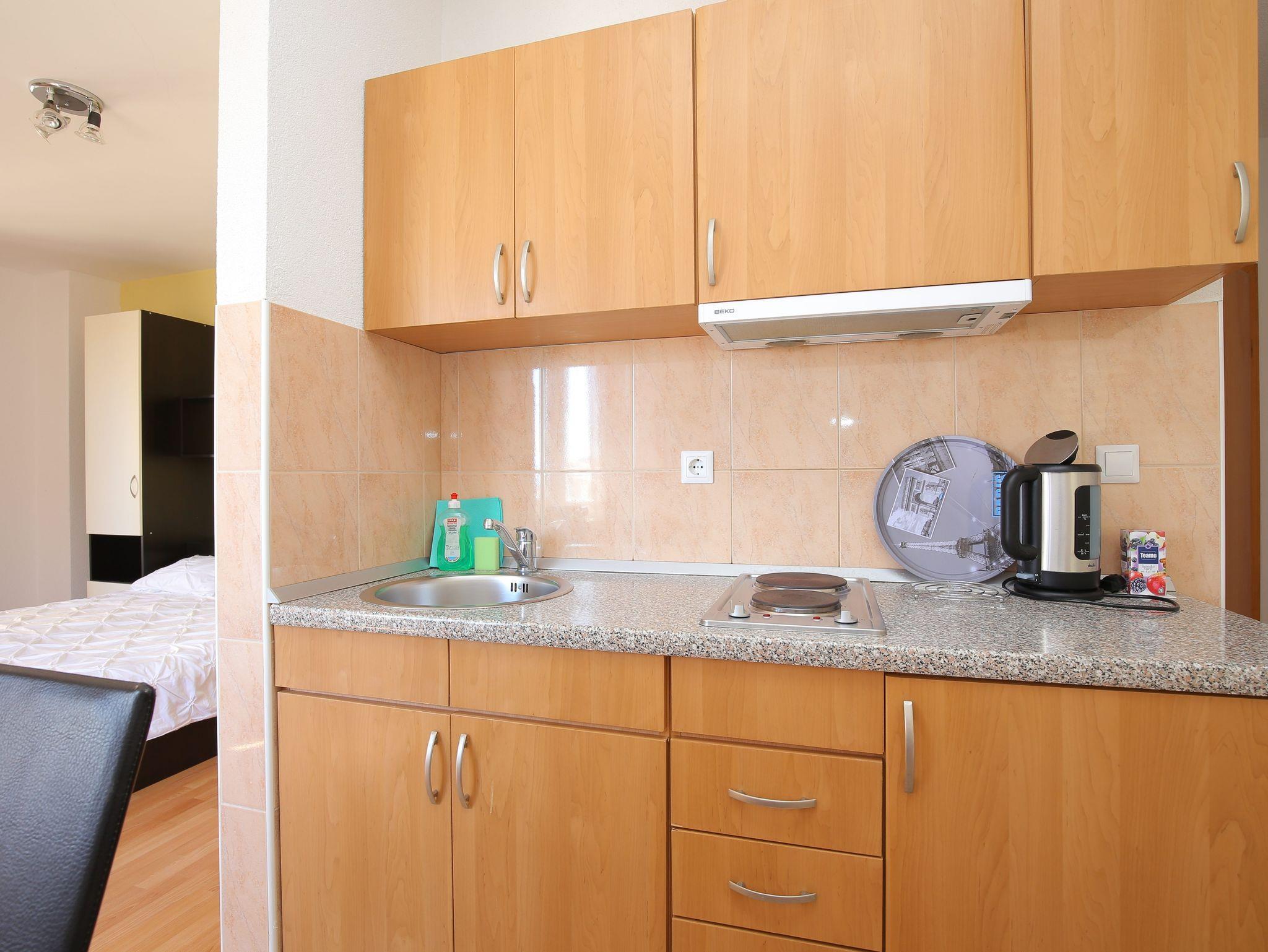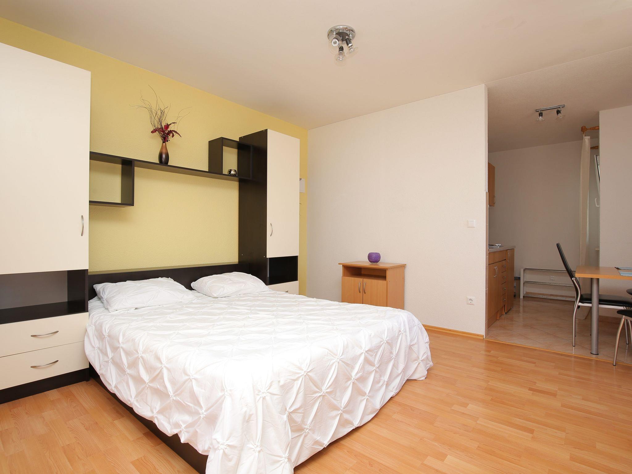 Studio bietet Platz für 3 Gäste. Die Betten sind in Schlafzimmern, die es 1 gibt, innerhalb einer Gesamtfläche von 32m2, angeordnet. Die Gäste haben einen eigenen Balkon zur Verfügung, auf der sie in warmen Sommernächten genießen können. Das Studio-Apartment bietet Meerblick. Es ist erlaubt, Speisen auf dem Gemeinschafts-Grill vorzubereiten. In der Unterkunftseinheit besteht die Möglichkeit des Mitbringens von Haustieren, und die Dienstleistung ist im Preis der Unterkunft enthalten. IM PREIS INBEGRIFFEN: Kurtaxe, Endreinigung, Klimatisierung, Parkplatz, Garage, Internet, Haustiere, Kinderbett, Bügeleisen, Bügelbrett, Föhn. Die Verfügbarkeit zusätzlicher Dienstleistungen in Ihrem reservierten Termin und die Preise derselben (falls nicht aufgeführt) müssen im Voraus überprüft werden. Zusätzliche Dienstleistungen die in der Zahlungsaufforderung nicht aufgeführt sind werden direkt beim Vermieter bezahlt, angenommen der Gast nutzt auch diese. Ermäßigung auf den Grundpreis: Gratistag 14=13 (bei einem Aufenthalt von 14 Tagen oder mehr erhalten Sie einen Gratistag für den Aufenthalt bis 31.12.26).