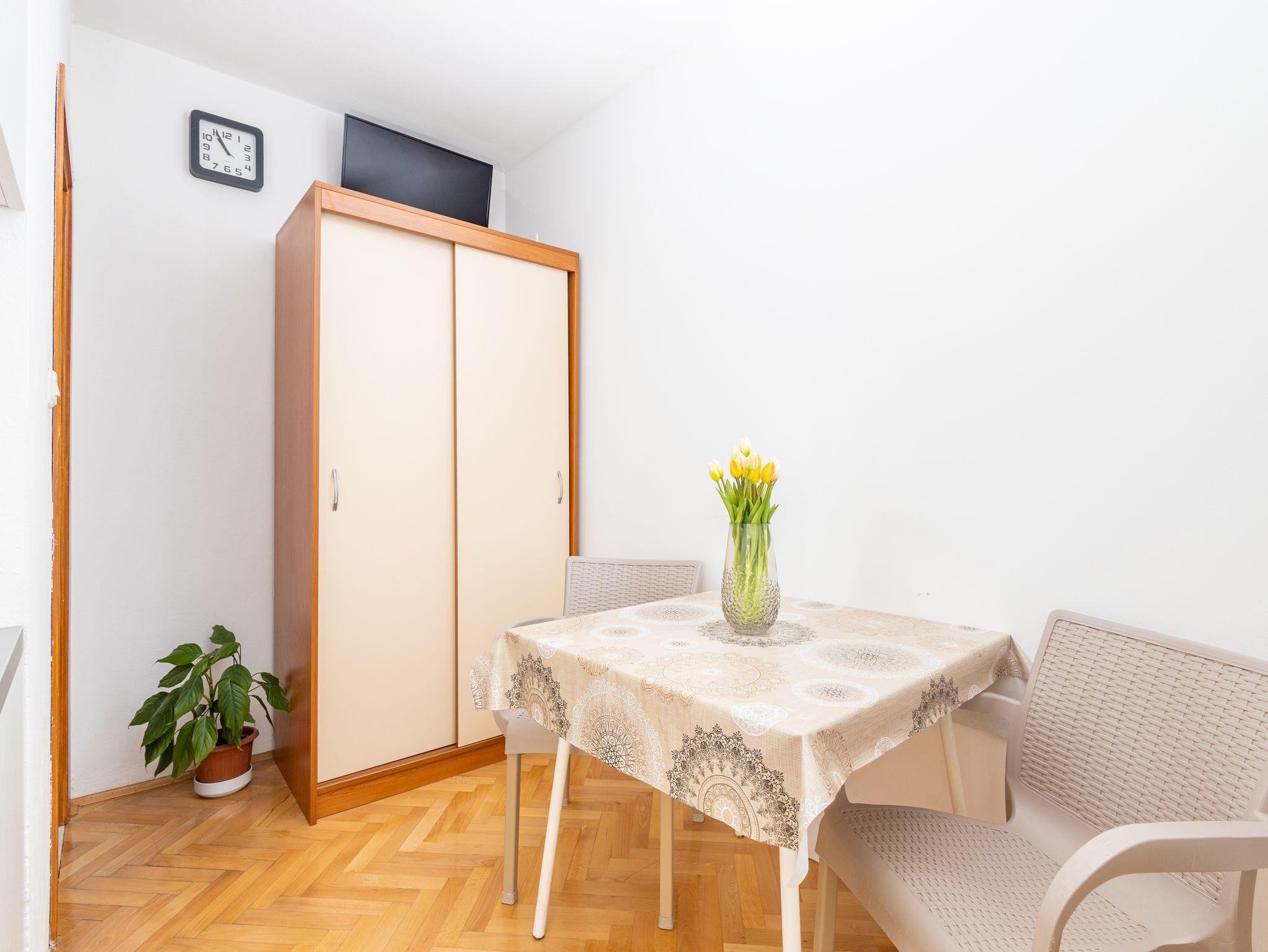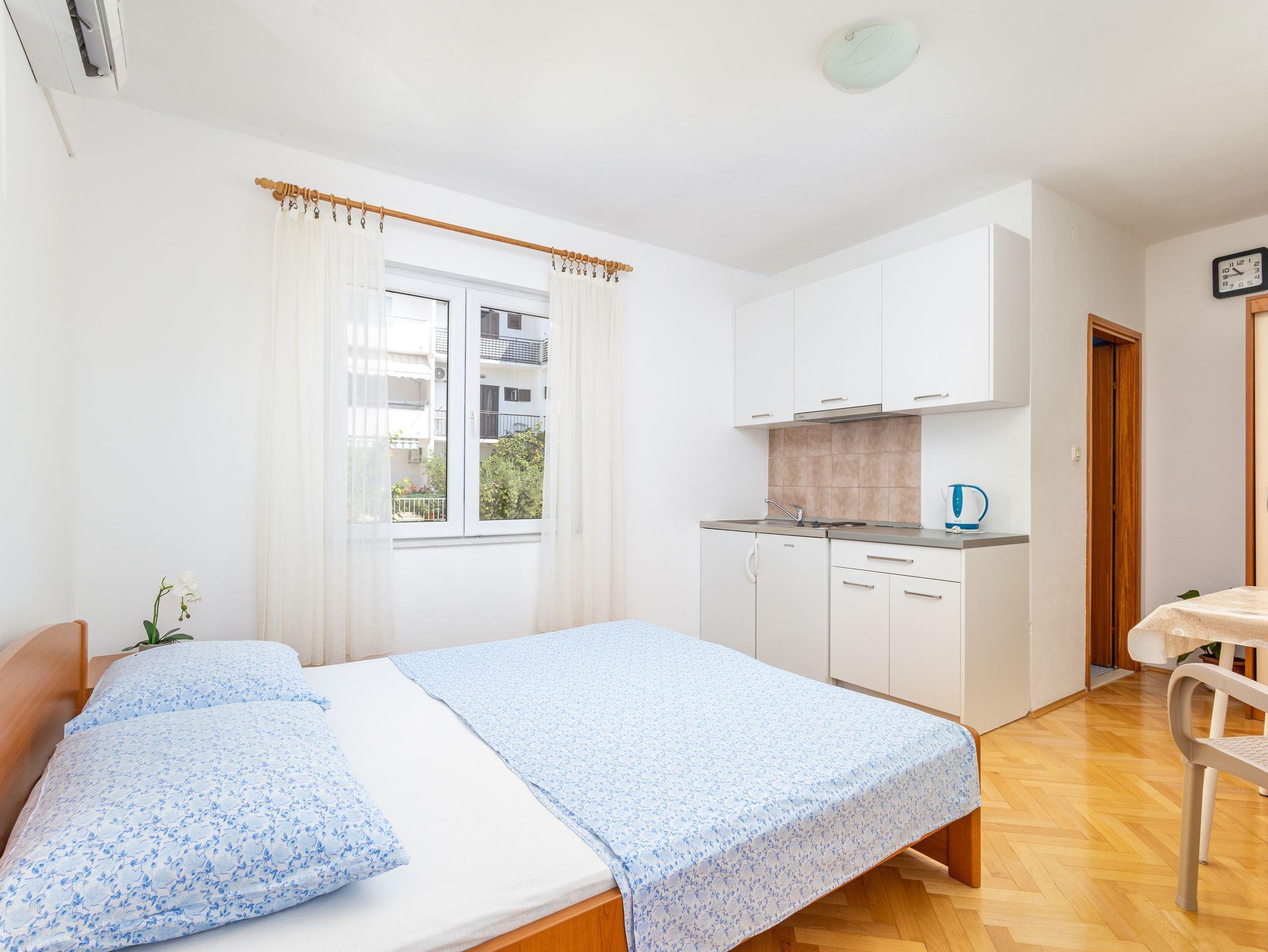 Studio bietet Platz für 2 Gäste. Die Betten sind in Schlafzimmern, die es 1 gibt, innerhalb einer Gesamtfläche von 19m2, angeordnet. Die Gäste haben eine eigene Terrasse zur Verfügung, auf der sie in warmen Sommernächten genießen können. Es ist erlaubt, Speisen auf dem Gemeinschafts-Grill vorzubereiten. Räume der gebuchten Unterkunftseinheit werden nicht in eine Ganze verbunden. Unterkunftseinheit hat Räume, die von dem Rest der Einheit abgetrennt werden. IM PREIS INBEGRIFFEN: Kurtaxe, Endreinigung, Klimatisierung, Parkplatz, Internet, Kinderbett, Bügeleisen, Bügelbrett, Föhn. VERBINDLICHE ZUSÄTZLICHE KOSTEN: Aufzahlung für Kurzaufenthalte (prozentualer Zuschlag pro Nächtigungsanzahl: 30% - 1, 20% - 2, 10% - 3). UNVERBINDLICHE ZUSÄTZLICHE KOSTEN: Zusatzbett (8,00 € pro Nacht). Die Verfügbarkeit zusätzlicher Dienstleistungen in Ihrem reservierten Termin und die Preise derselben (falls nicht aufgeführt) müssen im Voraus überprüft werden. Zusätzliche Dienstleistungen die in der Zahlungsaufforderung nicht aufgeführt sind werden direkt beim Vermieter bezahlt, angenommen der Gast nutzt auch diese. Ermäßigung auf den Grundpreis: Gratistag 14=13 (bei einem Aufenthalt von 14 Tagen oder mehr erhalten Sie einen Gratistag für den Aufenthalt bis 31.12.26).