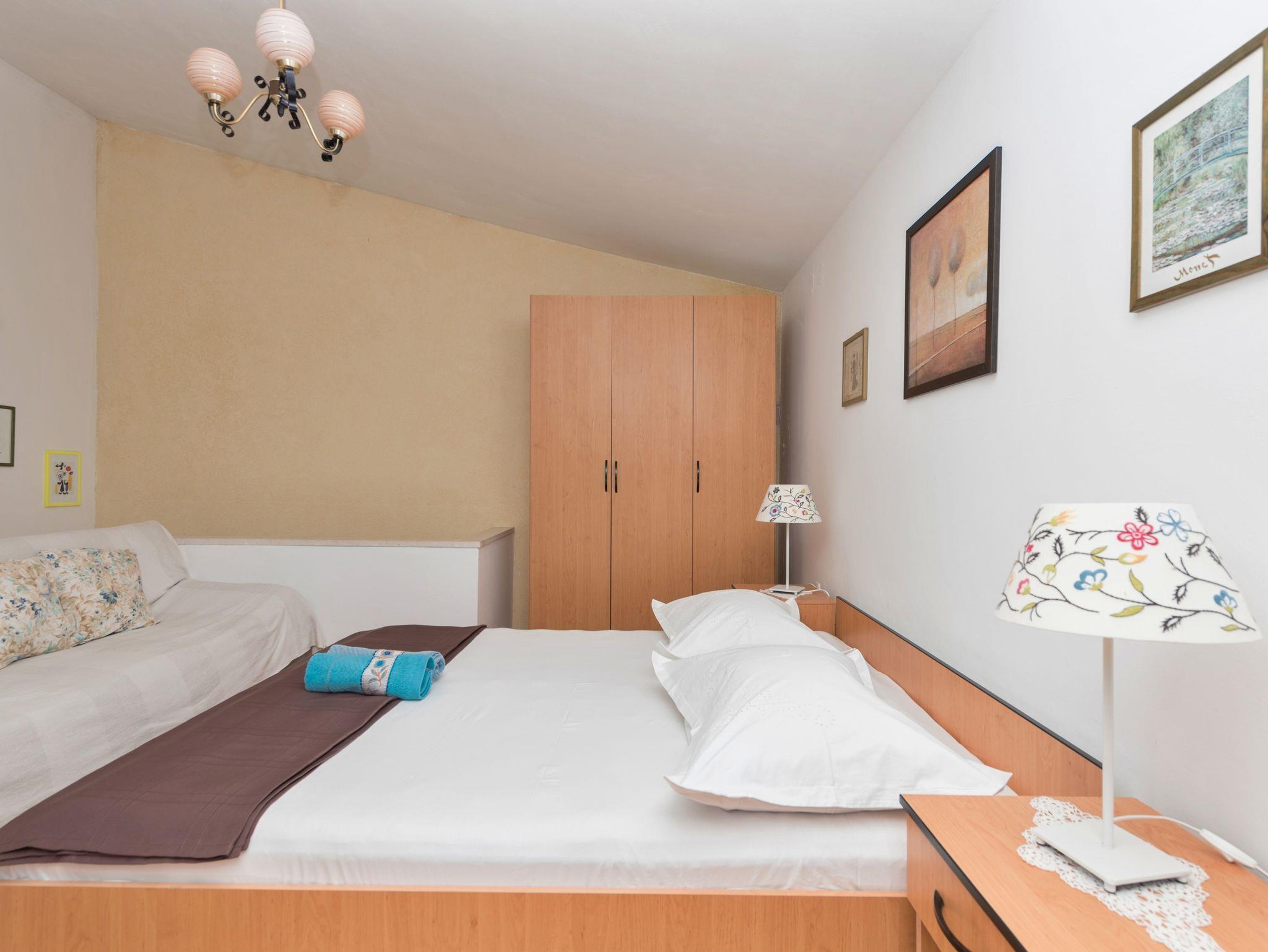 Ferienwohnung bietet Platz für 4 Gäste. Die Betten sind in Schlafzimmern, die es 1 gibt, und in Wohnzimmer, innerhalb einer Gesamtfläche von 46m2, angeordnet. Die Gäste haben einen eigenen Balkon zur Verfügung, auf der sie in warmen Sommernächten genießen können. Das Apartment bietet Meerblick. Es ist erlaubt, Speisen auf dem Gemeinschafts-Grill vorzubereiten. IM PREIS INBEGRIFFEN: Kurtaxe, Endreinigung, Klimatisierung, Parkplatz, Internet, Bügeleisen. VERBINDLICHE ZUSÄTZLICHE KOSTEN: Aufzahlung für Kurzaufenthalte (prozentualer Zuschlag pro Nächtigungsanzahl: 30% - 1, 20% - 2, 10% - 3). UNVERBINDLICHE ZUSÄTZLICHE KOSTEN: Garage (2,00 € pro Nacht). Die Verfügbarkeit zusätzlicher Dienstleistungen in Ihrem reservierten Termin und die Preise derselben (falls nicht aufgeführt) müssen im Voraus überprüft werden. Zusätzliche Dienstleistungen die in der Zahlungsaufforderung nicht aufgeführt sind werden direkt beim Vermieter bezahlt, angenommen der Gast nutzt auch diese.