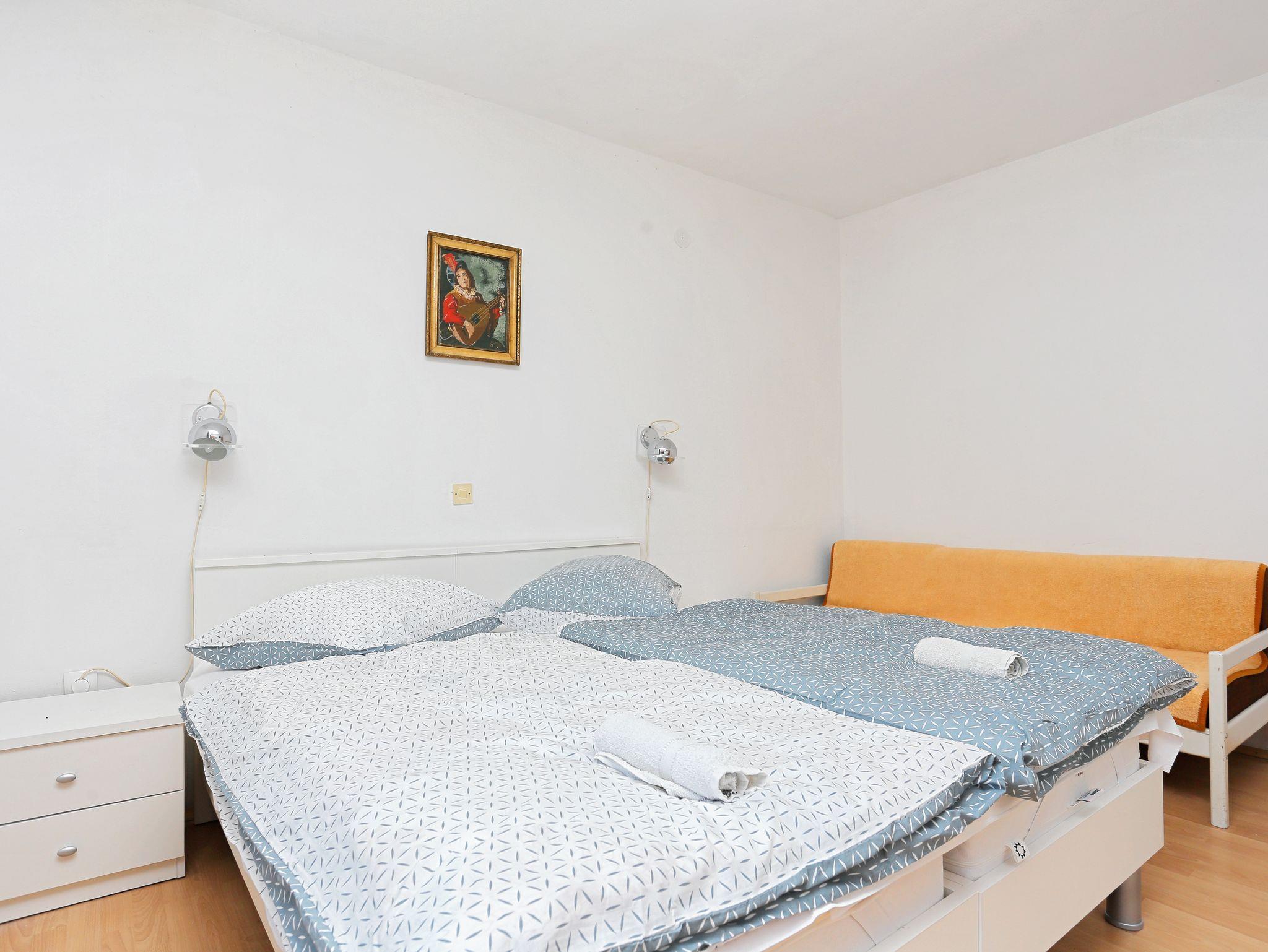 Ferienwohnung bietet Platz für 5 Gäste. Die Betten sind in Schlafzimmern, die es 1 gibt, und in Esszimmer, innerhalb einer Gesamtfläche von 39m2, angeordnet. Die Gäste haben einen eigenen Balkon zur Verfügung, auf der sie in warmen Sommernächten genießen können. Das Apartment bietet Meerblick. IM PREIS INBEGRIFFEN: Kurtaxe, Endreinigung, Klimatisierung, Parkplatz, Internet. VERBINDLICHE ZUSÄTZLICHE KOSTEN: Aufzahlung für Kurzaufenthalte (prozentualer Zuschlag pro Nächtigungsanzahl: 30% - 1, 20% - 2, 10% - 3). Die Verfügbarkeit zusätzlicher Dienstleistungen in Ihrem reservierten Termin und die Preise derselben (falls nicht aufgeführt) müssen im Voraus überprüft werden. Zusätzliche Dienstleistungen die in der Zahlungsaufforderung nicht aufgeführt sind werden direkt beim Vermieter bezahlt, angenommen der Gast nutzt auch diese. Ermäßigung auf den Grundpreis: Gratistag 14=13 (bei einem Aufenthalt von 14 Tagen oder mehr erhalten Sie einen Gratistag für den Aufenthalt bis 31.12.26).