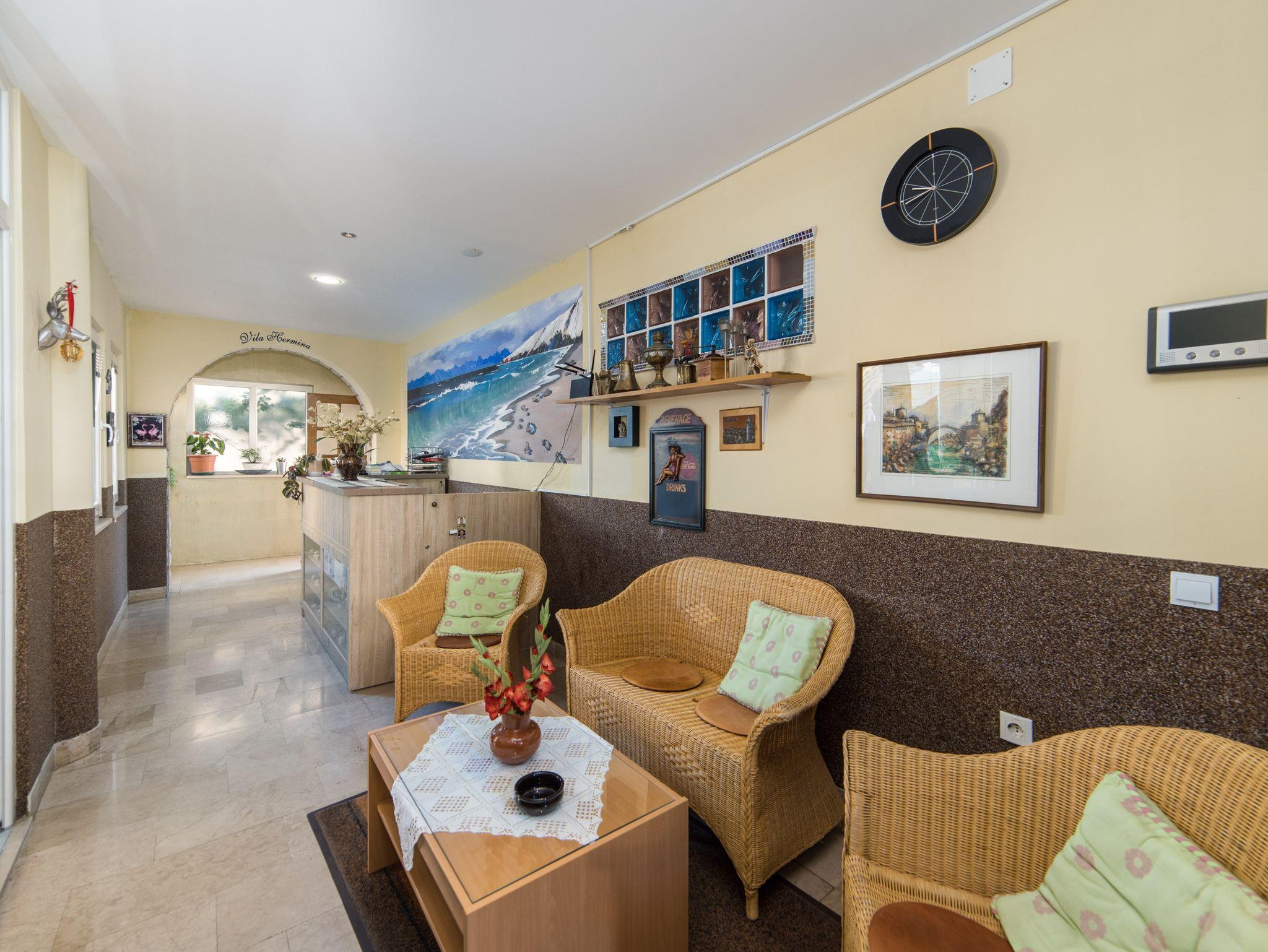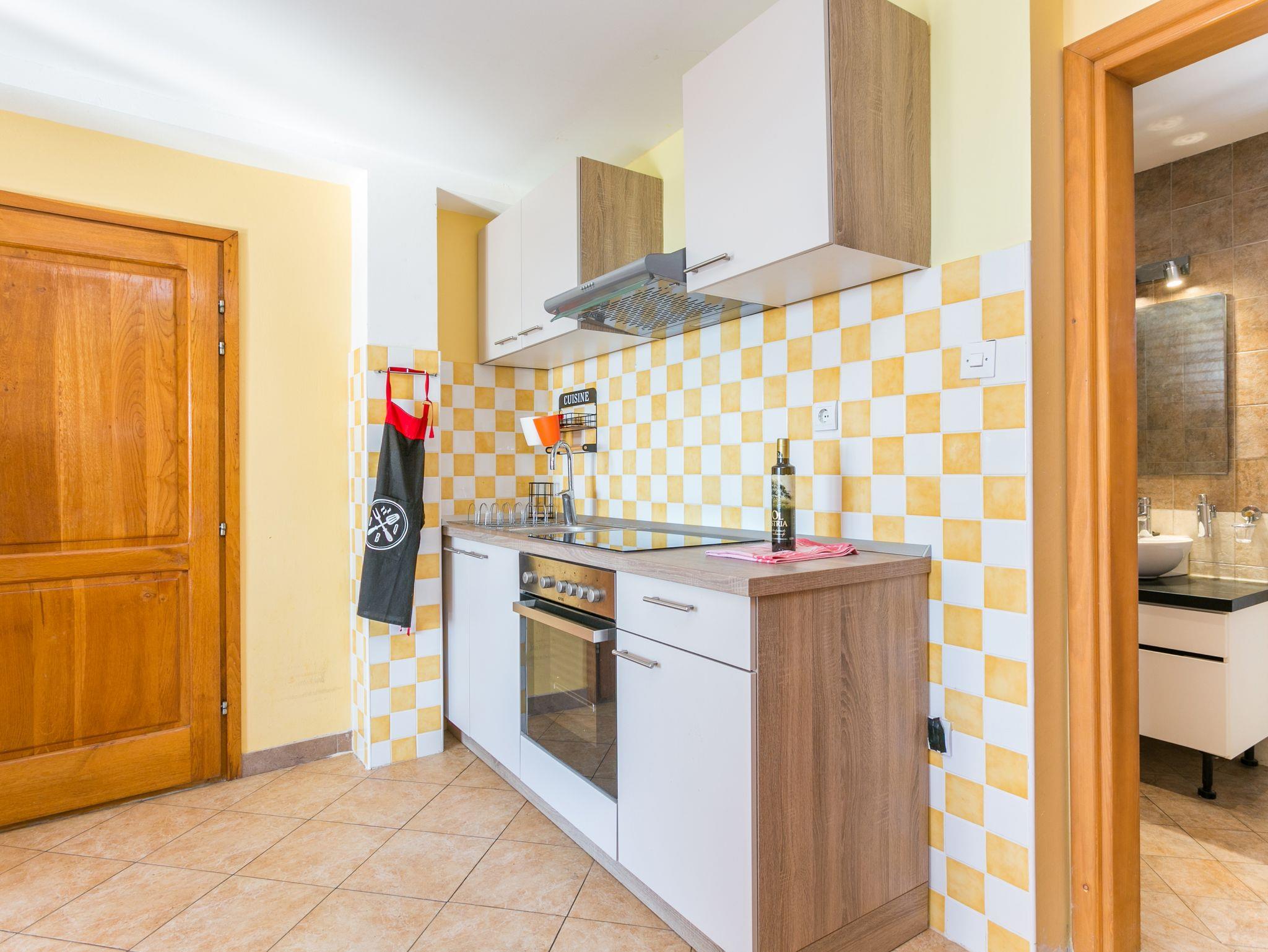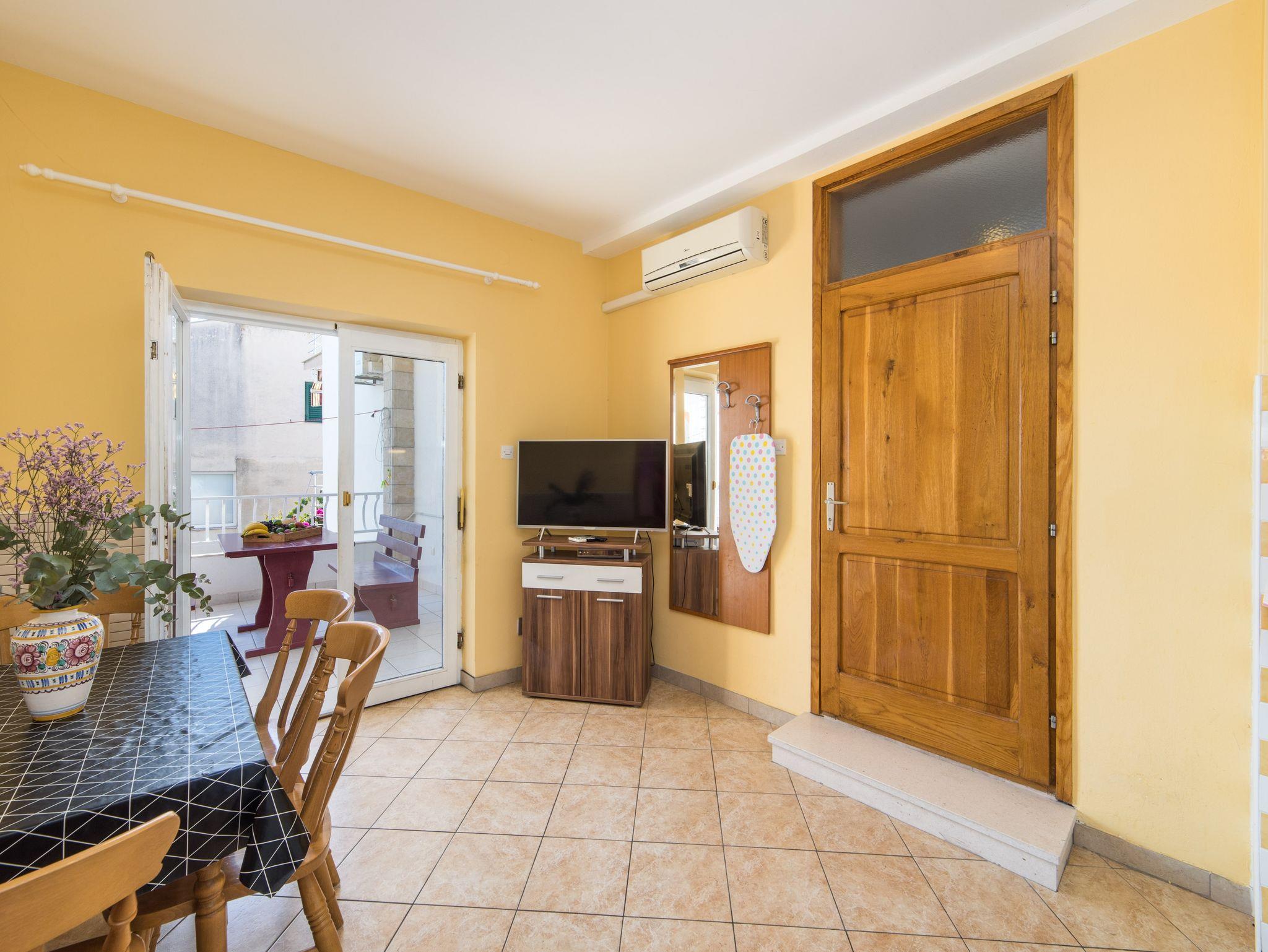 Ferienwohnung bietet Platz für 4 Gäste. Die Betten sind in Schlafzimmern, die es 2 gibt, innerhalb einer Gesamtfläche von 41m2, angeordnet. Die Gäste haben eine eigene Terrasse zur Verfügung, auf der sie in warmen Sommernächten genießen können. Das Apartment bietet Meerblick. Es ist erlaubt, Speisen auf dem Gemeinschafts-Grill vorzubereiten. IM PREIS INBEGRIFFEN: Kurtaxe, Endreinigung, Klimatisierung, Parkplatz, Internet, Bügeleisen, Bügelbrett, Föhn. VERBINDLICHE ZUSÄTZLICHE KOSTEN: Aufzahlung für Kurzaufenthalte (prozentualer Zuschlag pro Nächtigungsanzahl: 30% - 1, 20% - 2, 10% - 3). Die Verfügbarkeit zusätzlicher Dienstleistungen in Ihrem reservierten Termin und die Preise derselben (falls nicht aufgeführt) müssen im Voraus überprüft werden. Zusätzliche Dienstleistungen die in der Zahlungsaufforderung nicht aufgeführt sind werden direkt beim Vermieter bezahlt, angenommen der Gast nutzt auch diese. Ermäßigung auf den Grundpreis: Gratistag 14=13 (bei einem Aufenthalt von 14 Tagen oder mehr erhalten Sie einen Gratistag für den Aufenthalt bis 31.12.26).