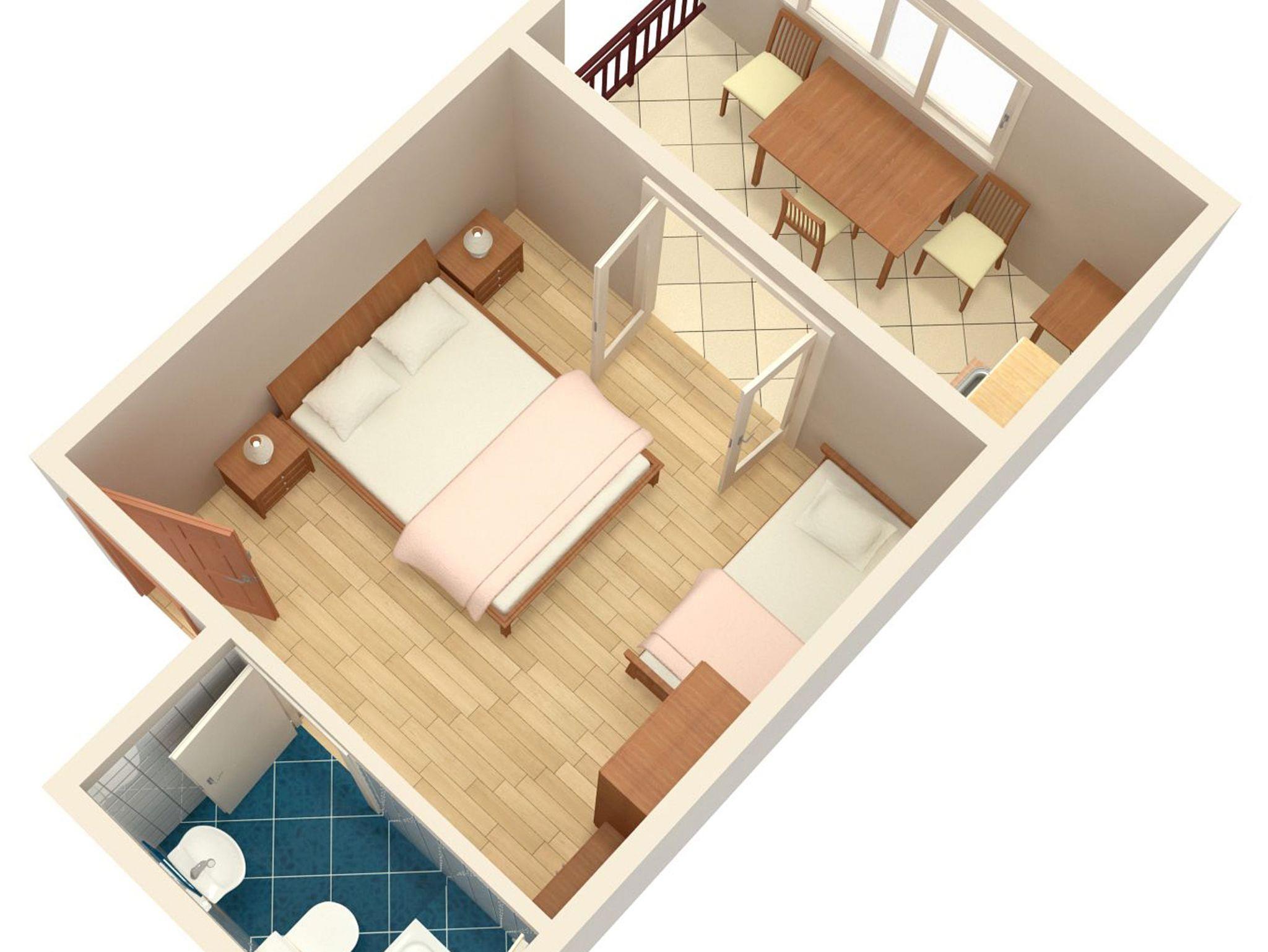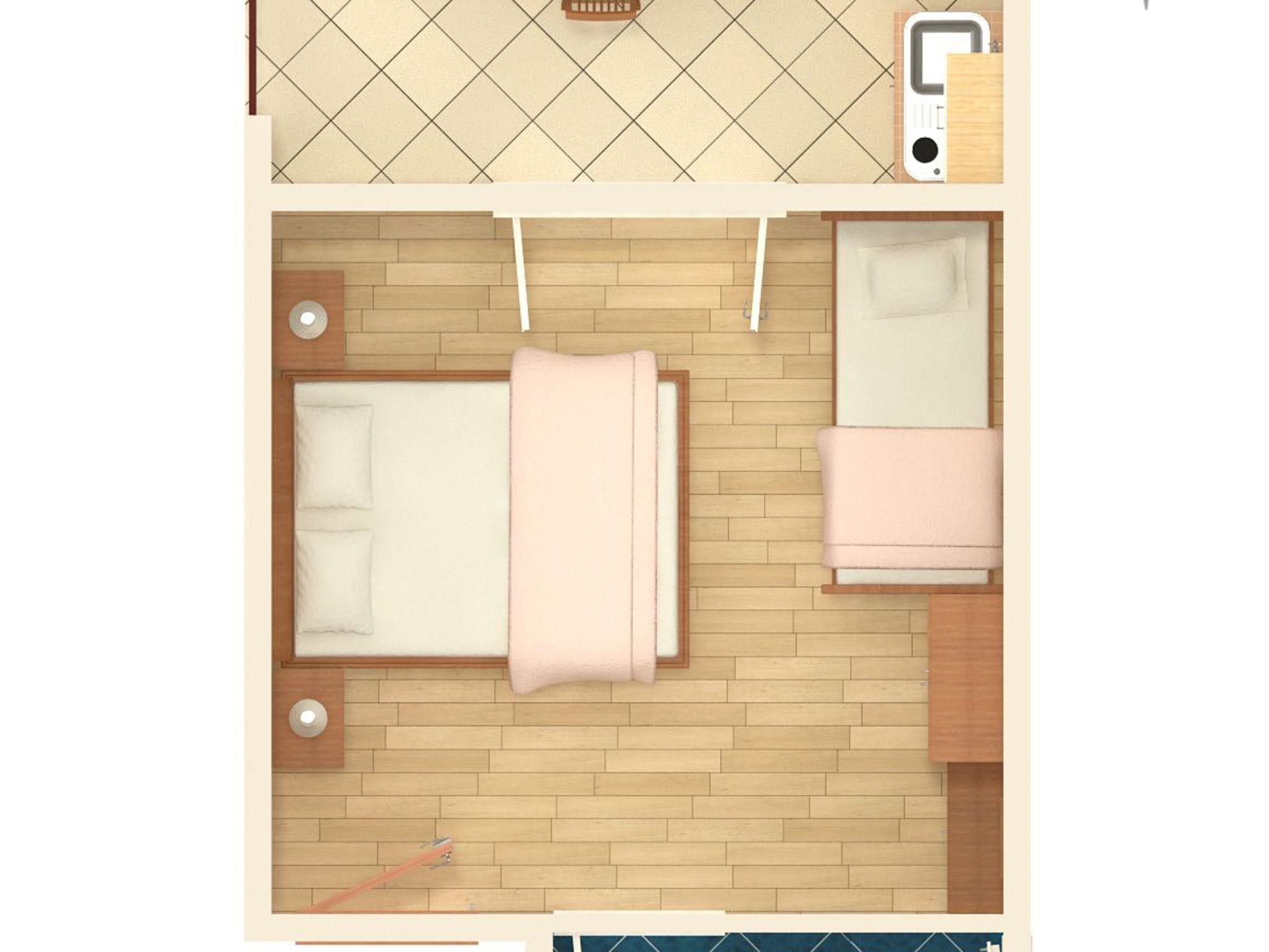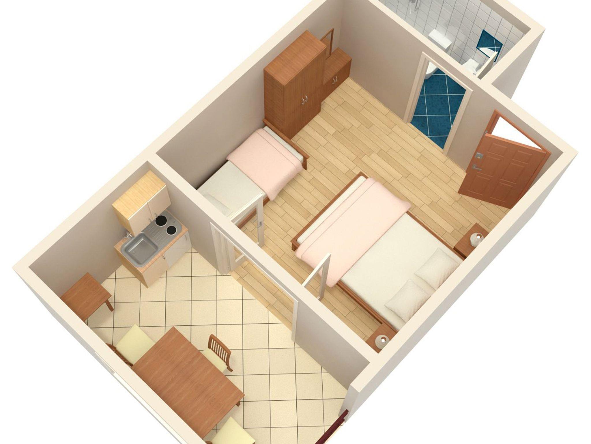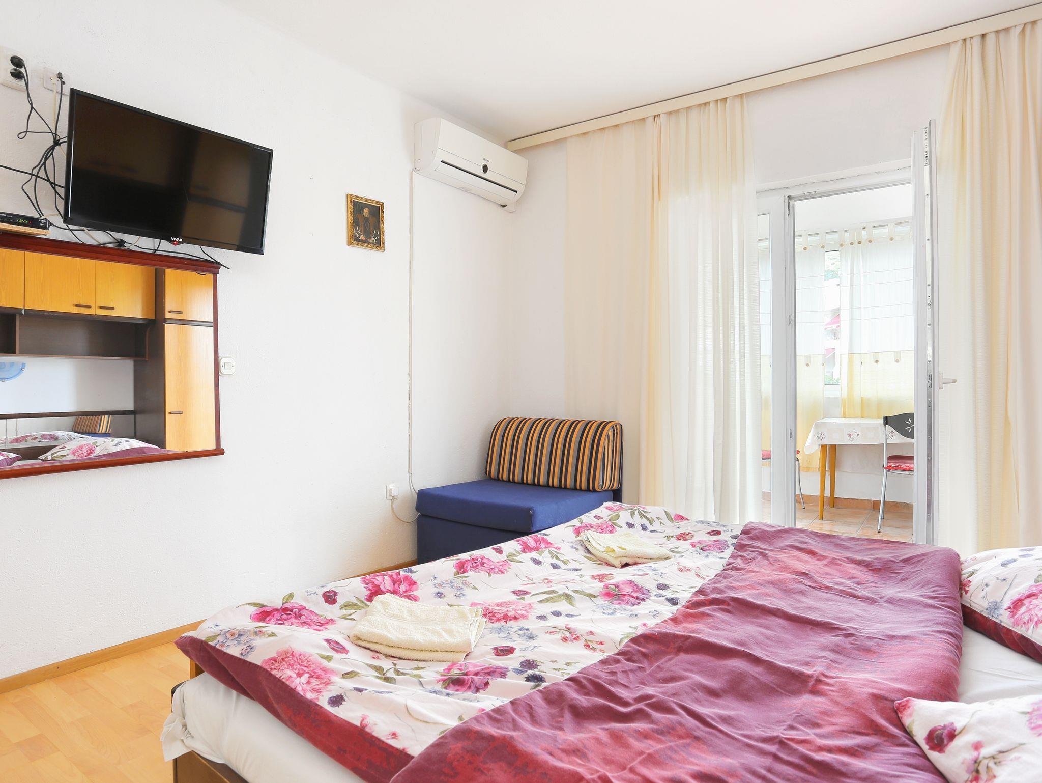 Studio bietet Platz für 3 Gäste. Die Betten sind in Schlafzimmern, die es 1 gibt, innerhalb einer Gesamtfläche von 18m2, angeordnet. Die Gäste haben eine eigene Terrasse zur Verfügung, auf der sie in warmen Sommernächten genießen können. Es ist erlaubt, Speisen auf dem Gemeinschafts-Grill vorzubereiten. IM PREIS INBEGRIFFEN: Kurtaxe, Endreinigung, Klimatisierung, Parkplatz, Internet, Bügelbrett. VERBINDLICHE ZUSÄTZLICHE KOSTEN: Aufzahlung für Kurzaufenthalte (prozentualer Zuschlag pro Nächtigungsanzahl: 30% - 1, 20% - 2, 10% - 3). Die Verfügbarkeit zusätzlicher Dienstleistungen in Ihrem reservierten Termin und die Preise derselben (falls nicht aufgeführt) müssen im Voraus überprüft werden. Zusätzliche Dienstleistungen die in der Zahlungsaufforderung nicht aufgeführt sind werden direkt beim Vermieter bezahlt, angenommen der Gast nutzt auch diese. Ermäßigung auf den Grundpreis: Gratistag 14=13 (bei einem Aufenthalt von 14 Tagen oder mehr erhalten Sie einen Gratistag für den Aufenthalt bis 31.12.26).