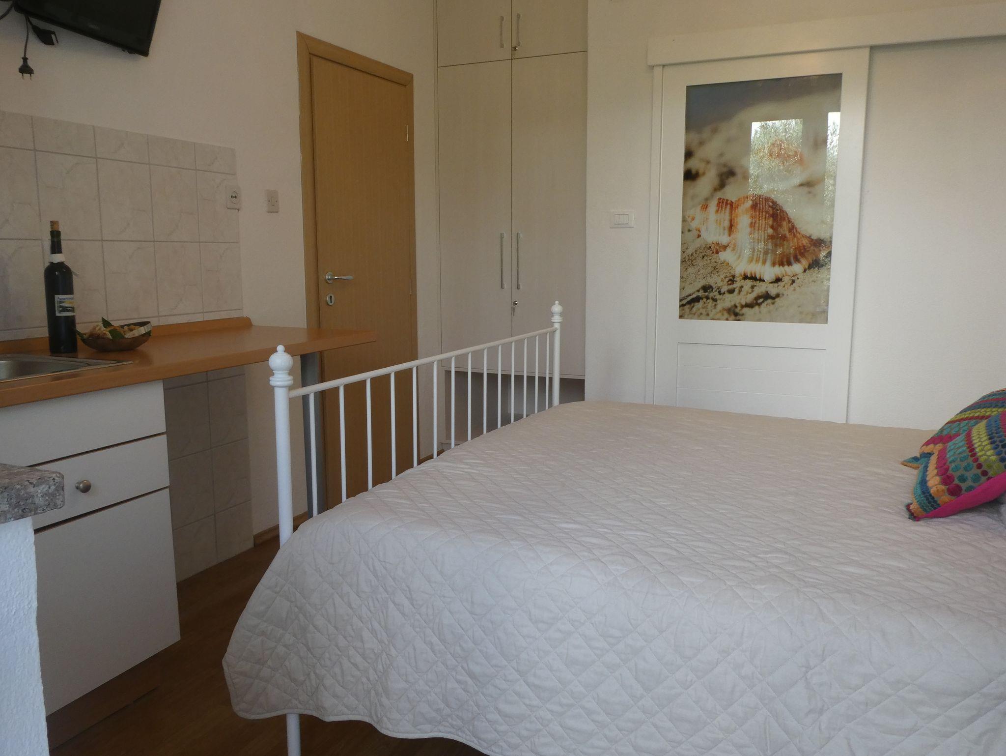 Studio bietet Platz für 2 Gäste. Die Betten sind in Schlafzimmern, die es 1 gibt, innerhalb einer Gesamtfläche von 13m2, angeordnet. Die Gäste haben einen eigenen Balkon zur Verfügung, auf der sie in warmen Sommernächten genießen können. Das Studio-Apartment bietet Meerblick. Es ist erlaubt, Speisen auf dem Gemeinschafts-Grill vorzubereiten. In der Unterkunftseinheit besteht die Möglichkeit des Mitbringens von Haustieren gegen Aufpreis. IM PREIS INBEGRIFFEN: Kurtaxe, Endreinigung, Klimatisierung, Parkplatz, Internet, Fahrrad, Kinderbett, Bügeleisen, Bügelbrett, Föhn. VERBINDLICHE ZUSÄTZLICHE KOSTEN: Aufzahlung für Kurzaufenthalte (prozentualer Zuschlag pro Nächtigungsanzahl: 30% - 1, 20% - 2, 10% - 3). UNVERBINDLICHE ZUSÄTZLICHE KOSTEN: Haustiere (10,00 € pro Nacht). Die Verfügbarkeit zusätzlicher Dienstleistungen in Ihrem reservierten Termin und die Preise derselben (falls nicht aufgeführt) müssen im Voraus überprüft werden. Zusätzliche Dienstleistungen die in der Zahlungsaufforderung nicht aufgeführt sind werden direkt beim Vermieter bezahlt, angenommen der Gast nutzt auch diese. Ermäßigung auf den Grundpreis: Gratistag 14=13 (bei einem Aufenthalt von 14 Tagen oder mehr erhalten Sie einen Gratistag für den Aufenthalt bis 31.12.26).