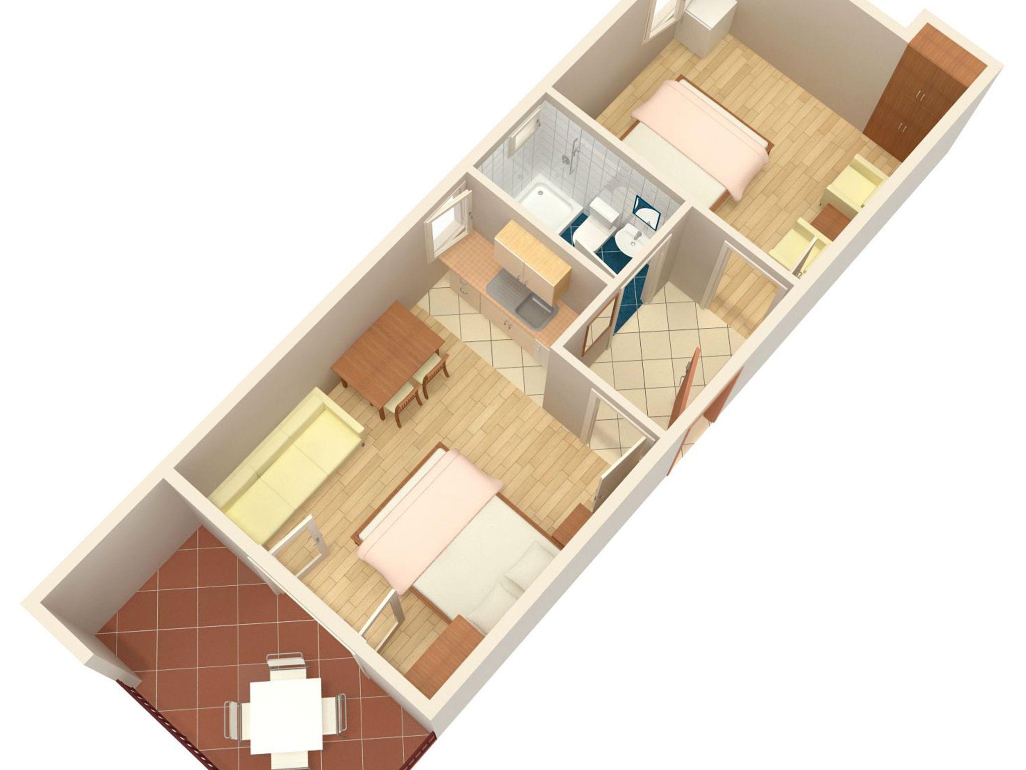 Ferienwohnung bietet Platz für 4 Gäste. Die Betten sind in Schlafzimmern, die es 1 gibt, und in Wohnzimmer, innerhalb einer Gesamtfläche von 36m2, angeordnet. Die Gäste haben eine eigene Terrasse zur Verfügung, auf der sie in warmen Sommernächten genießen können. Das Apartment bietet Meerblick. IM PREIS INBEGRIFFEN: Kurtaxe, Endreinigung, Klimatisierung, Parkplatz, Internet. VERBINDLICHE ZUSÄTZLICHE KOSTEN: Aufzahlung für Kurzaufenthalte (prozentualer Zuschlag pro Nächtigungsanzahl: 30% - 1, 20% - 2, 10% - 3). Die Verfügbarkeit zusätzlicher Dienstleistungen in Ihrem reservierten Termin und die Preise derselben (falls nicht aufgeführt) müssen im Voraus überprüft werden. Zusätzliche Dienstleistungen die in der Zahlungsaufforderung nicht aufgeführt sind werden direkt beim Vermieter bezahlt, angenommen der Gast nutzt auch diese. Ermäßigung auf den Grundpreis: Gratistag 14=13 (bei einem Aufenthalt von 14 Tagen oder mehr erhalten Sie einen Gratistag für den Aufenthalt bis 31.12.26).