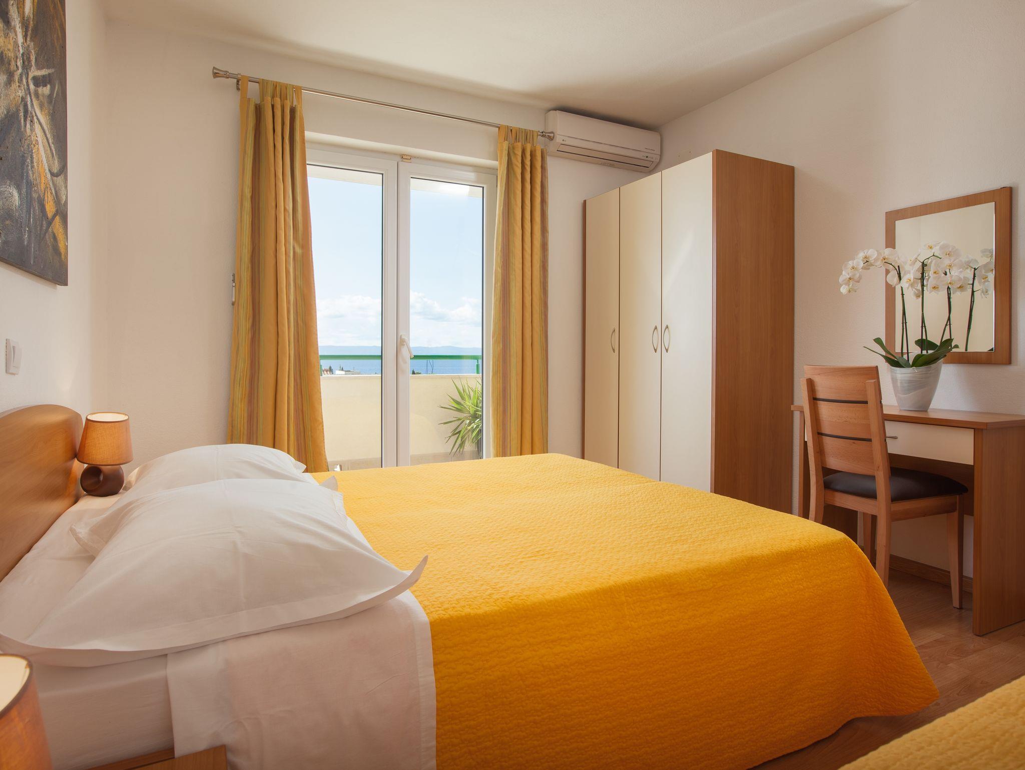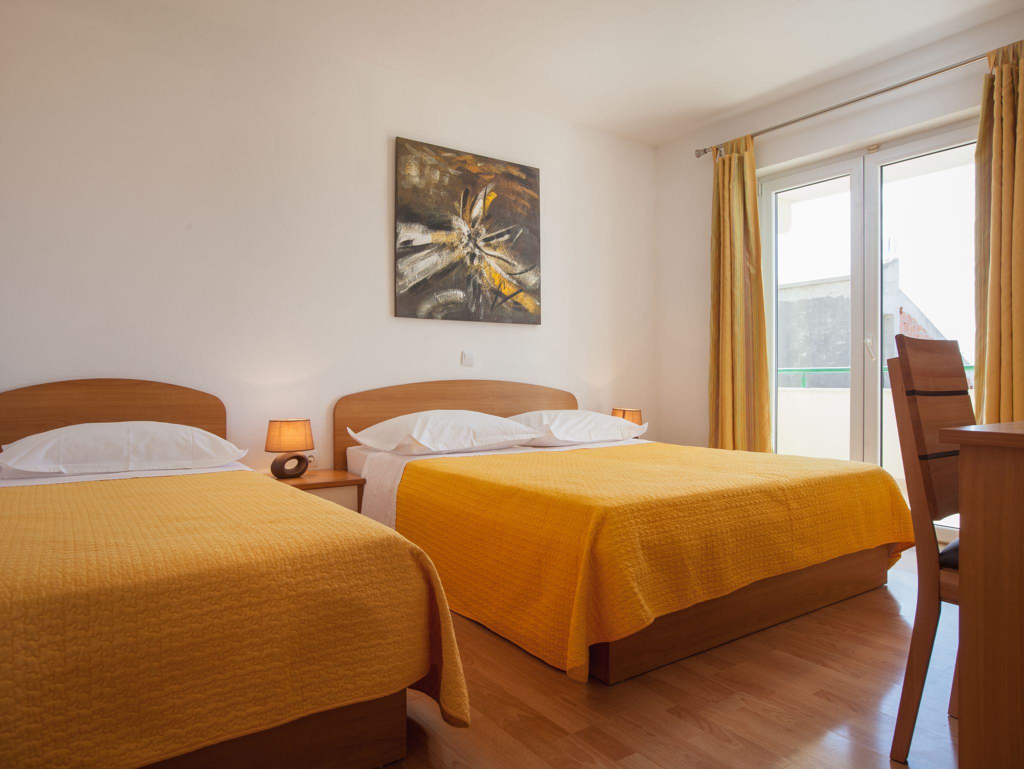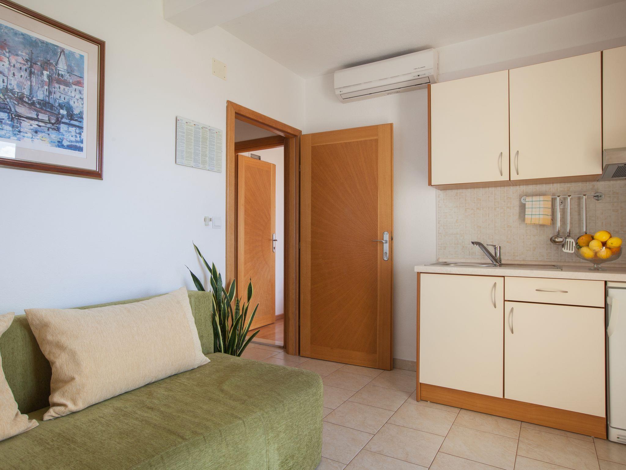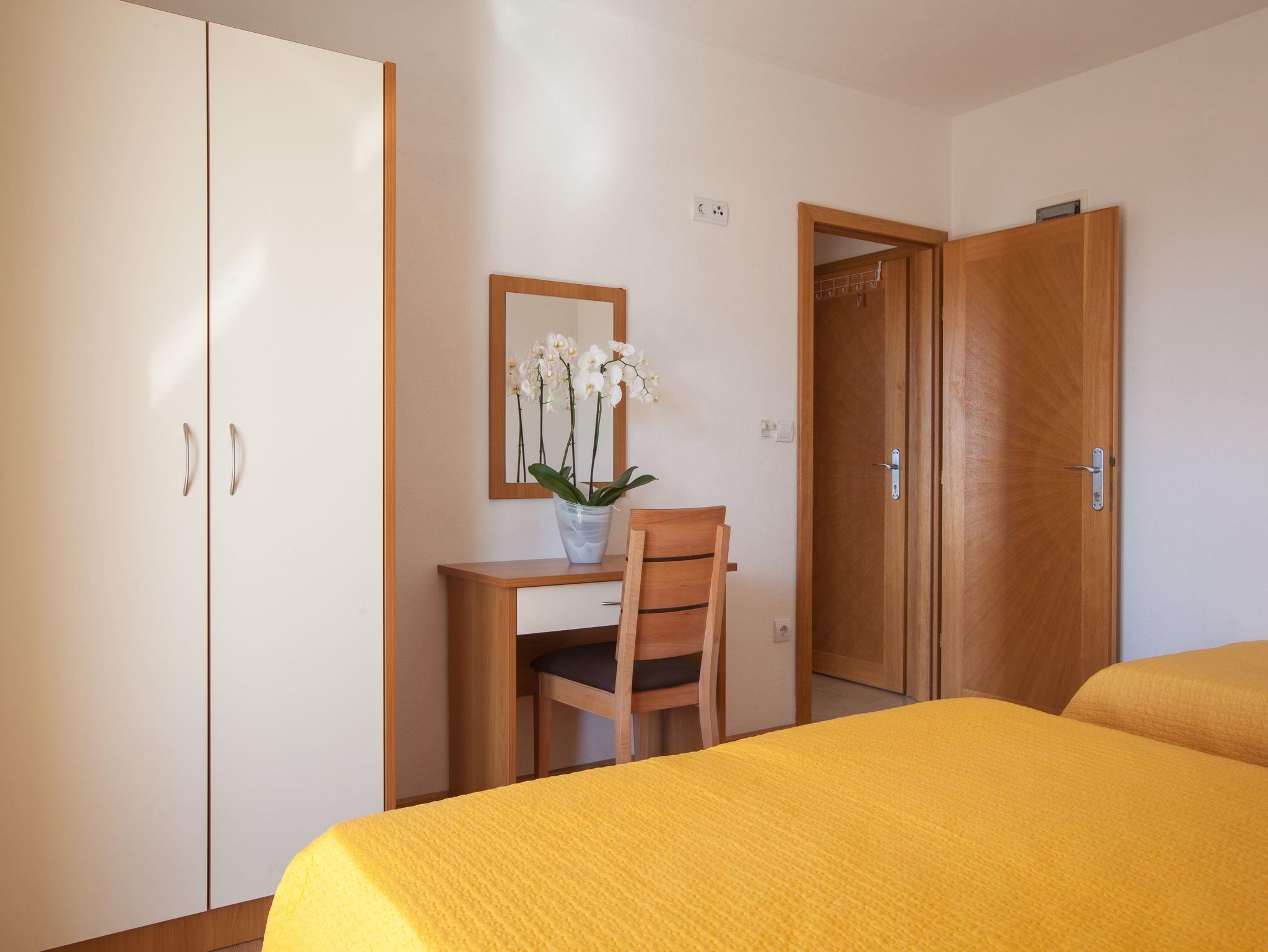 Ferienwohnung bietet Platz für 4 Gäste. Die Betten sind in Schlafzimmern, die es 1 gibt, und in Wohnzimmer, innerhalb einer Gesamtfläche von 30m2, angeordnet. Die Gäste haben eine eigene Terrasse zur Verfügung, auf der sie in warmen Sommernächten genießen können. Das Apartment bietet Meerblick. IM PREIS INBEGRIFFEN: Kurtaxe, Endreinigung, Klimatisierung, Parkplatz, Internet, Kinderbett, Bügeleisen, Bügelbrett, Föhn, 1 Bett für Kinder (im Preis enthalten). VERBINDLICHE ZUSÄTZLICHE KOSTEN: Aufzahlung für Kurzaufenthalte (prozentualer Zuschlag pro Nächtigungsanzahl: 30% - 1, 20% - 2, 10% - 3). Die Verfügbarkeit zusätzlicher Dienstleistungen in Ihrem reservierten Termin und die Preise derselben (falls nicht aufgeführt) müssen im Voraus überprüft werden. Zusätzliche Dienstleistungen die in der Zahlungsaufforderung nicht aufgeführt sind werden direkt beim Vermieter bezahlt, angenommen der Gast nutzt auch diese.