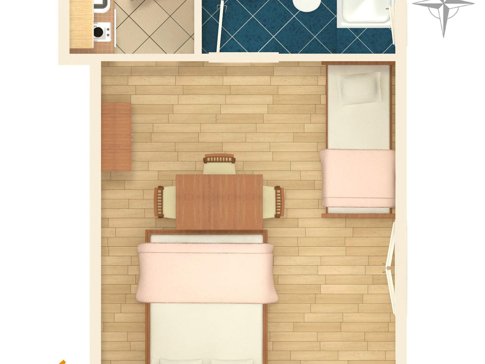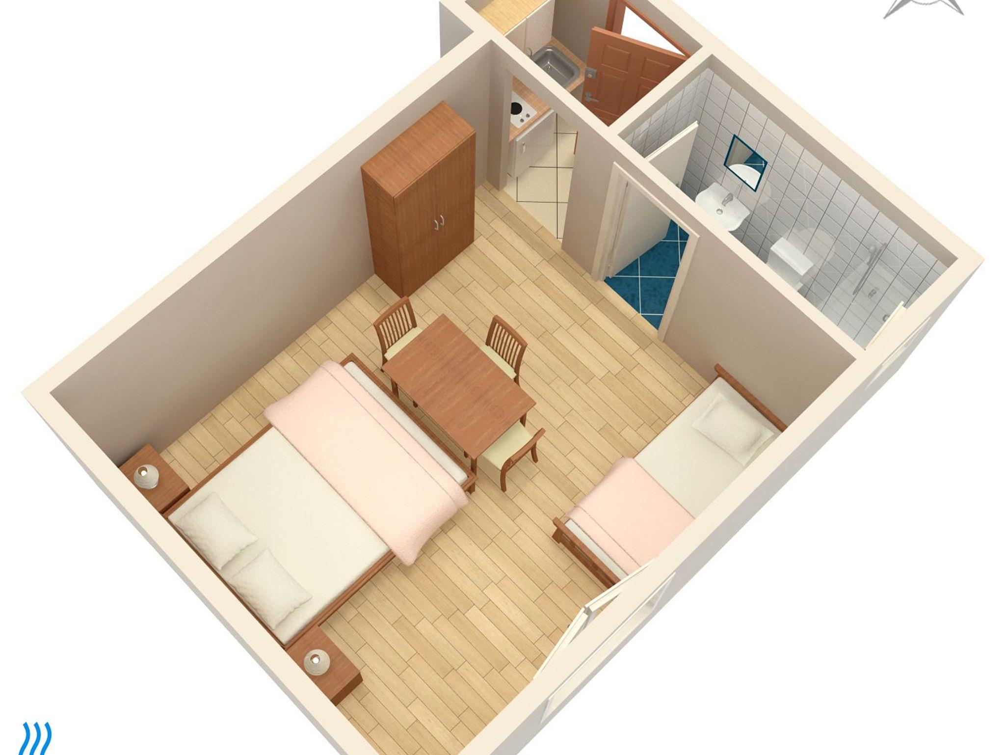 Studio bietet Platz für 3 Gäste. Die Betten sind in Schlafzimmern, die es 1 gibt, innerhalb einer Gesamtfläche von 19m2, angeordnet. Es ist erlaubt, Speisen auf dem Gemeinschafts-Grill vorzubereiten. Die reservierte Unterkunftseinheit hat keinen Balkon und keine Terrasse. IM PREIS INBEGRIFFEN: Kurtaxe, Endreinigung, Klimatisierung, Parkplatz, Internet, Bügelbrett. VERBINDLICHE ZUSÄTZLICHE KOSTEN: Aufzahlung für Kurzaufenthalte (prozentualer Zuschlag pro Nächtigungsanzahl: 30% - 1, 20% - 2, 10% - 3). Die Verfügbarkeit zusätzlicher Dienstleistungen in Ihrem reservierten Termin und die Preise derselben (falls nicht aufgeführt) müssen im Voraus überprüft werden. Zusätzliche Dienstleistungen die in der Zahlungsaufforderung nicht aufgeführt sind werden direkt beim Vermieter bezahlt, angenommen der Gast nutzt auch diese. Ermäßigung auf den Grundpreis: Gratistag 14=13 (bei einem Aufenthalt von 14 Tagen oder mehr erhalten Sie einen Gratistag für den Aufenthalt bis 31.12.26).