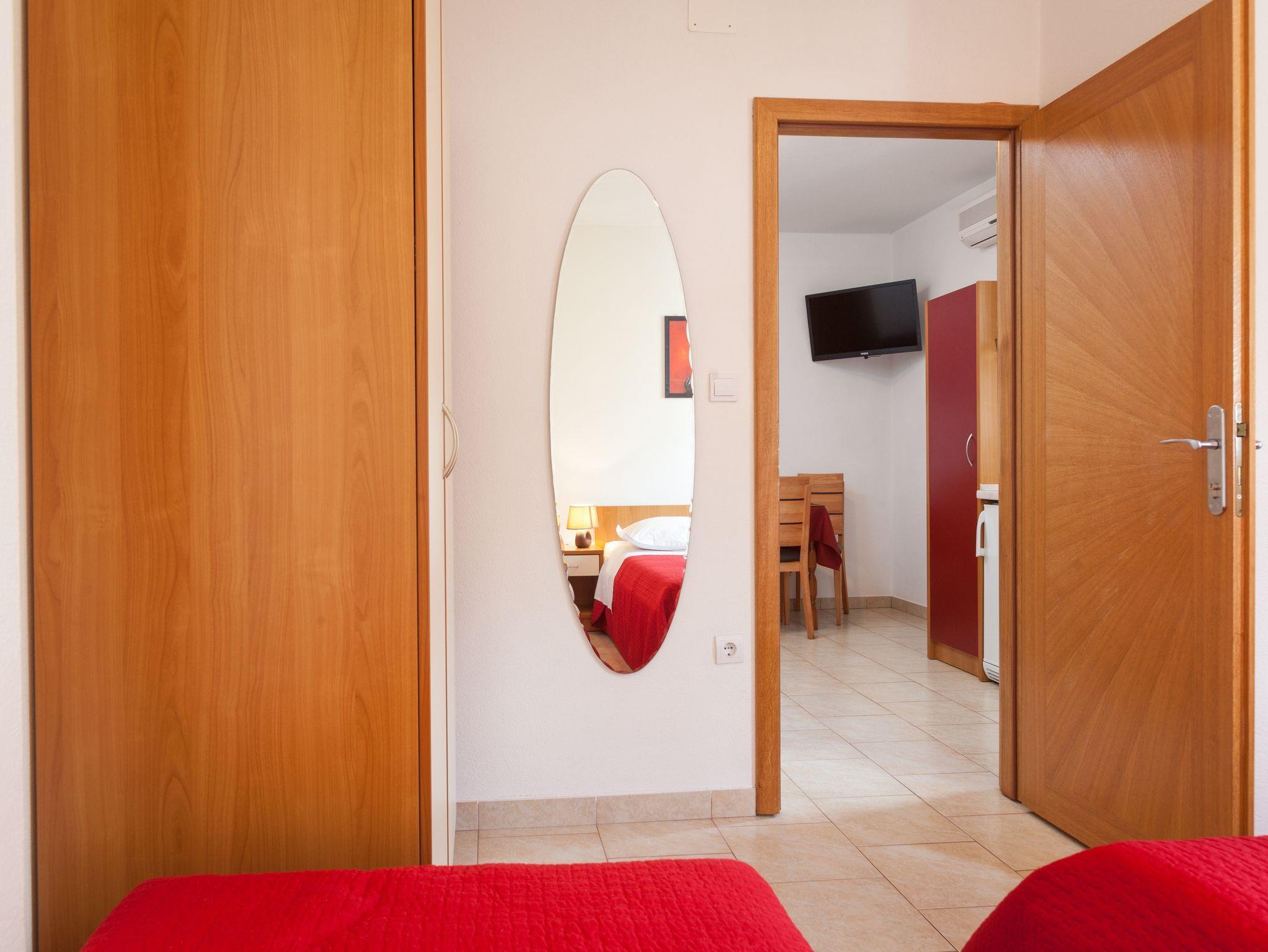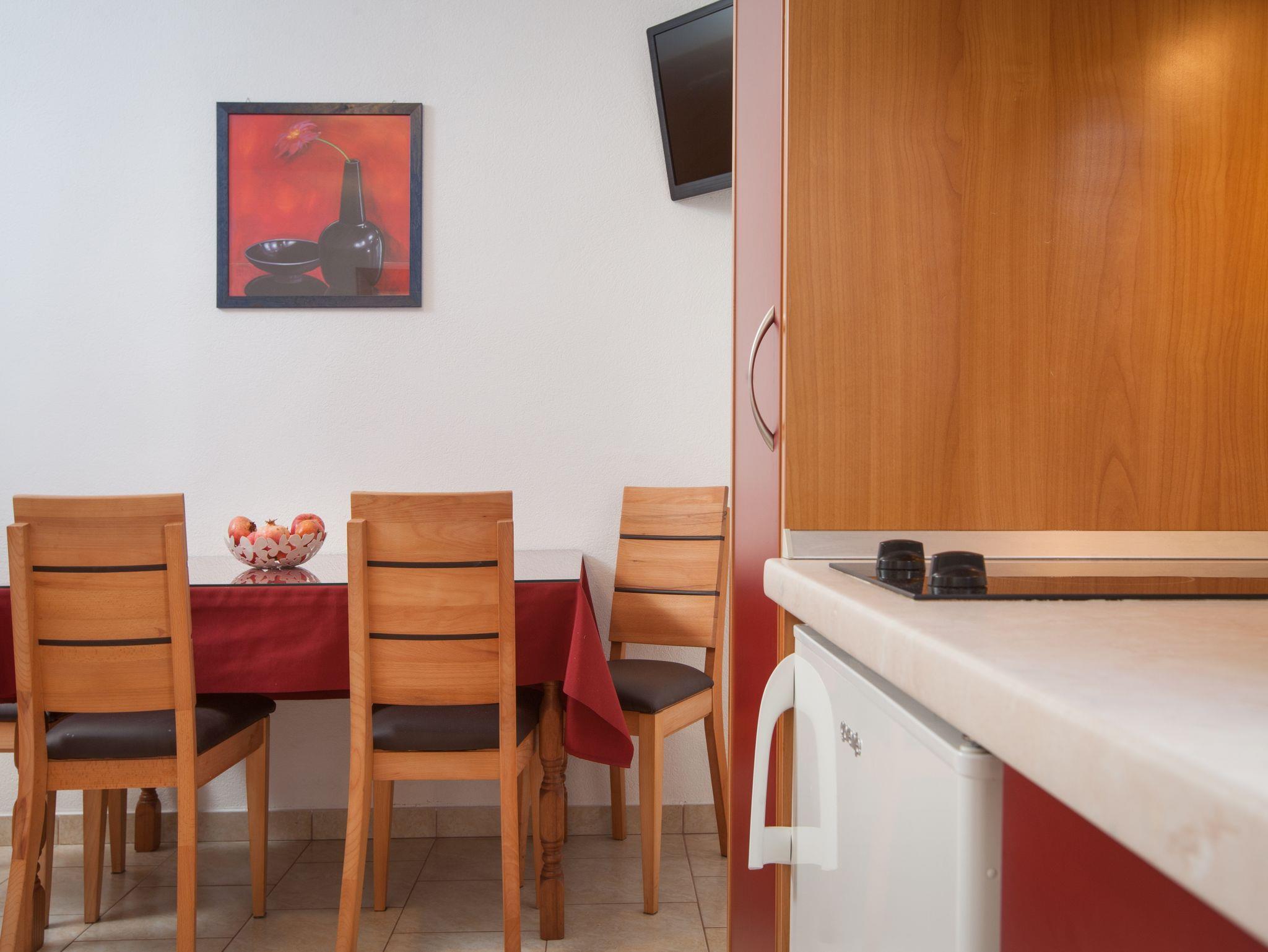Ferienwohnung bietet Platz für 4 Gäste. Die Betten sind in Schlafzimmern, die es 1 gibt, und in Wohnzimmer, innerhalb einer Gesamtfläche von 28m2, angeordnet. Die Gäste haben eine eigene Terrasse zur Verfügung, auf der sie in warmen Sommernächten genießen können. Das Apartment bietet Meerblick. IM PREIS INBEGRIFFEN: Kurtaxe, Endreinigung, Klimatisierung, Parkplatz, Internet, Kinderbett, Bügeleisen, Bügelbrett, Föhn, 1 Bett für Kinder (im Preis enthalten). VERBINDLICHE ZUSÄTZLICHE KOSTEN: Aufzahlung für Kurzaufenthalte (prozentualer Zuschlag pro Nächtigungsanzahl: 30% - 1, 20% - 2, 10% - 3). Die Verfügbarkeit zusätzlicher Dienstleistungen in Ihrem reservierten Termin und die Preise derselben (falls nicht aufgeführt) müssen im Voraus überprüft werden. Zusätzliche Dienstleistungen die in der Zahlungsaufforderung nicht aufgeführt sind werden direkt beim Vermieter bezahlt, angenommen der Gast nutzt auch diese.