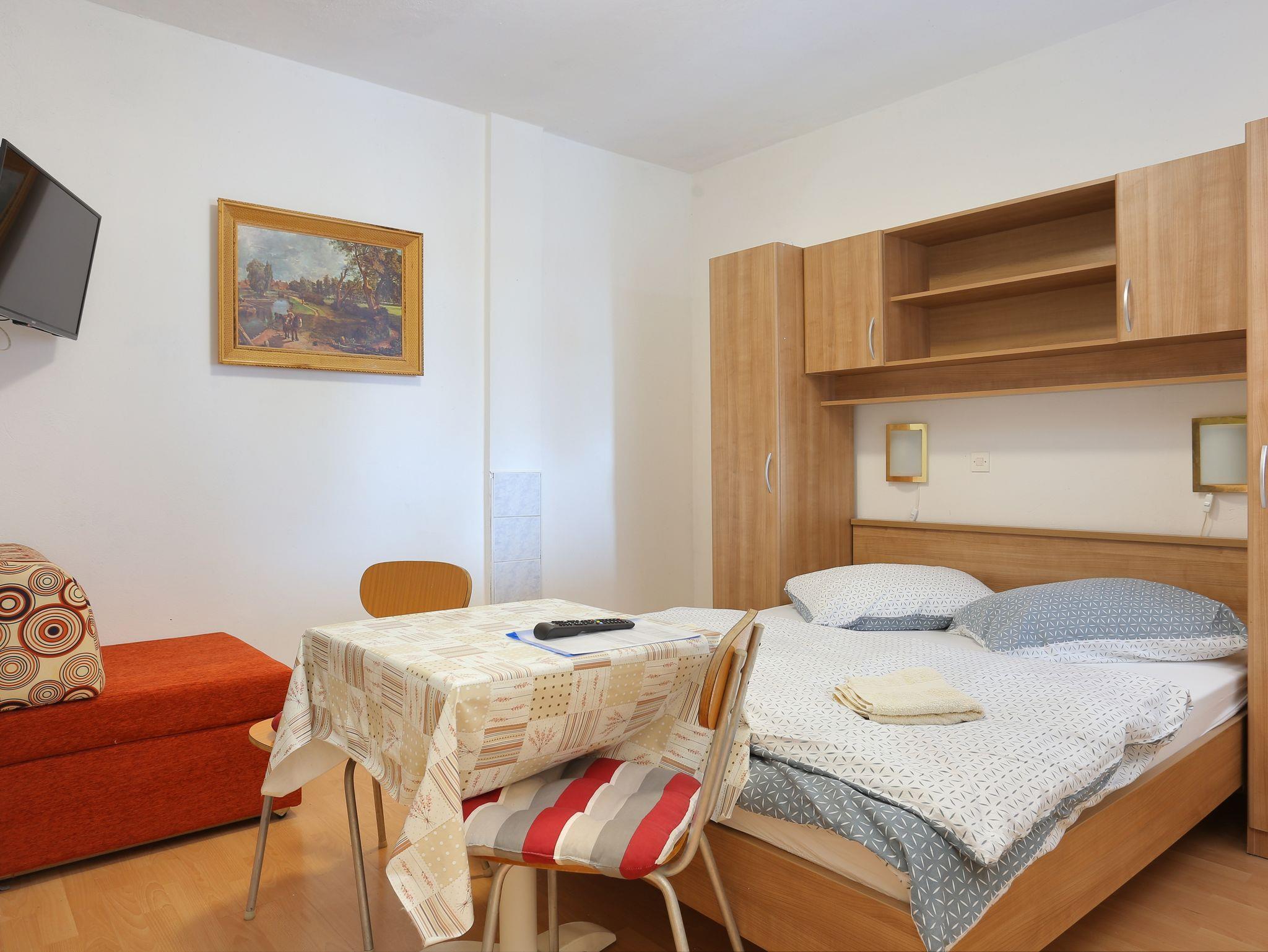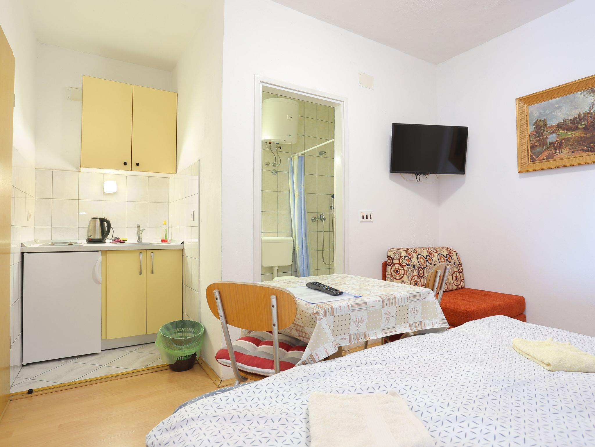Studio bietet Platz für 2 Gäste. Die Betten sind in Schlafzimmern, die es 1 gibt, innerhalb einer Gesamtfläche von 17m2, angeordnet. Die Gäste haben eine eigene Terrasse zur Verfügung, auf der sie in warmen Sommernächten genießen können. Das Studio-Apartment bietet Meerblick. Unterkunftseinheit hat Räume, die von dem Rest der Einheit abgetrennt werden. IM PREIS INBEGRIFFEN: Kurtaxe, Endreinigung, Klimatisierung, Parkplatz, Internet. VERBINDLICHE ZUSÄTZLICHE KOSTEN: Aufzahlung für Kurzaufenthalte (prozentualer Zuschlag pro Nächtigungsanzahl: 30% - 1, 20% - 2, 10% - 3). Die Verfügbarkeit zusätzlicher Dienstleistungen in Ihrem reservierten Termin und die Preise derselben (falls nicht aufgeführt) müssen im Voraus überprüft werden. Zusätzliche Dienstleistungen die in der Zahlungsaufforderung nicht aufgeführt sind werden direkt beim Vermieter bezahlt, angenommen der Gast nutzt auch diese. Ermäßigung auf den Grundpreis: Gratistag 14=13 (bei einem Aufenthalt von 14 Tagen oder mehr erhalten Sie einen Gratistag für den Aufenthalt bis 31.12.26).