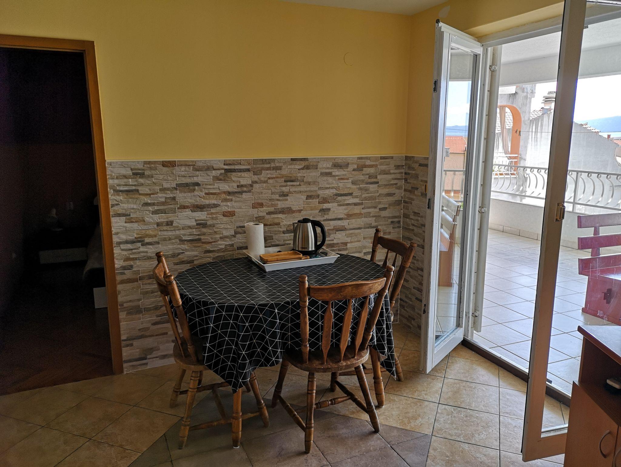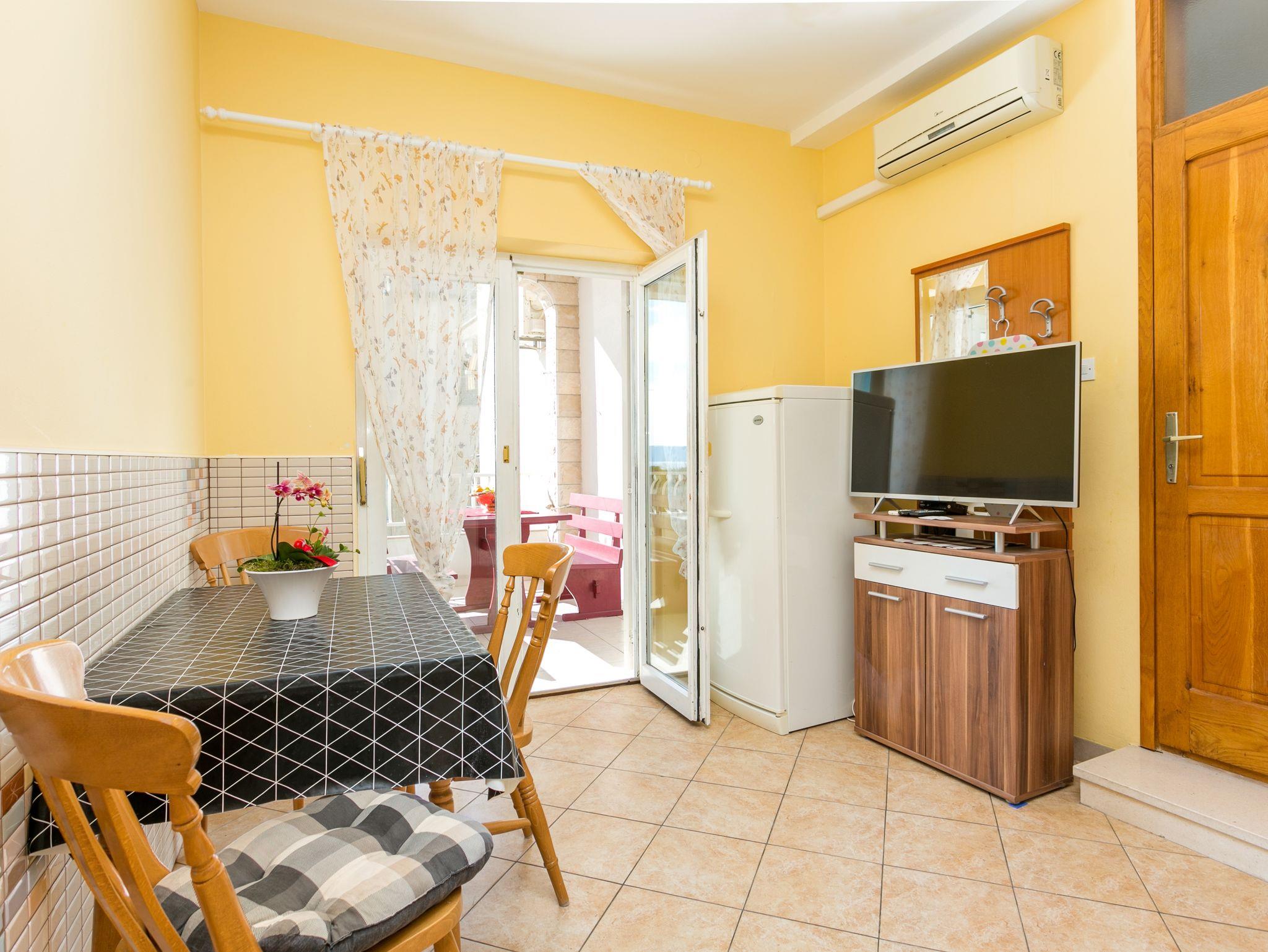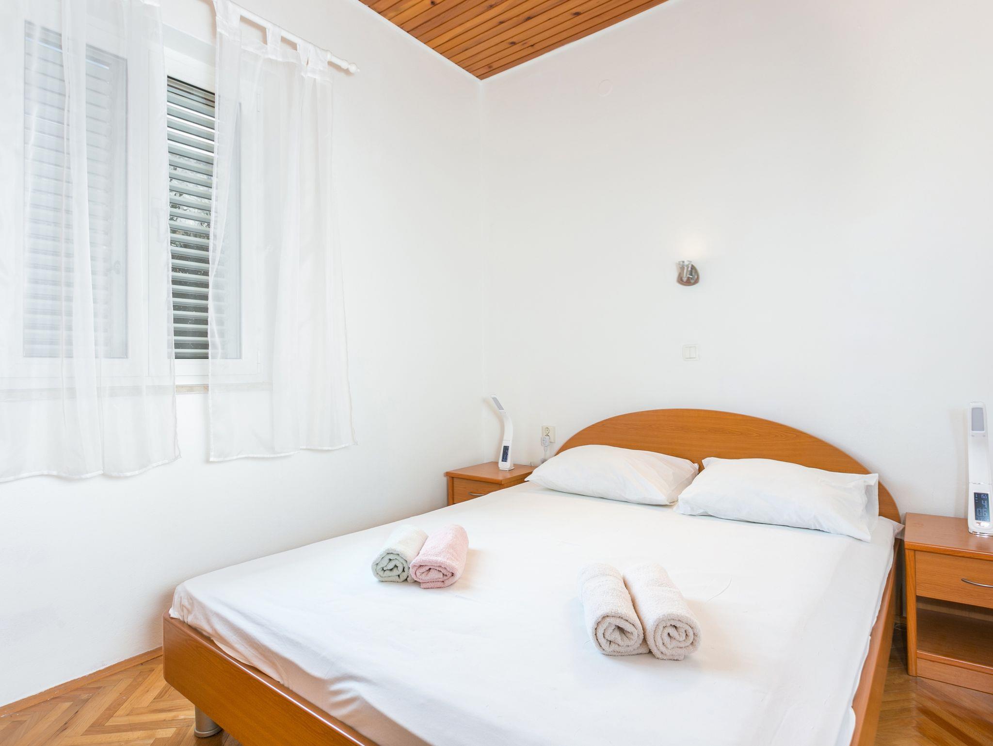 Ferienwohnung bietet Platz für 4 Gäste. Die Betten sind in Schlafzimmern, die es 2 gibt, innerhalb einer Gesamtfläche von 41m2, angeordnet. Die Gäste haben eine eigene Terrasse zur Verfügung, auf der sie in warmen Sommernächten genießen können. Das Apartment bietet Meerblick. Es ist erlaubt, Speisen auf dem Gemeinschafts-Grill vorzubereiten. IM PREIS INBEGRIFFEN: Kurtaxe, Endreinigung, Klimatisierung, Parkplatz, Internet, Bügeleisen, Bügelbrett, Föhn. VERBINDLICHE ZUSÄTZLICHE KOSTEN: Aufzahlung für Kurzaufenthalte (prozentualer Zuschlag pro Nächtigungsanzahl: 30% - 1, 20% - 2, 10% - 3). Die Verfügbarkeit zusätzlicher Dienstleistungen in Ihrem reservierten Termin und die Preise derselben (falls nicht aufgeführt) müssen im Voraus überprüft werden. Zusätzliche Dienstleistungen die in der Zahlungsaufforderung nicht aufgeführt sind werden direkt beim Vermieter bezahlt, angenommen der Gast nutzt auch diese. Ermäßigung auf den Grundpreis: Gratistag 14=13 (bei einem Aufenthalt von 14 Tagen oder mehr erhalten Sie einen Gratistag für den Aufenthalt bis 31.12.26).