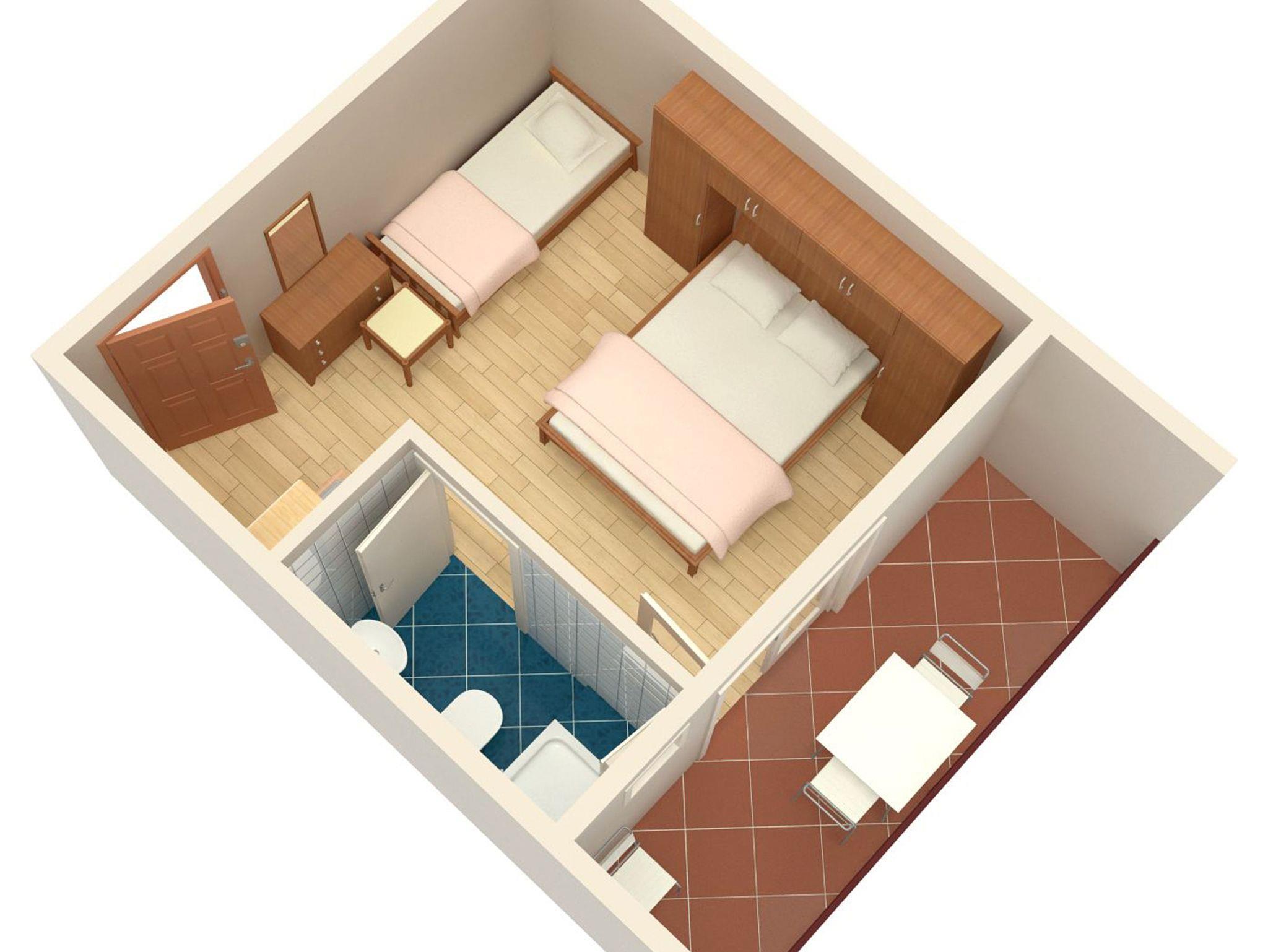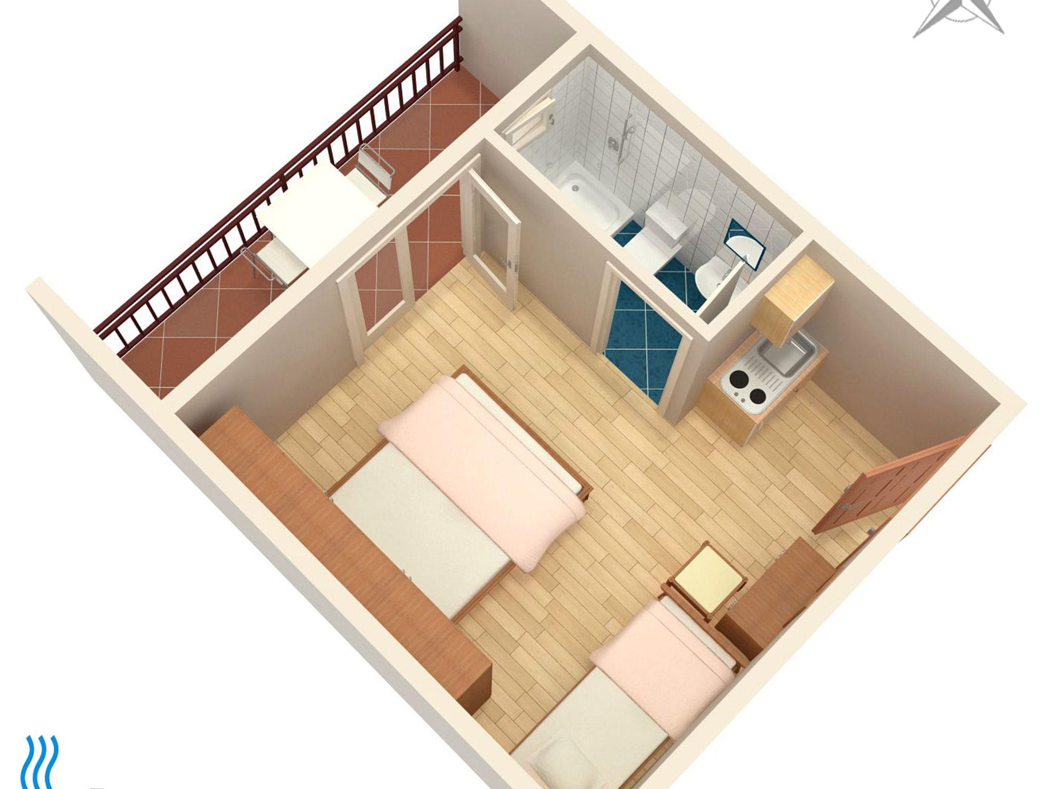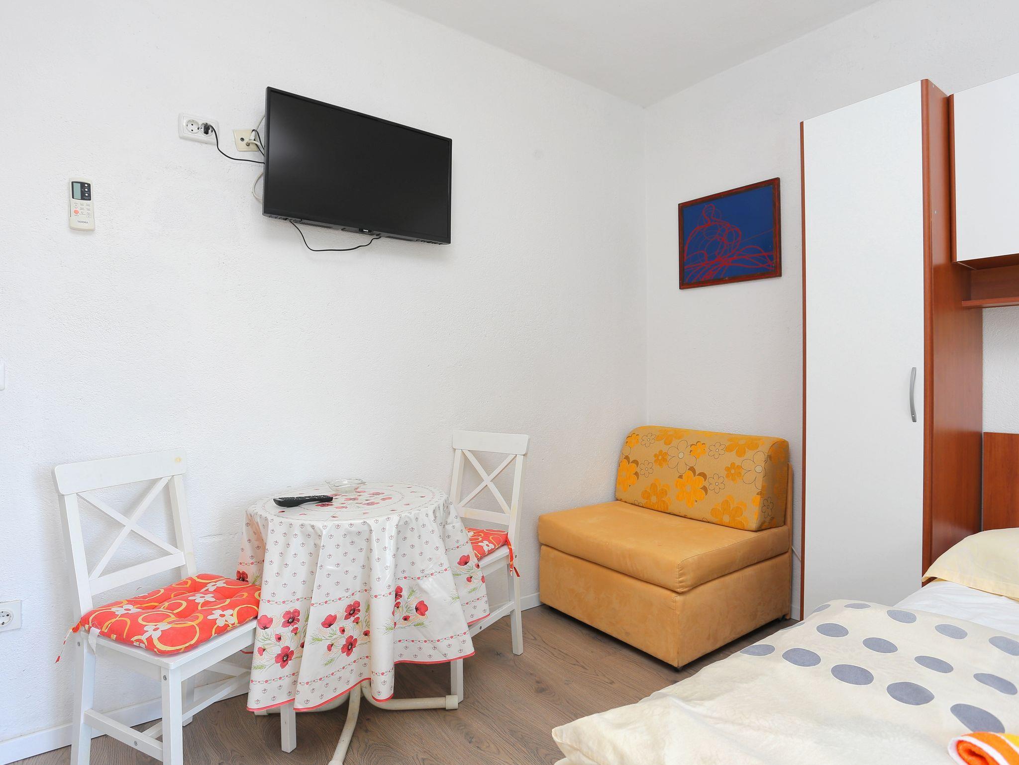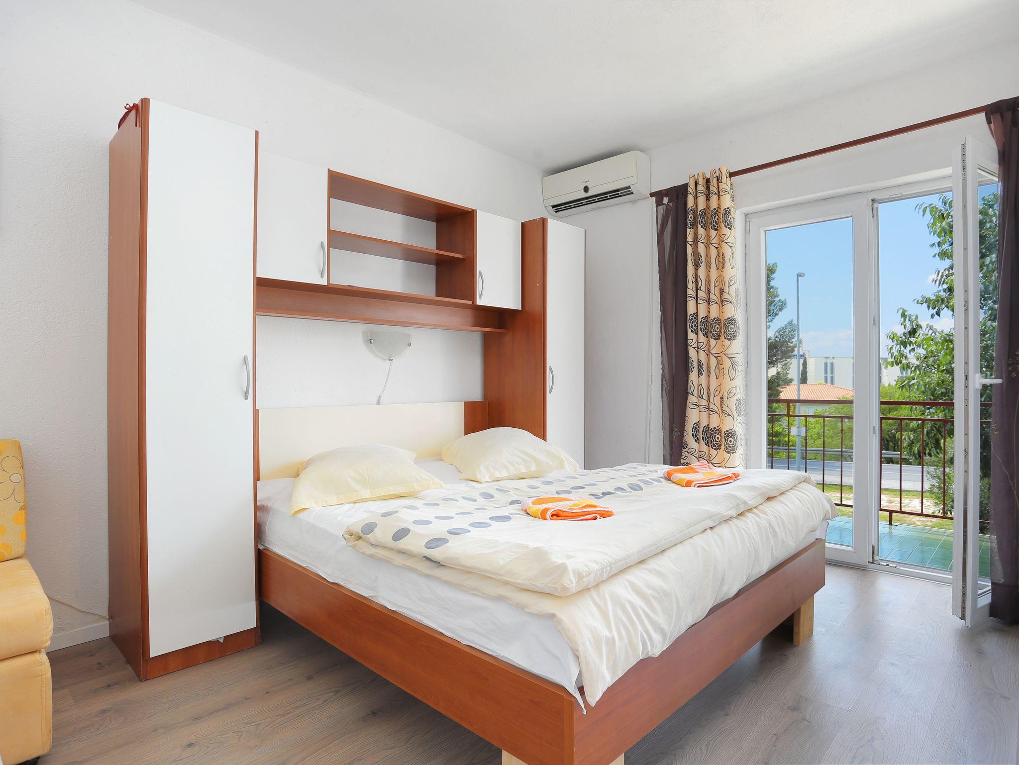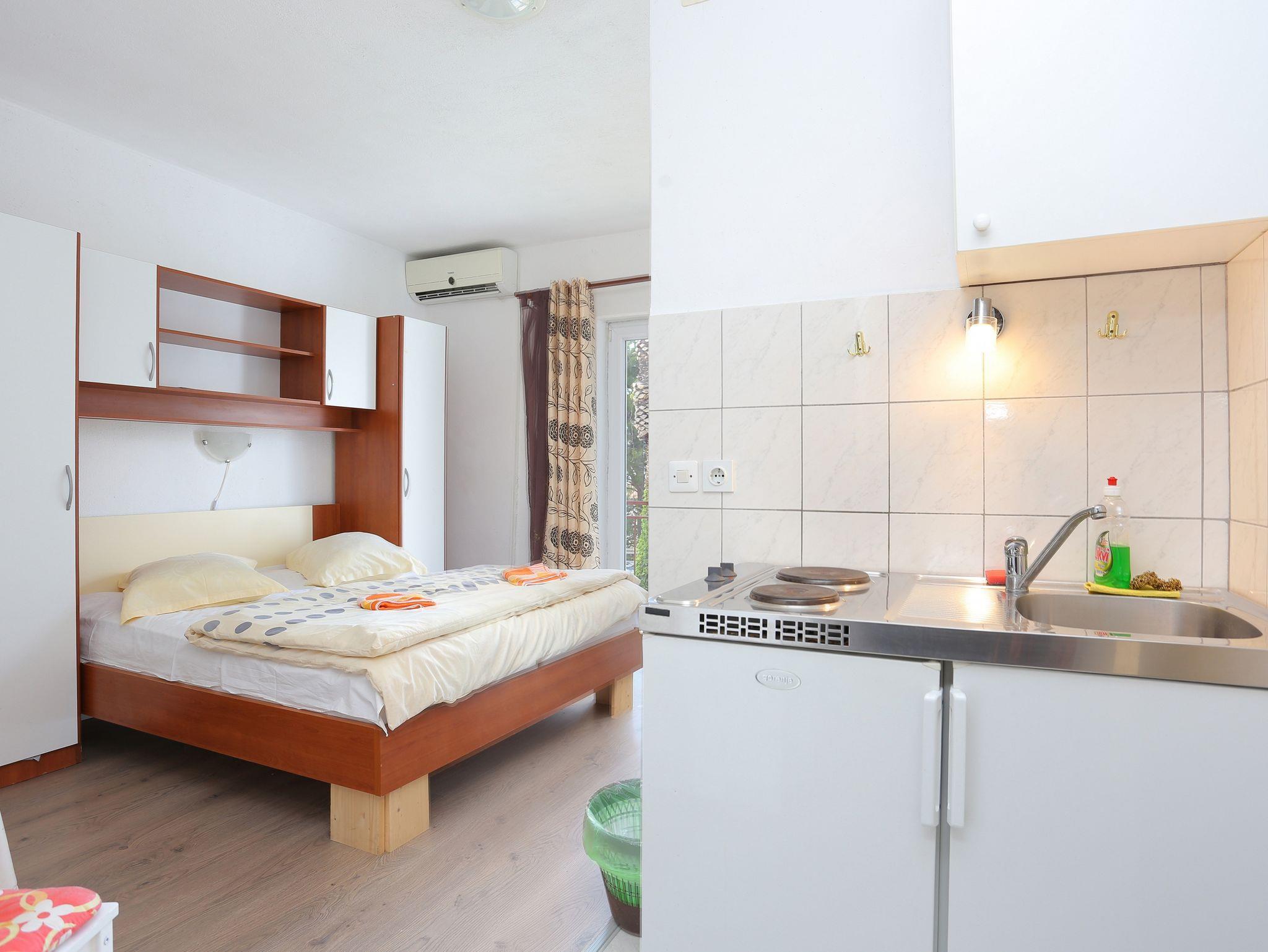 Studio bietet Platz für 3 Gäste. Die Betten sind in Schlafzimmern, die es 1 gibt, innerhalb einer Gesamtfläche von 18m2, angeordnet. Die Gäste haben einen eigenen Balkon zur Verfügung, auf der sie in warmen Sommernächten genießen können. Das Studio-Apartment bietet Meerblick. Es ist erlaubt, Speisen auf dem Gemeinschafts-Grill vorzubereiten. IM PREIS INBEGRIFFEN: Kurtaxe, Endreinigung, Klimatisierung, Parkplatz, Internet, Bügelbrett. VERBINDLICHE ZUSÄTZLICHE KOSTEN: Aufzahlung für Kurzaufenthalte (prozentualer Zuschlag pro Nächtigungsanzahl: 30% - 1, 20% - 2, 10% - 3). Die Verfügbarkeit zusätzlicher Dienstleistungen in Ihrem reservierten Termin und die Preise derselben (falls nicht aufgeführt) müssen im Voraus überprüft werden. Zusätzliche Dienstleistungen die in der Zahlungsaufforderung nicht aufgeführt sind werden direkt beim Vermieter bezahlt, angenommen der Gast nutzt auch diese. Ermäßigung auf den Grundpreis: Gratistag 14=13 (bei einem Aufenthalt von 14 Tagen oder mehr erhalten Sie einen Gratistag für den Aufenthalt bis 31.12.26).