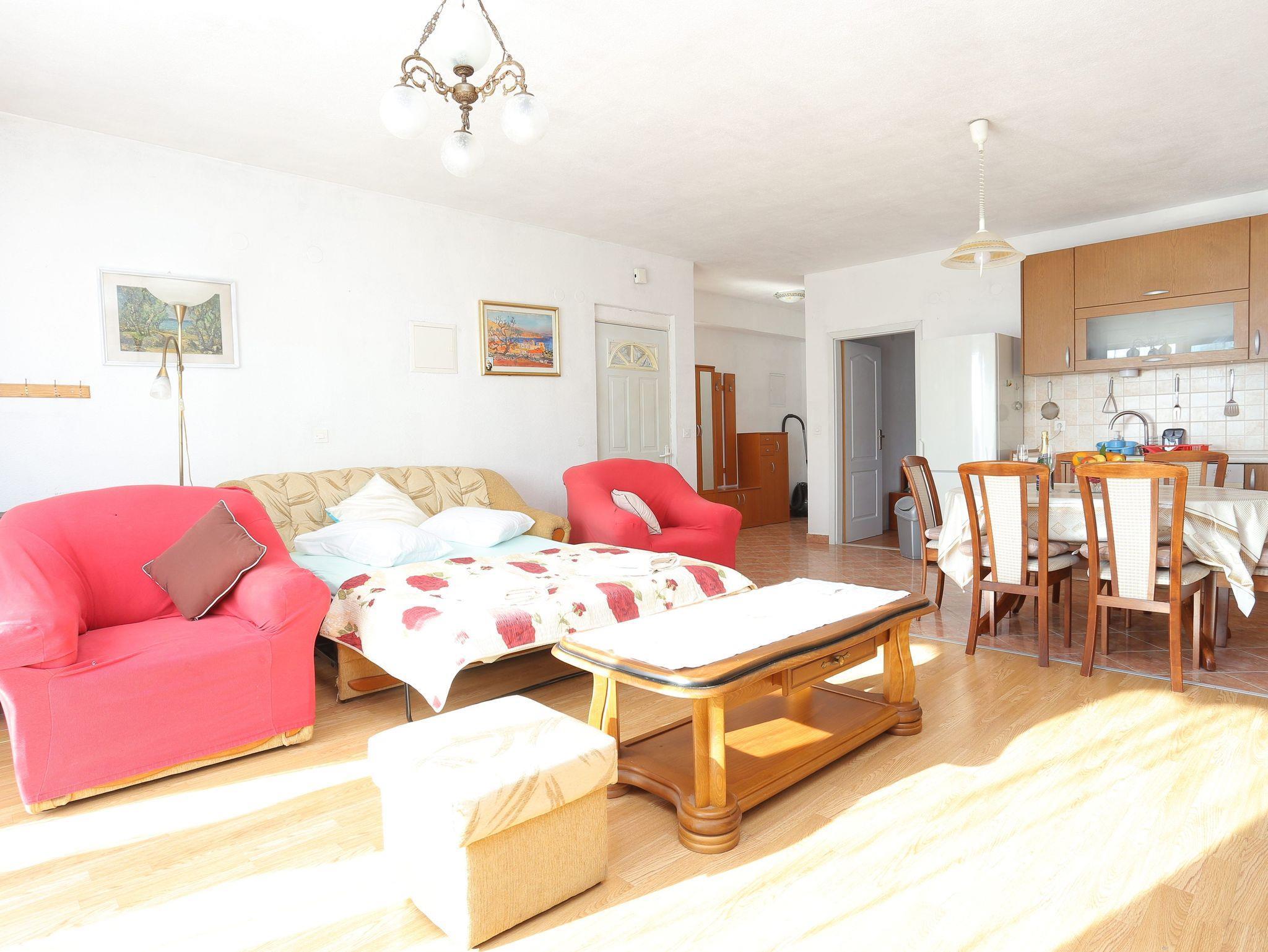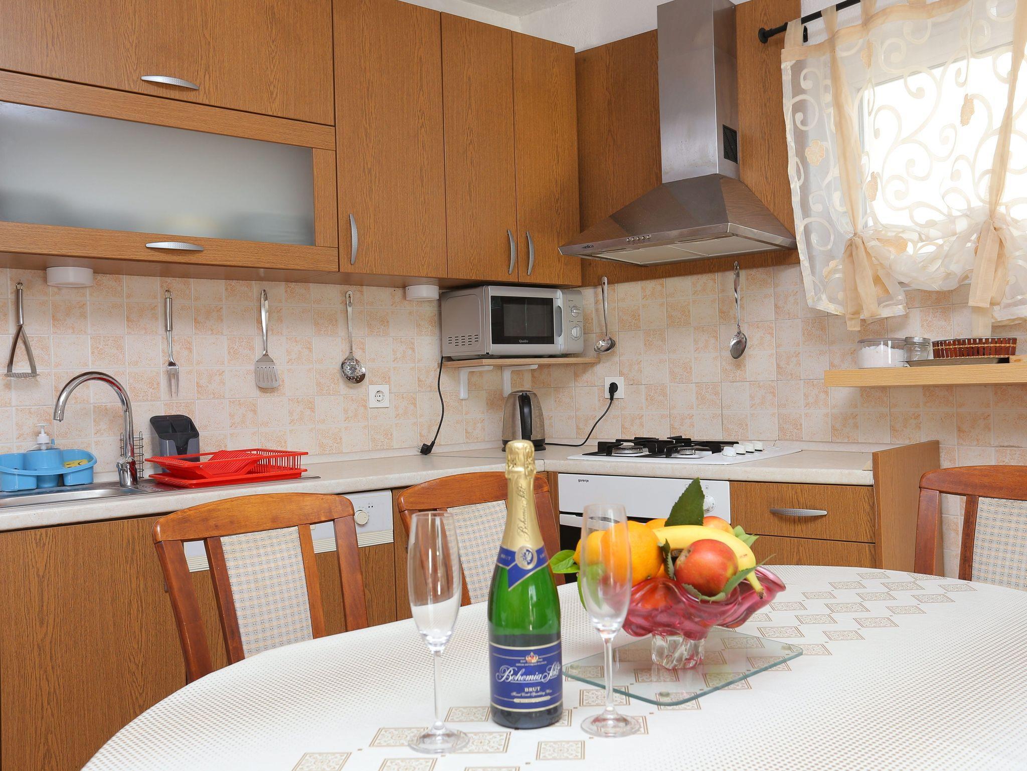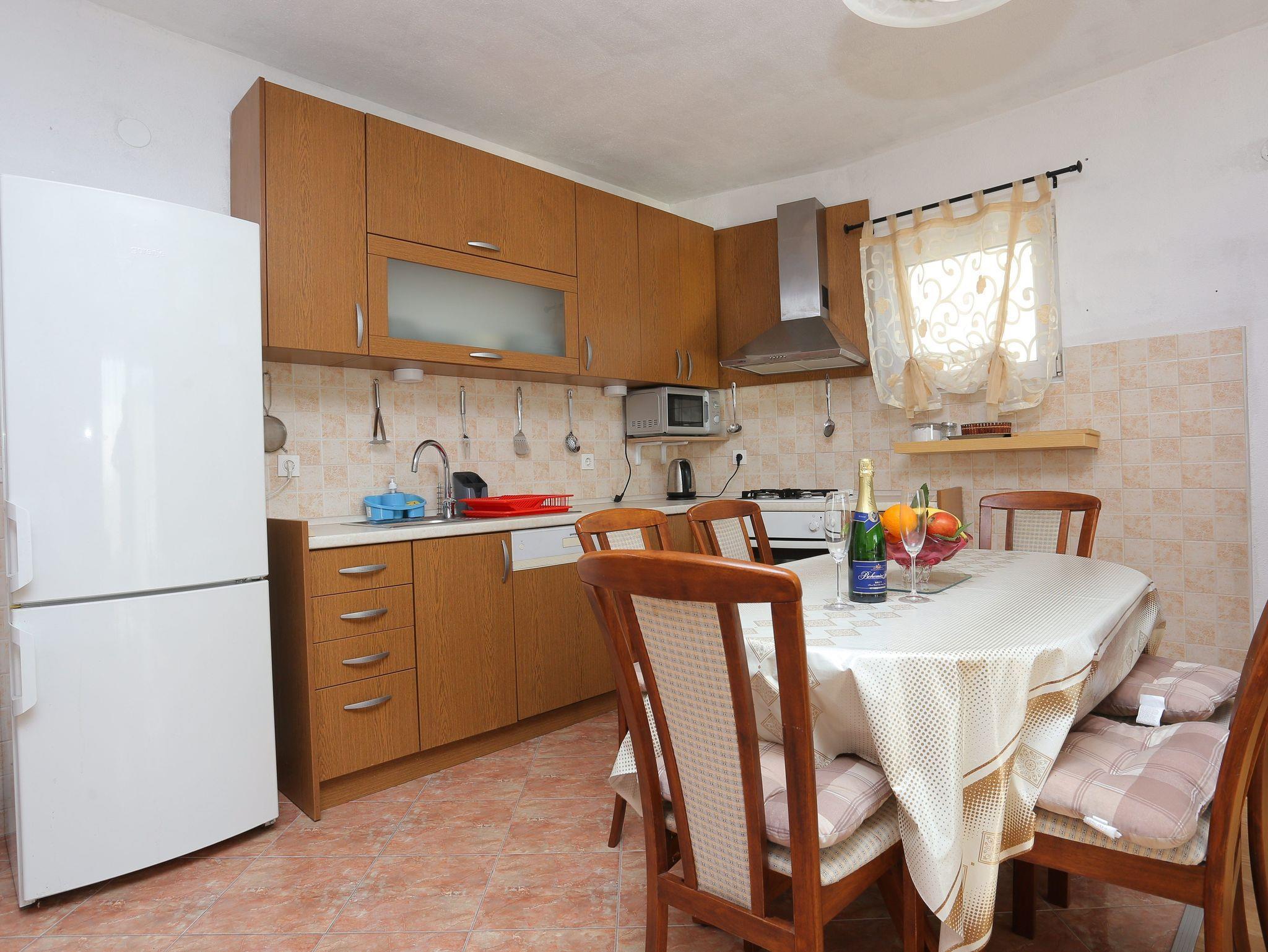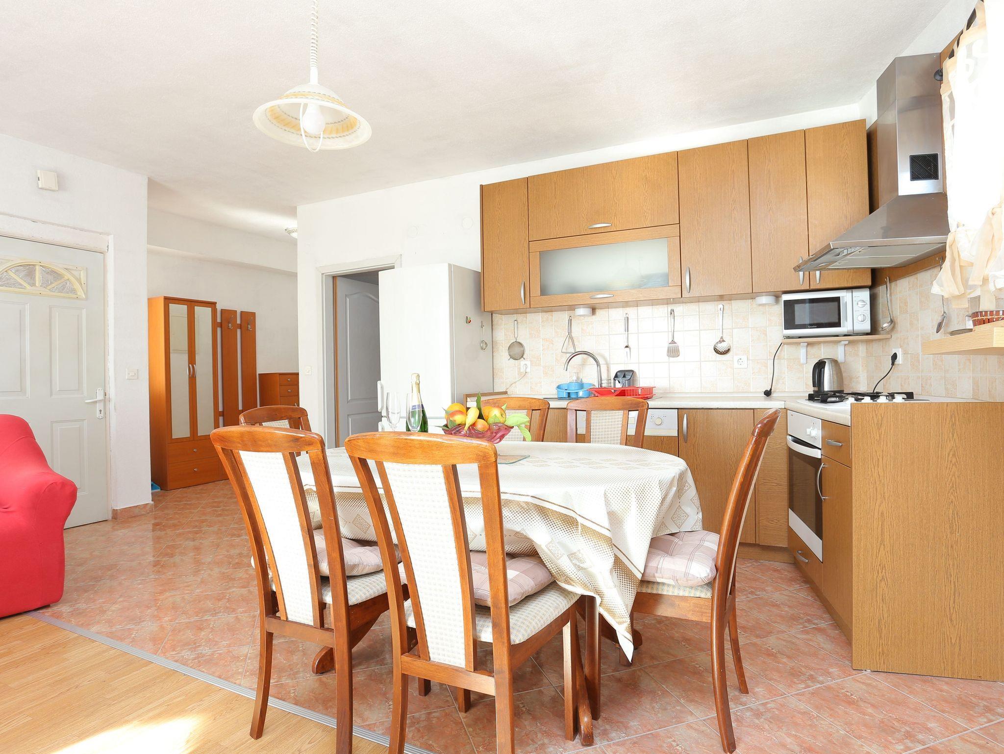 Ferienwohnung bietet Platz für 4 Gäste. Die Betten sind in Schlafzimmern, die es 1 gibt, und in Wohnzimmer, innerhalb einer Gesamtfläche von 68m2, angeordnet. Die Gäste haben einen eigenen Balkon zur Verfügung, auf der sie in warmen Sommernächten genießen können. Das Apartment bietet Meerblick. IM PREIS INBEGRIFFEN: Kurtaxe, Endreinigung, Klimatisierung, Parkplatz, Internet. VERBINDLICHE ZUSÄTZLICHE KOSTEN: Aufzahlung für Kurzaufenthalte (prozentualer Zuschlag pro Nächtigungsanzahl: 30% - 1, 20% - 2, 10% - 3). Die Verfügbarkeit zusätzlicher Dienstleistungen in Ihrem reservierten Termin und die Preise derselben (falls nicht aufgeführt) müssen im Voraus überprüft werden. Zusätzliche Dienstleistungen die in der Zahlungsaufforderung nicht aufgeführt sind werden direkt beim Vermieter bezahlt, angenommen der Gast nutzt auch diese. Ermäßigung auf den Grundpreis: Gratistag 14=13 (bei einem Aufenthalt von 14 Tagen oder mehr erhalten Sie einen Gratistag für den Aufenthalt bis 31.12.26).