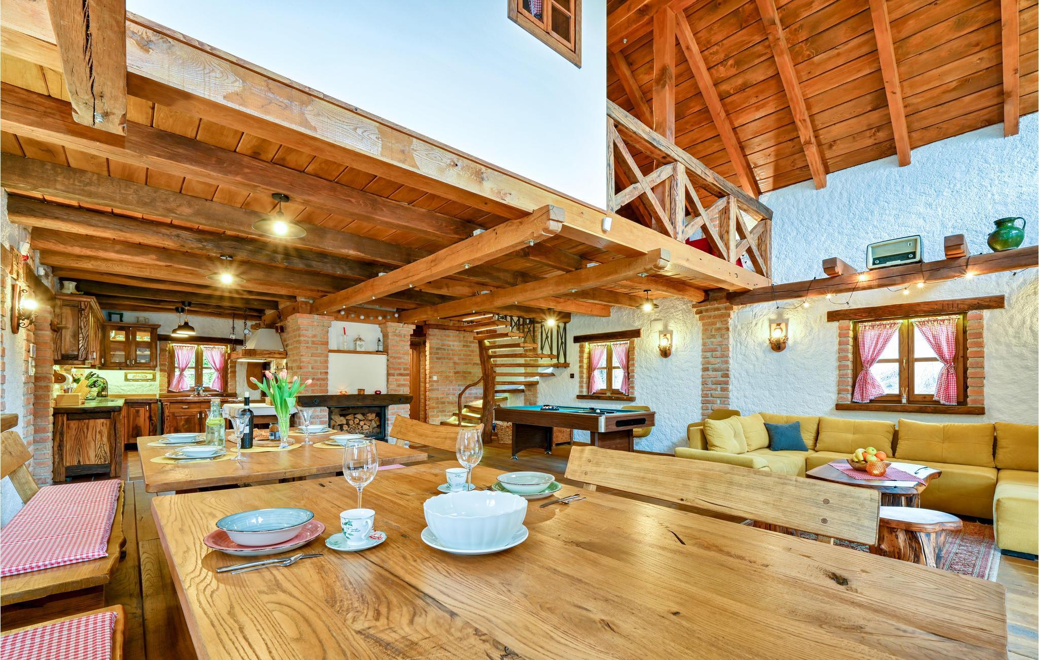 Dieses auffallende Ferienhaus bietet Ihnen eine einzigartige Aussicht auf die Landschaft, sowie ein Naturschutzgebiet direkt angrenzend. Zu empfehlen ist der Besuch der vielen Schlösser in der Umgebung, Weingüter, das Museum des prähistorischen Menschen von Krapina und für Wellnessliebhaber das Spa Tuhelj mit einem reichen Angebot an Spa-Behandlungen, Außen- und Innenpools und Aquapark für die Kleinsten. Ein Besuch in Zagreb und im Nationalpark Plitvicer Seen ist ebenfalls eine Überlegung wert.