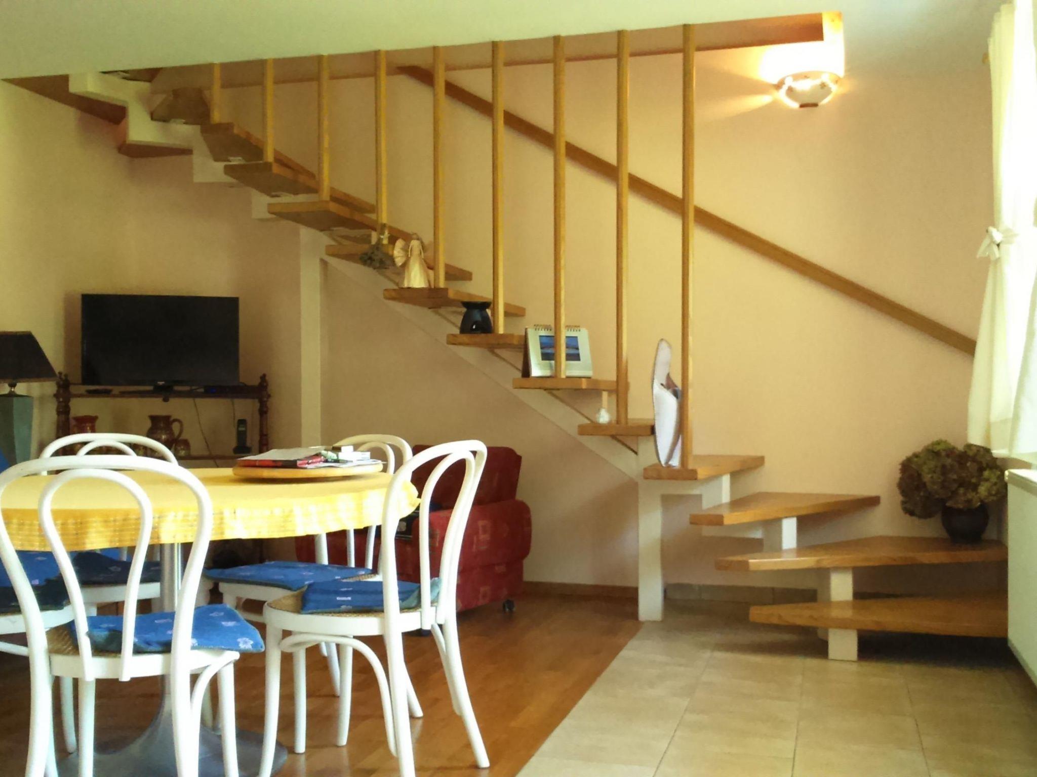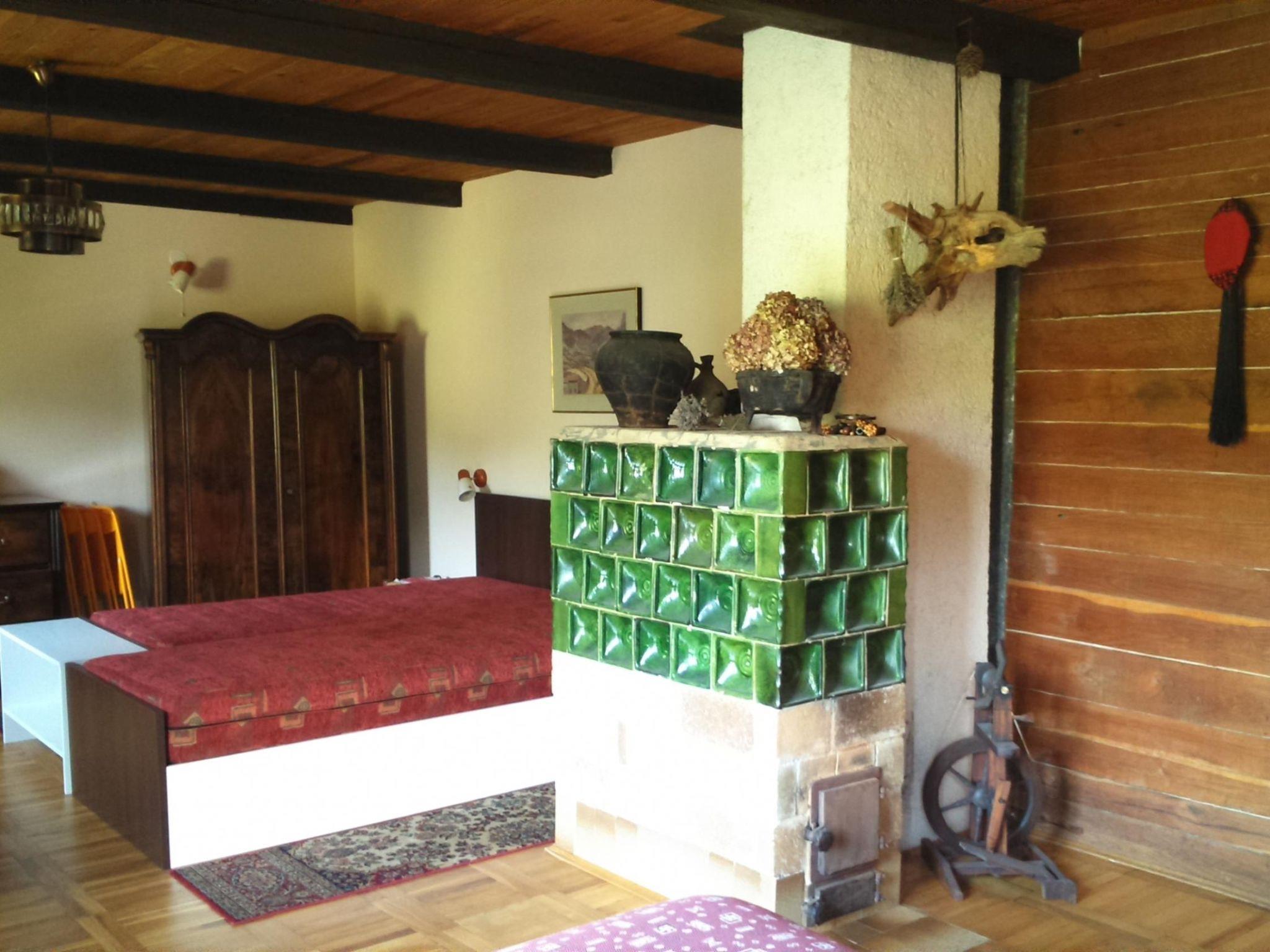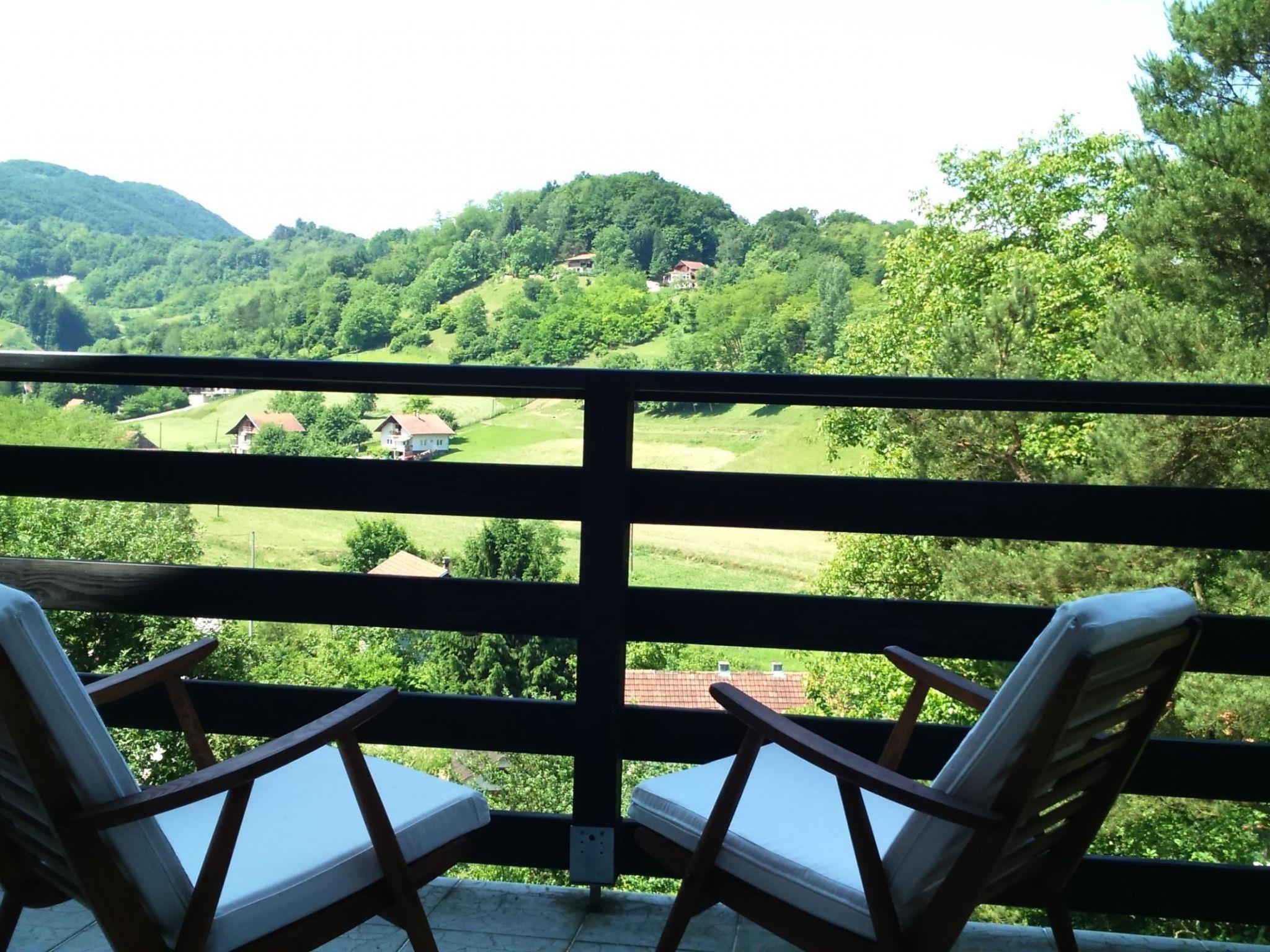 Dieses an einem Hang gebaute Haus befindet sich am Ortseingang von Tuhelj in ruhiger und friedlicher Lage. Von hier erreichen Sie mit dem Auto auch sehr gut die Ortschaften Zelenjak, Klanjec und Kumrovec. Das Haus ist so eingerichtet, dass es sowohl für Familien mit Kinder als auch für sportlich interessierte Gäste, die gerne Radtouren unternehmen, wandern und Ausflüge machen, sehr gut geeignet ist. Im 40m² großen Erdgeschoss befindet sich der Wohnbereich mit Esstisch und Kaminofen. Zur Unterhaltung stehen ein Flachbildfernseher und kostenloser Internetzugang (WLAN) bereit. Das Sofa ist 90cm breit und hier könnte sogar noch eine Person schlafen. Angrenzend kommen Sie in den Genuss einer voll ausgestatteten Küche mit Backofen, Herd, Toaster und Kühlschrank. Direkt daneben befindet sich ein Badezimmer mit Wanne und Waschmaschine. Die obere Etage ist ebenfalls 40m² groß. Sie bietet einen tollen und großen Balkon mit Blick auf das gesamte Tal und die umliegenden Berge. Das sehr geräumige Schlafzimmer bietet ein Doppelbett (1,80m breit) und eine Schlafcouch (1,00m breit). Auf Anfrage ist auch ein Kinderreisebett ohne Aufpreis möglich. Die antiken Möbel verleihen dem Haus seinen besonderen Charme.