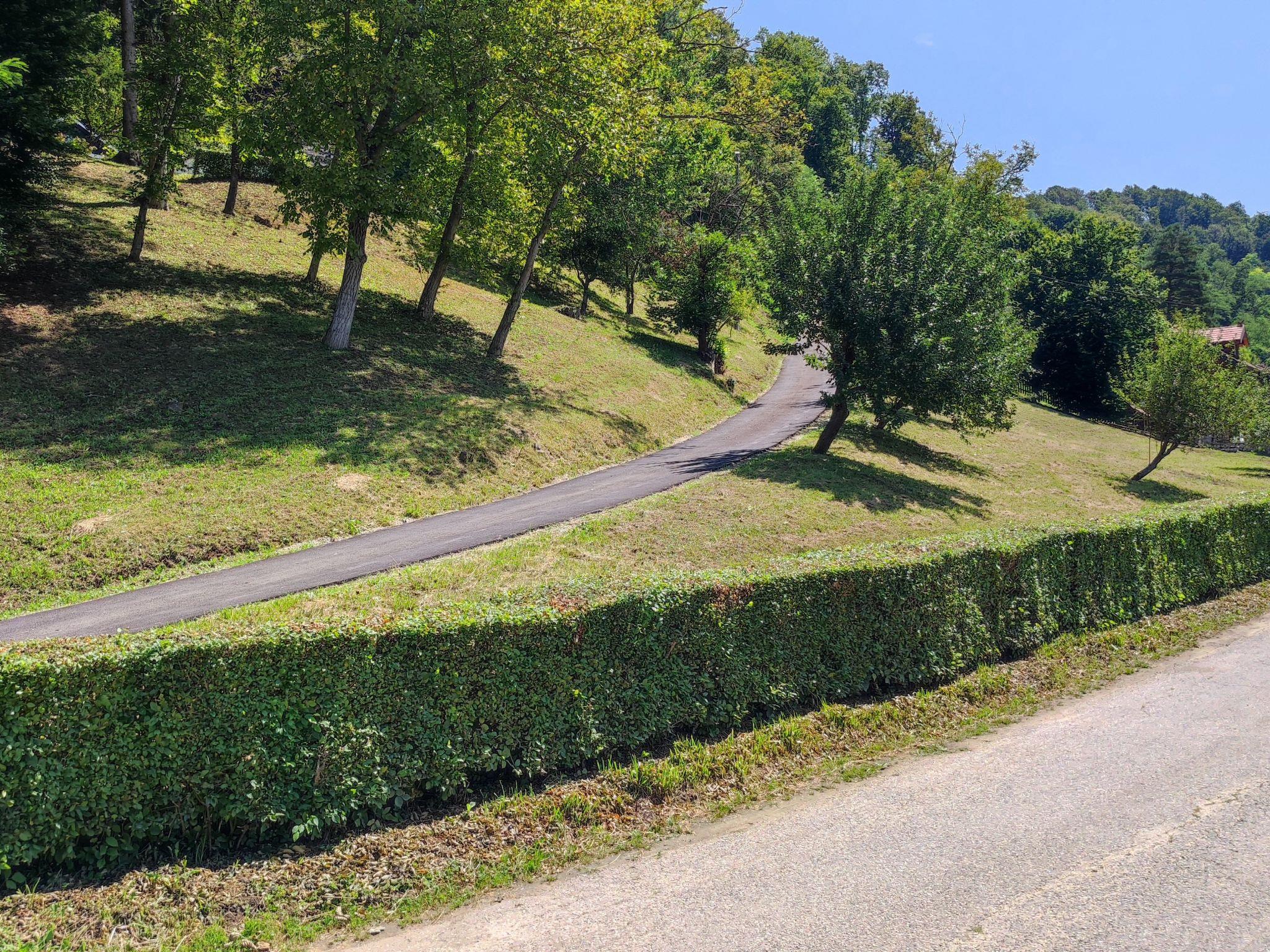 Da das Haus auf einem Hügel liegt, ist die Zufahrt dorthin recht steil. Die Schotterstraße ist ca. 300 Meter lang. Man kann das Haus auch über einen 100 Meter langen Schotterweg erreichen.
