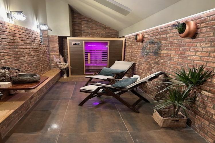 Parterre: (offene Küche(Wasserkocher, Toaster, Kochherd(4 Kochplatten, elektrisch), Kaffeemaschine, Backofen, Mikrowelle, Kühl-/Gefrierkombination), Wohn/Esszimmer(Doppelschlafcouch(140 x 200 cm), TV(Flatscreen), Esstisch(5 Personen), Kaminofen), Badezimmer(Dusche, Waschbecken, Toilette, Föhn), Heizung, Bügeleisen) In der 1. Etage: (Eingangshalle(Klimaanlage), Schlafzimmer(Doppelbett(160 x 200 cm)), Schlafzimmer(Einzelbett(90 x 200 cm), Balkon), Toilette(Waschbecken, Toilette)) Whirlwanne, Sauna(alleinige Nutzung), Terrasse(alleinige Nutzung, 50 m2), Garten(alleinige Nutzung, umzäunt, angelegt, illuminiert, 600 m2), Gartenmöbel, Grill, Parkplatz, Gartenlounge