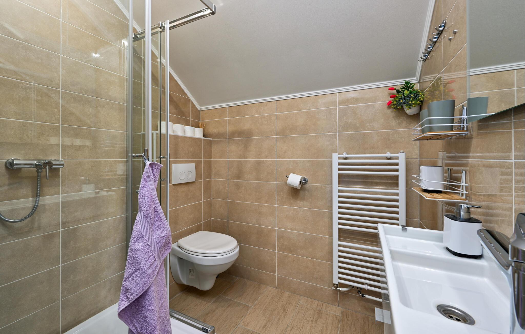 Badezimmer 4m2 (nr. 2) - WC. Warmes und kaltes Wasser. Dusche