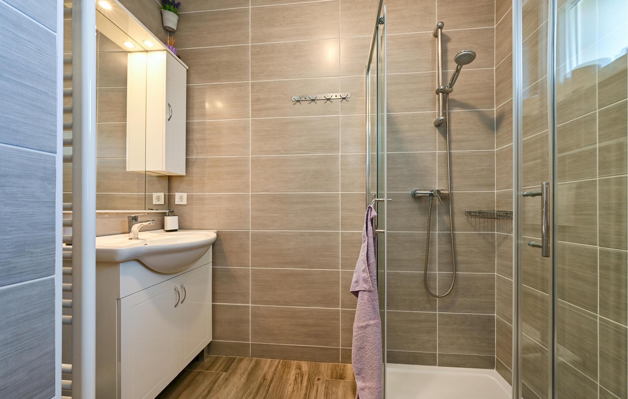 Badezimmer 4m2 (nr. 1) - WC. Warmes und kaltes Wasser. Dusche