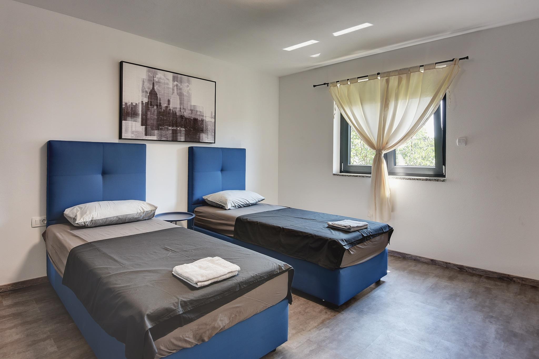 Die Villa Christine in Valbandon ist eine neu erbaute Villa mit einer Kapazität für zehn Personen. Diese raffinierte Villa wurde mit viel Liebe zum Detail eingerichtet und wird Sie sicherlich nicht enttäuschen. Es besteht aus 4 geräumigen Schlafzimmern im ersten Stock, während das Erdgeschoss ein Wohnzimmer mit Essbereich und eine voll ausgestattete moderne Küche hat. Der Zugang zum Pool ist vom Wohnzimmer oder der Küche aus möglich. Im Außenbereich befindet sich eine überdachte Terrasse mit Grill. Internetzugang und private Parkplätze sind vorhanden, während die schönen Strände von Valbnadon und Fažana nur wenige Kilometer entfernt sind. In der Villa Christine erwartet Sie alles, was Sie für einen unbeschwerten Urlaub brauchen. Buchen Sie also Ihren Aufenthalt so schnell wie möglich und gönnen Sie sich einen Urlaub im Süden Istriens!