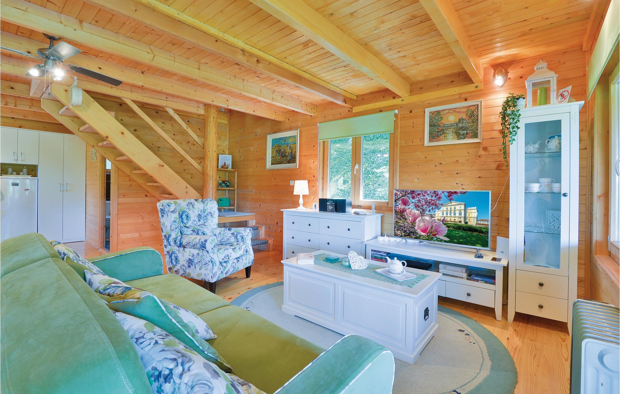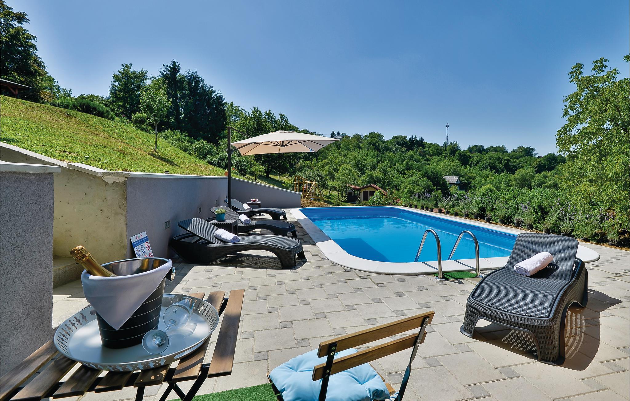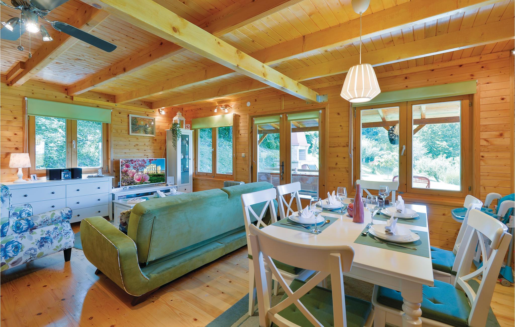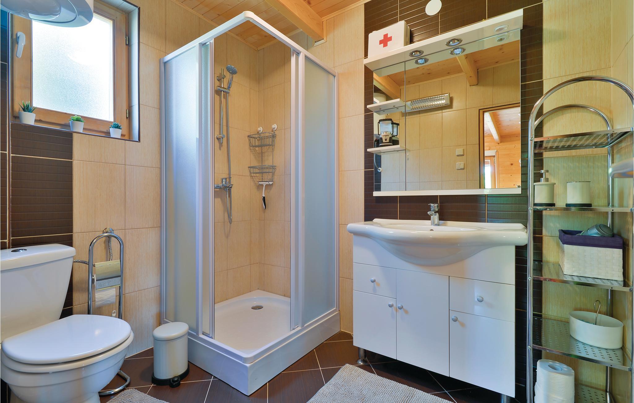 Etwas abseits von Varazdinske Toplice befindet sich dieses sorgfältig eingerichtete Ferienhaus aus Holz. Auf dem großen Grundstück befindet sich der Pool, der über einen Wasser-Geysir und eine UV-Wasseraufbereitung verfügt Sie finden hier ein reichhaltiges Spielangebot für Kinder und eine Terrasse vor, , auf der Sie im Schatten entspannen können. Das Innere des Hauses ist schön und modern eingerichtet und das Haus selbst ist mit allen Annehmlichkeiten ausgestattet, die für einen unbeschwerten und entspannten Urlaub benötigt werden. Das Erdgeschoss besteht aus einem Wohnzimmer mit Blick auf die Terrasse, Küche und Essbereich und einem Badezimmer. Im ersten Stock wo die Mindestdeckenhöhe ca. 60 cm beträgt, befinden sich zwei Schlafzimmer, eine Galerie und ein Badezimmer. Nur ca. einen Kilometer vom Haus entfernt befinden sich Varazdinske toplice, wo Sie die Vorteile des Thermalwassers, Wellnessangebote, Sportanlagen und Spaziergänge in der Natur genießen können. Während Ihres Aufenthaltes empfehlen wir Ihnen einen Besuch der schönen Stadt Varazdin, deren monumentales und künstlerisches Erbe mit ihrer üppigen Barockarchitektur sowie der Harmonie der Plätze und der einzigartigen romantischen Gassen Sie begeistern werden. Verpassen Sie nicht einen Besuch des Engelsmuseums.