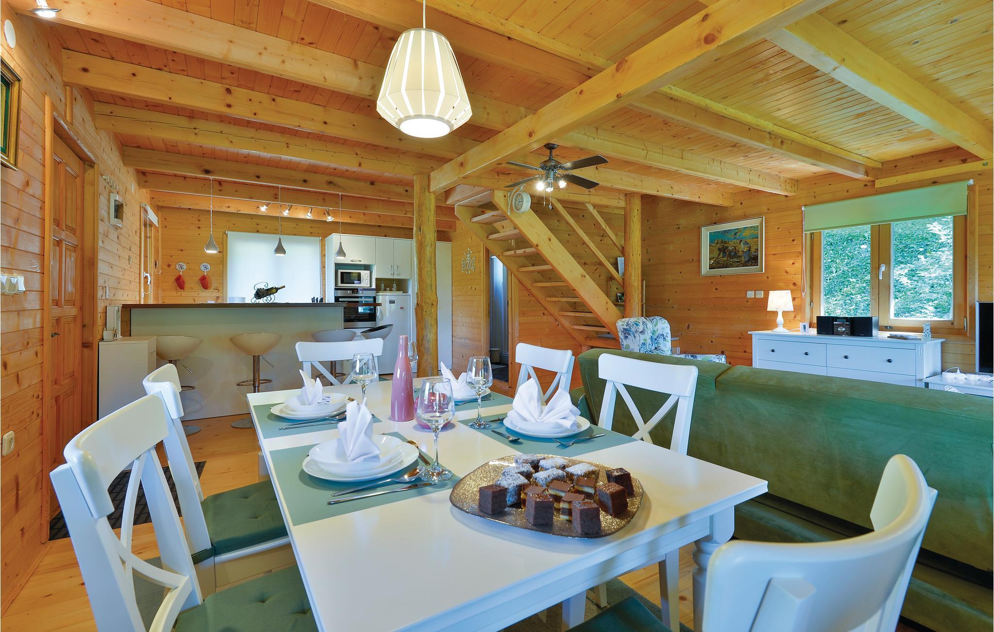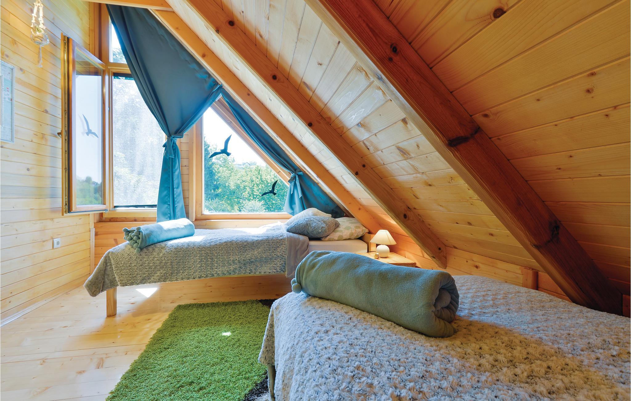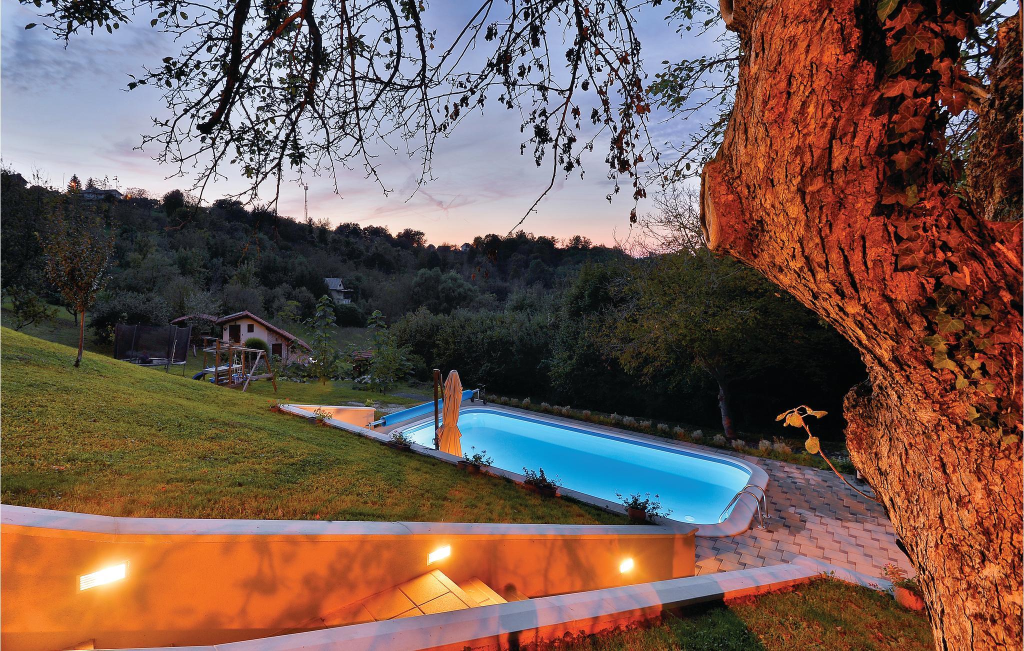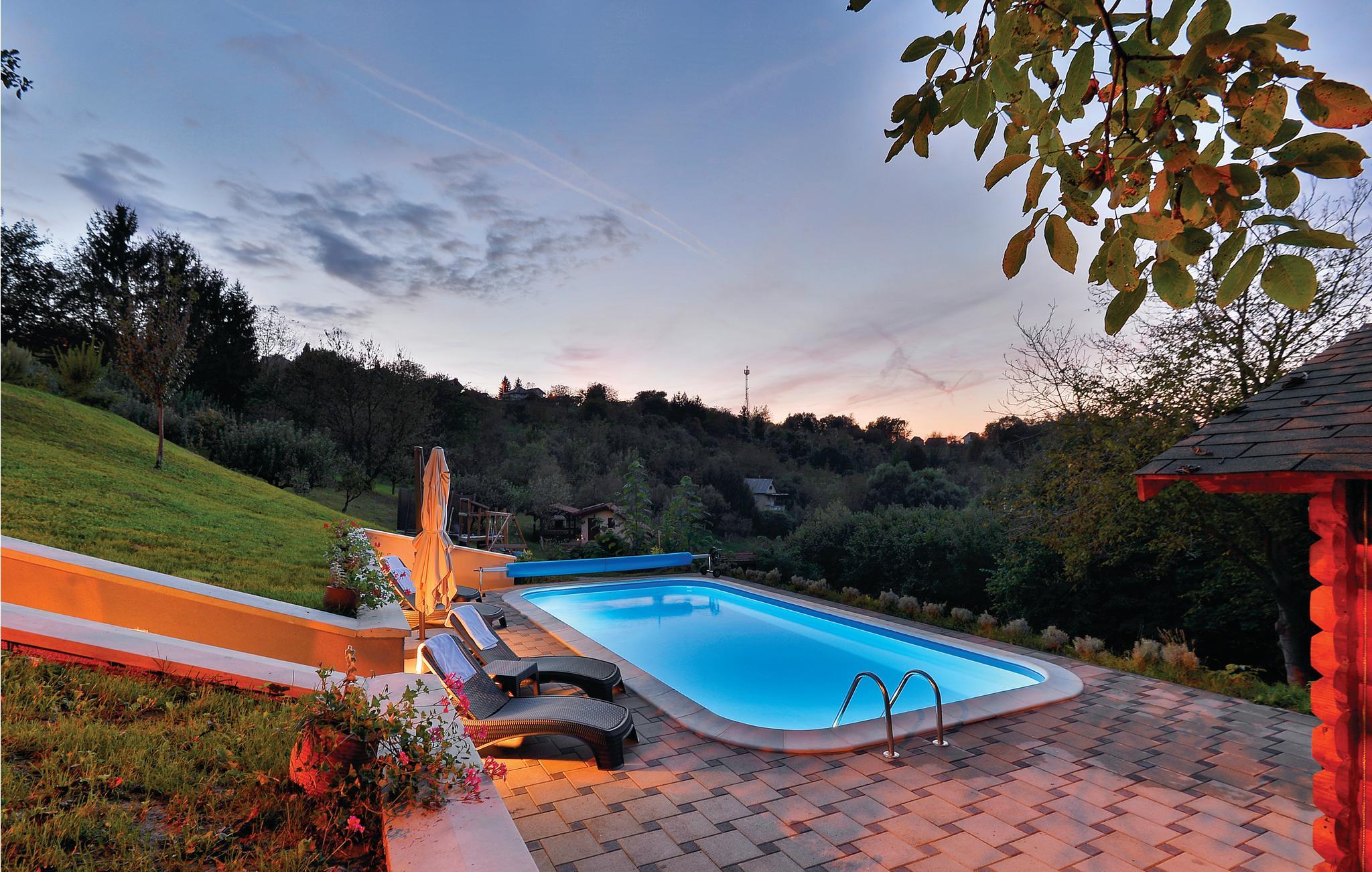 Etwas abseits von Varazdinske Toplice befindet sich dieses sorgfältig eingerichtete Ferienhaus aus Holz. Auf dem großen Grundstück befindet sich der Pool, der über einen Wasser-Geysir und eine UV-Wasseraufbereitung verfügt Sie finden hier ein reichhaltiges Spielangebot für Kinder und eine Terrasse vor, , auf der Sie im Schatten entspannen können. Das Innere des Hauses ist schön und modern eingerichtet und das Haus selbst ist mit allen Annehmlichkeiten ausgestattet, die für einen unbeschwerten und entspannten Urlaub benötigt werden. Das Erdgeschoss besteht aus einem Wohnzimmer mit Blick auf die Terrasse, Küche und Essbereich und einem Badezimmer. Im ersten Stock wo die Mindestdeckenhöhe ca. 60 cm beträgt, befinden sich zwei Schlafzimmer, eine Galerie und ein Badezimmer. Nur ca. einen Kilometer vom Haus entfernt befinden sich Varazdinske toplice, wo Sie die Vorteile des Thermalwassers, Wellnessangebote, Sportanlagen und Spaziergänge in der Natur genießen können. Während Ihres Aufenthaltes empfehlen wir Ihnen einen Besuch der schönen Stadt Varazdin, deren monumentales und künstlerisches Erbe mit ihrer üppigen Barockarchitektur sowie der Harmonie der Plätze und der einzigartigen romantischen Gassen Sie begeistern werden. Verpassen Sie nicht einen Besuch des Engelsmuseums.