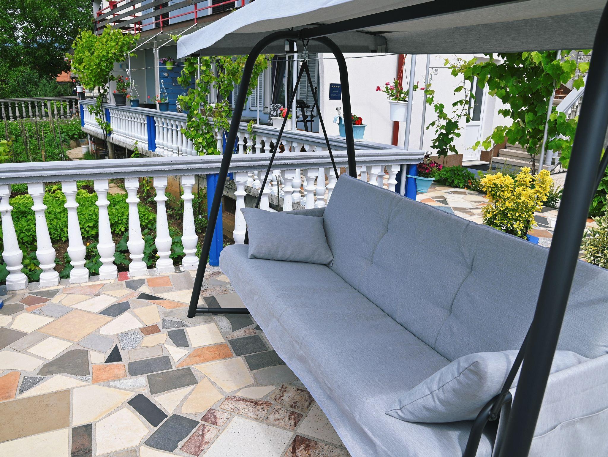 Umgebung des Objekts (Eingerichtet), Hof (400m2, Sitzbereich), Parkplatz (Anzahl der Parkplätze: 6, Entfernung vom Objekt: im Hof), Grill: gemeinsam, WiFi Internet, Föhn, Bügeleisen, Bügelbrett, Kinderbett