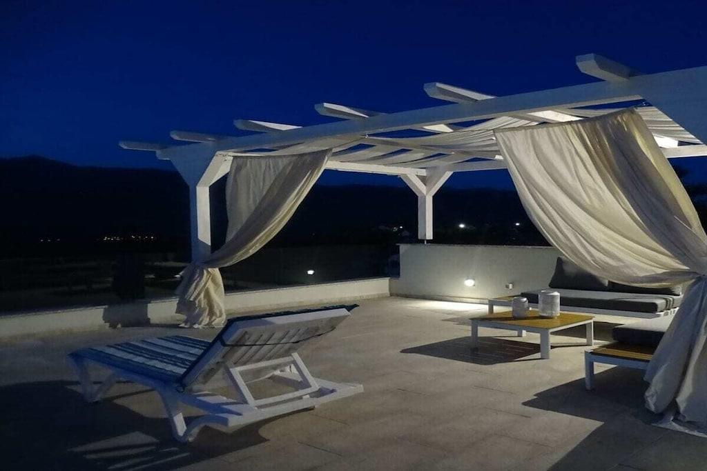 Dieses schöne Haus ist 50m² groß und besteht aus zwei Schlafzimmern, WC, Küche, Wohn- und Essbereich. Es ist im griechisch-mediterranen Stil mit hochwertigen Möbeln und einer voll ausgestatteten Küche mit hochwertigen Geräten eingerichtet. Es gibt einen großen Poolbereich und eine große Sonnenterrasse auf dem Dach des Hauses. Grill, kostenloser Parkplatz, WIFI für unsere Gäste zur Verfügung. Kleine Haustiere bis zu 4 kg sind gegen einen Aufpreis willkommen. Maximale Privatsphäre und ein ruhiger Urlaub sind garantiert.