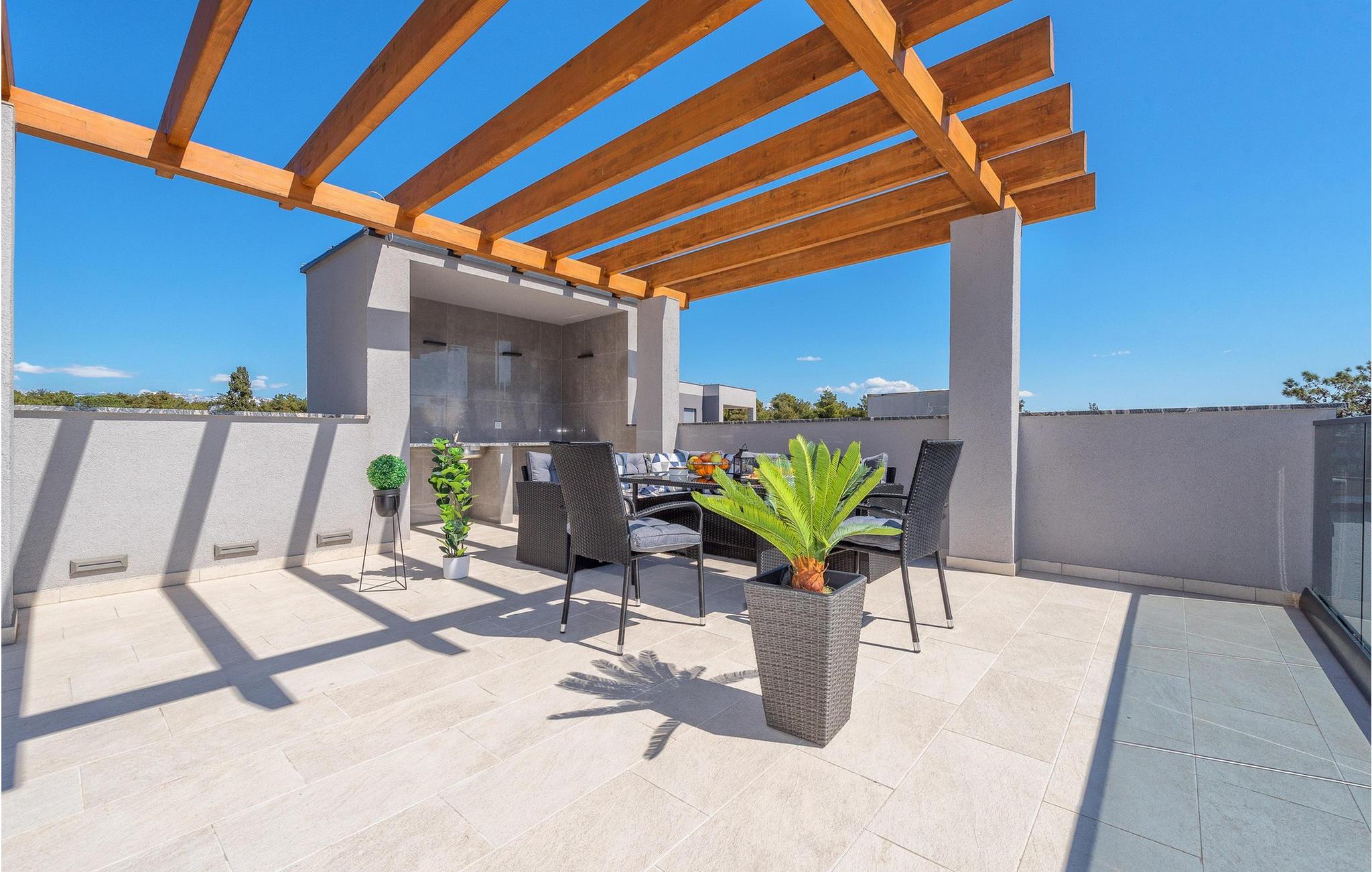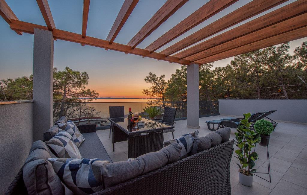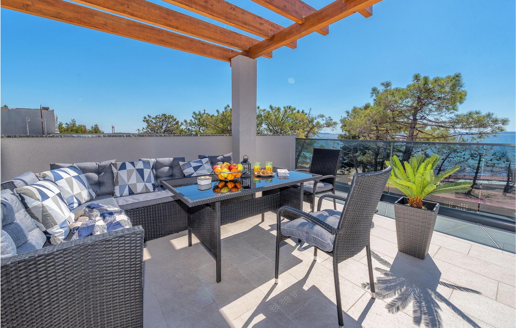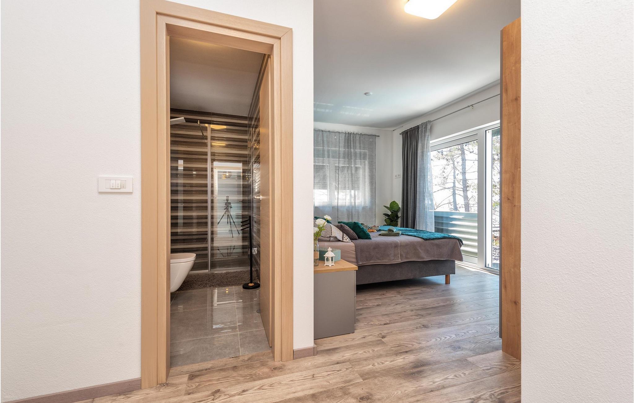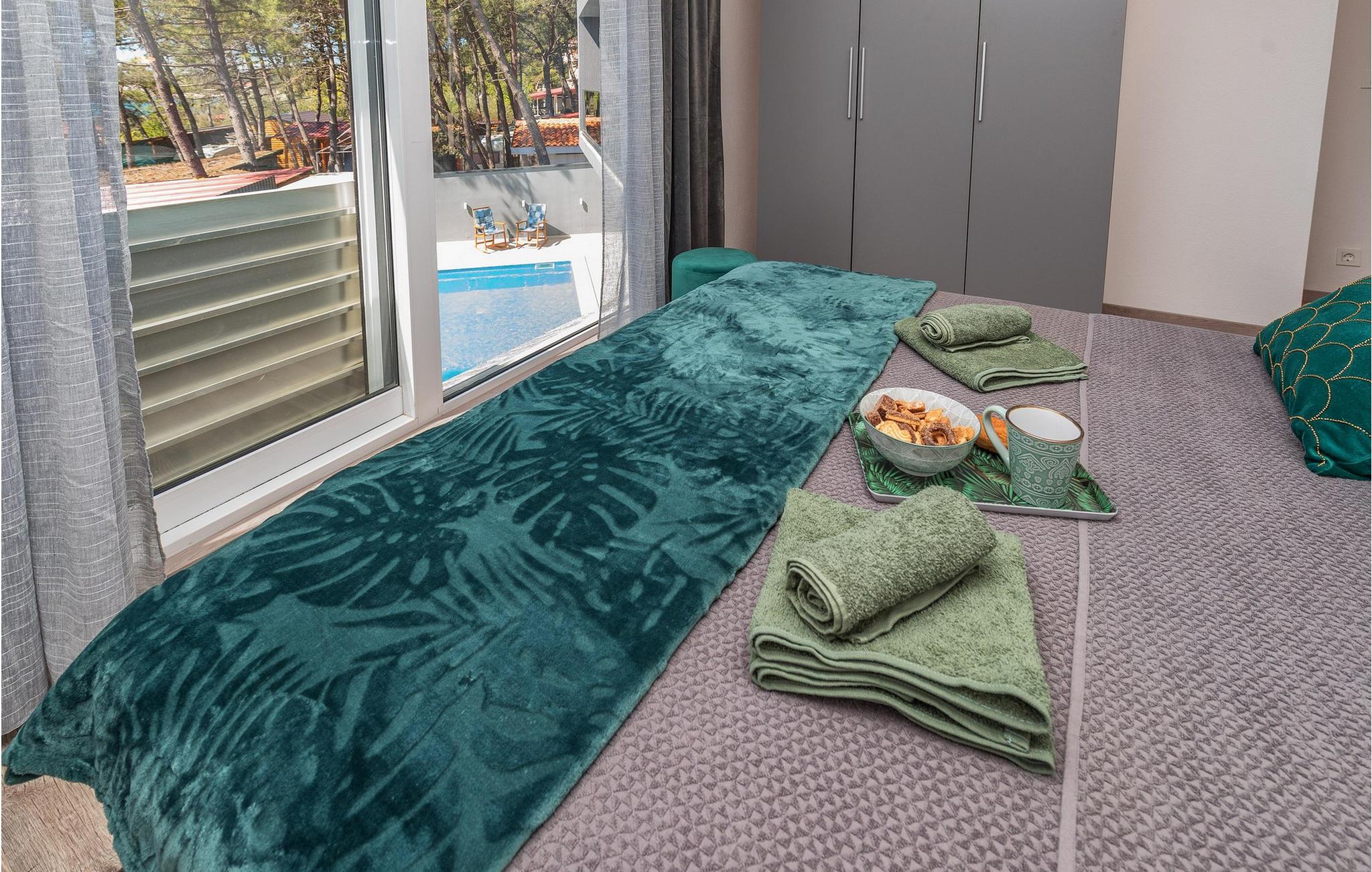 Im Außenbereich der Villa Karlo verschmelzen Entspannung und mediterranes Lebensgefühl zu einem einzigartigen Urlaubserlebnis. Ziehen Sie Ihre Bahnen im eleganten Pool, lassen Sie auf den bequemen Liegen die Sonne auf sich wirken oder genießen Sie erfrischende Drinks im Schatten des modernen Lounge-Bereichs. Auf der großzügigen Terrasse mit Blick auf das Meer erleben Sie unvergessliche Sonnenuntergänge, während Sie gemeinsam essen. Für die jüngsten Gäste sorgt der kleine Spielplatz im Garten für fröhliche Momente, während die Erwachsenen die Ruhe und Privatsphäre dieses stilvollen Rückzugsortes genießen.