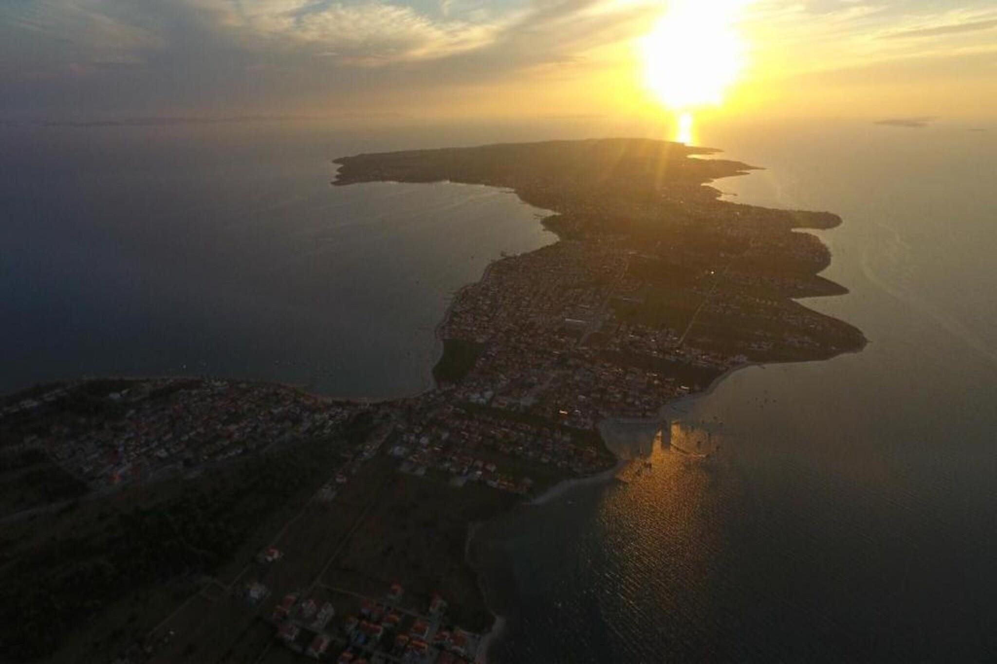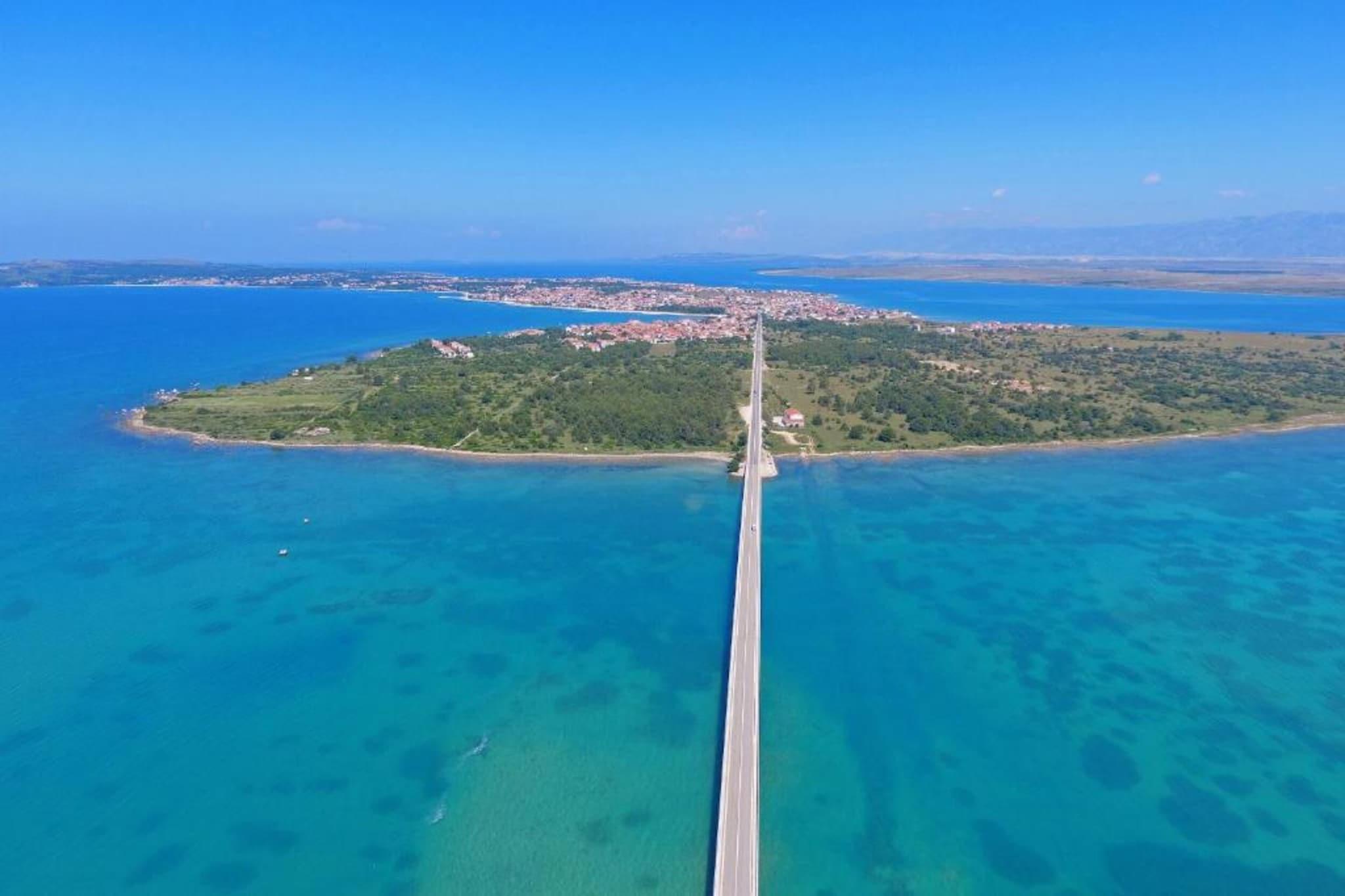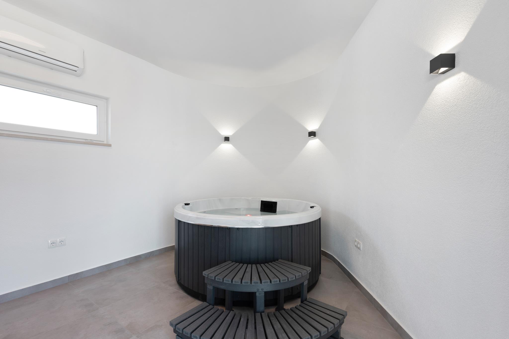 Inselkomfort nur wenige Schritte vom Meer entfernt Nur 450 Meter von der kristallklaren Adria entfernt, verspricht dieses charmante Ferienhaus für sechs Gäste einen erholsamen Rückzugsort mit kostenlosem WLAN und allem modernen Komfort. Das lebhafte Zentrum von Vir liegt nur 400 Meter entfernt. Geschäfte, Restaurants (250 Meter) und Lebensmittelgeschäfte (150 Meter) sind bequem zu Fuß erreichbar. Der Flughafen Zadar ist nur 37 Kilometer entfernt, sodass Ihre Anreise genauso angenehm ist wie Ihr Aufenthalt. Modernes Wohnen mit Entspannung pur Das Haus verfügt über einen gemütlichen, klimatisierten Wohnbereich mit Fernseher, eine voll ausgestattete offene Küche und zwei wunderschön gestaltete Schlafzimmer, jeweils mit eigenem Bad, Klimaanlage und Haartrockner. Genießen Sie das Whirlpoolbad im Innenbereich oder entspannen Sie in der Sauna. Draußen können Sie im privaten Pool schwimmen, Ihre Lieblingsgerichte auf dem Grill zubereiten oder mit Fahrrädern und Fitnessgeräten aktiv bleiben. Kinder werden das Trampolin und den Spielbereich lieben – Spaß für die ganze Familie. Entdecken, Essen & Genießen Verbringen Sie sonnige Tage am Strand Jadro, der zum Schwimmen und Sonnenbaden einlädt, oder besuchen Sie die Heilig-Kreuz-Kirche in Nin, um in die Geschichte einzutauchen. Probieren Sie lokale Spezialitäten wie Meeresfrüchte im Viranka oder mediterrane Spezialitäten in der Konoba Punta Duba. Ob Sie Ruhe oder Abenteuer suchen – dieses Küstenparadies bietet das Beste aus beiden Welten.