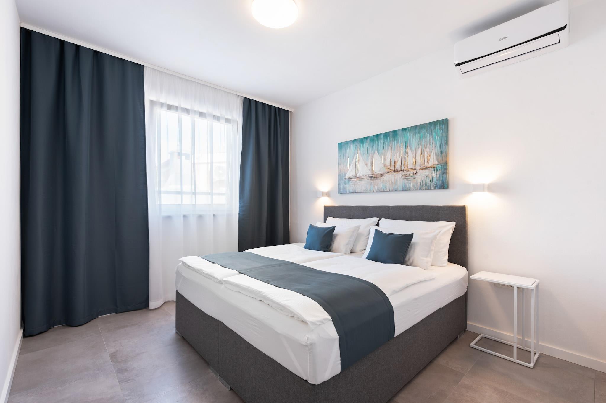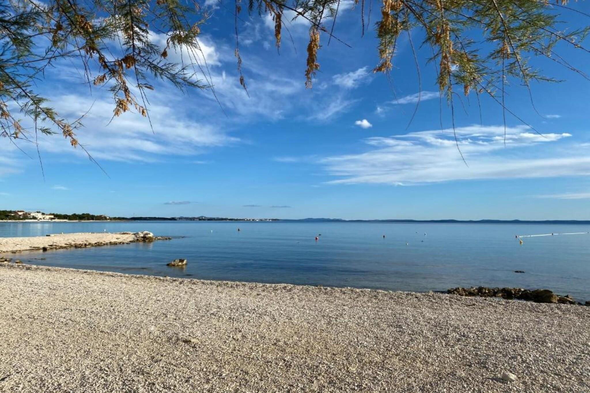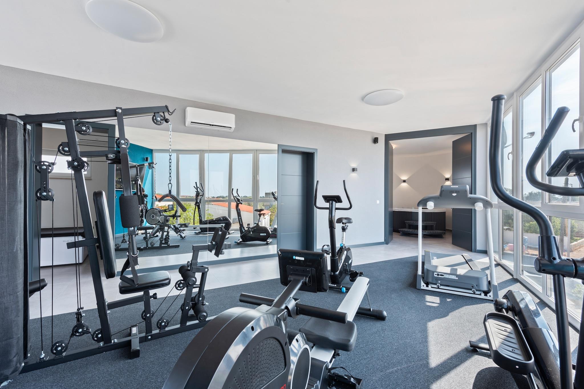 Inselkomfort nur wenige Schritte vom Meer entfernt Nur 450 Meter von der kristallklaren Adria entfernt, verspricht dieses charmante Ferienhaus für sechs Gäste einen erholsamen Rückzugsort mit kostenlosem WLAN und allem modernen Komfort. Das lebhafte Zentrum von Vir liegt nur 400 Meter entfernt. Geschäfte, Restaurants (250 Meter) und Lebensmittelgeschäfte (150 Meter) sind bequem zu Fuß erreichbar. Der Flughafen Zadar ist nur 37 Kilometer entfernt, sodass Ihre Anreise genauso angenehm ist wie Ihr Aufenthalt. Modernes Wohnen mit Entspannung pur Das Haus verfügt über einen gemütlichen, klimatisierten Wohnbereich mit Fernseher, eine voll ausgestattete offene Küche und zwei wunderschön gestaltete Schlafzimmer, jeweils mit eigenem Bad, Klimaanlage und Haartrockner. Genießen Sie das Whirlpoolbad im Innenbereich oder entspannen Sie in der Sauna. Draußen können Sie im privaten Pool schwimmen, Ihre Lieblingsgerichte auf dem Grill zubereiten oder mit Fahrrädern und Fitnessgeräten aktiv bleiben. Kinder werden das Trampolin und den Spielbereich lieben – Spaß für die ganze Familie. Entdecken, Essen & Genießen Verbringen Sie sonnige Tage am Strand Jadro, der zum Schwimmen und Sonnenbaden einlädt, oder besuchen Sie die Heilig-Kreuz-Kirche in Nin, um in die Geschichte einzutauchen. Probieren Sie lokale Spezialitäten wie Meeresfrüchte im Viranka oder mediterrane Spezialitäten in der Konoba Punta Duba. Ob Sie Ruhe oder Abenteuer suchen – dieses Küstenparadies bietet das Beste aus beiden Welten.