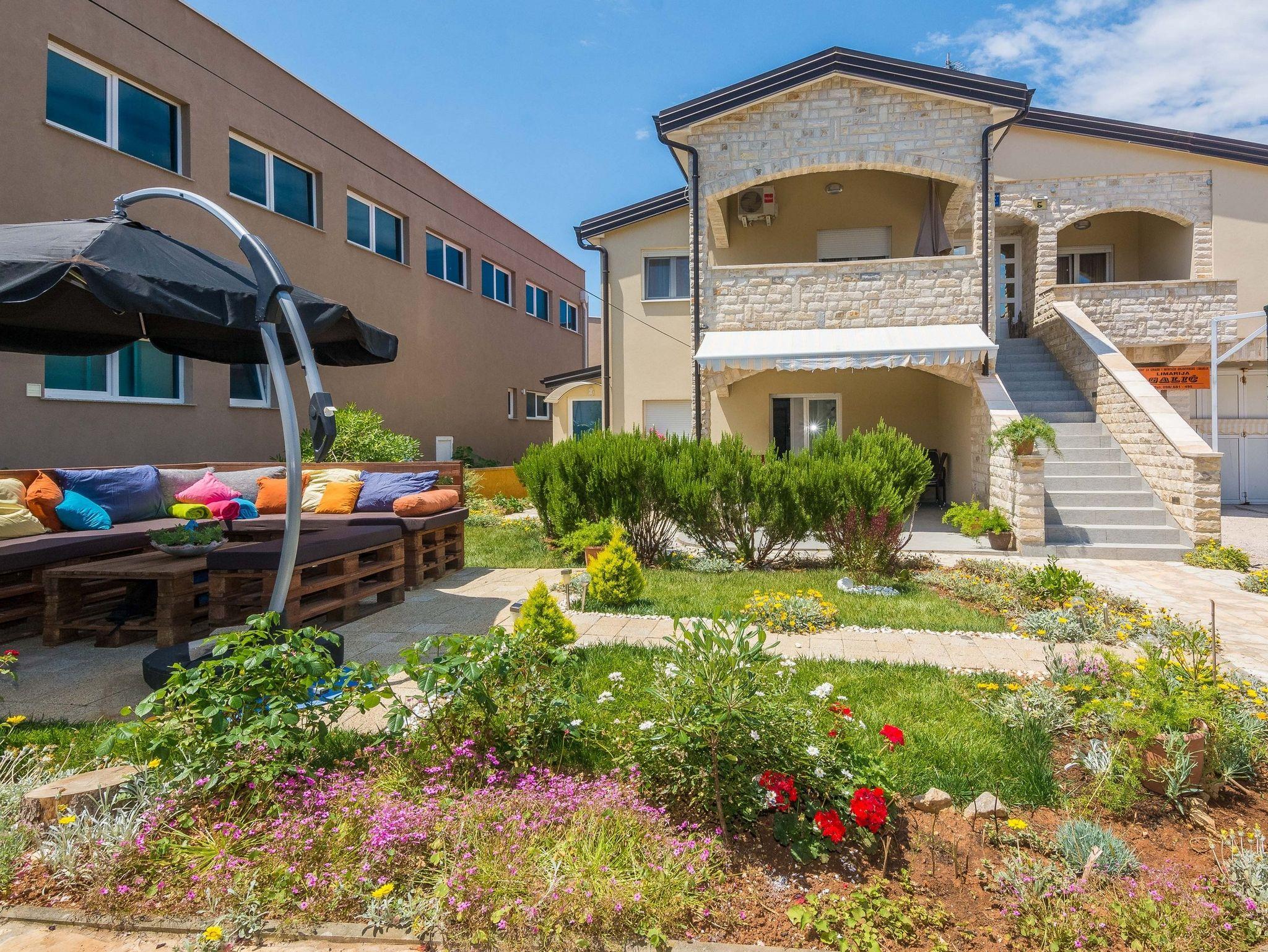 Ferienwohnung bietet Platz für 4 Gäste. Die Betten sind in Schlafzimmern, die es 1 gibt, und in Wohnzimmer und Esszimmer, innerhalb einer Gesamtfläche von 28m2, angeordnet. Die Gäste haben eine eigene Terrasse zur Verfügung, auf der sie in warmen Sommernächten genießen können. Es ist erlaubt, Speisen auf dem Gemeinschafts-Grill vorzubereiten. IM PREIS INBEGRIFFEN: Kurtaxe, Endreinigung, Klimatisierung, Parkplatz, Internet, Kinderbett, Föhn. VERBINDLICHE ZUSÄTZLICHE KOSTEN: Aufzahlung für Kurzaufenthalte (prozentualer Zuschlag pro Nächtigungsanzahl: 30% - 1, 20% - 2, 10% - 3). Die Verfügbarkeit zusätzlicher Dienstleistungen in Ihrem reservierten Termin und die Preise derselben (falls nicht aufgeführt) müssen im Voraus überprüft werden. Zusätzliche Dienstleistungen die in der Zahlungsaufforderung nicht aufgeführt sind werden direkt beim Vermieter bezahlt, angenommen der Gast nutzt auch diese.
