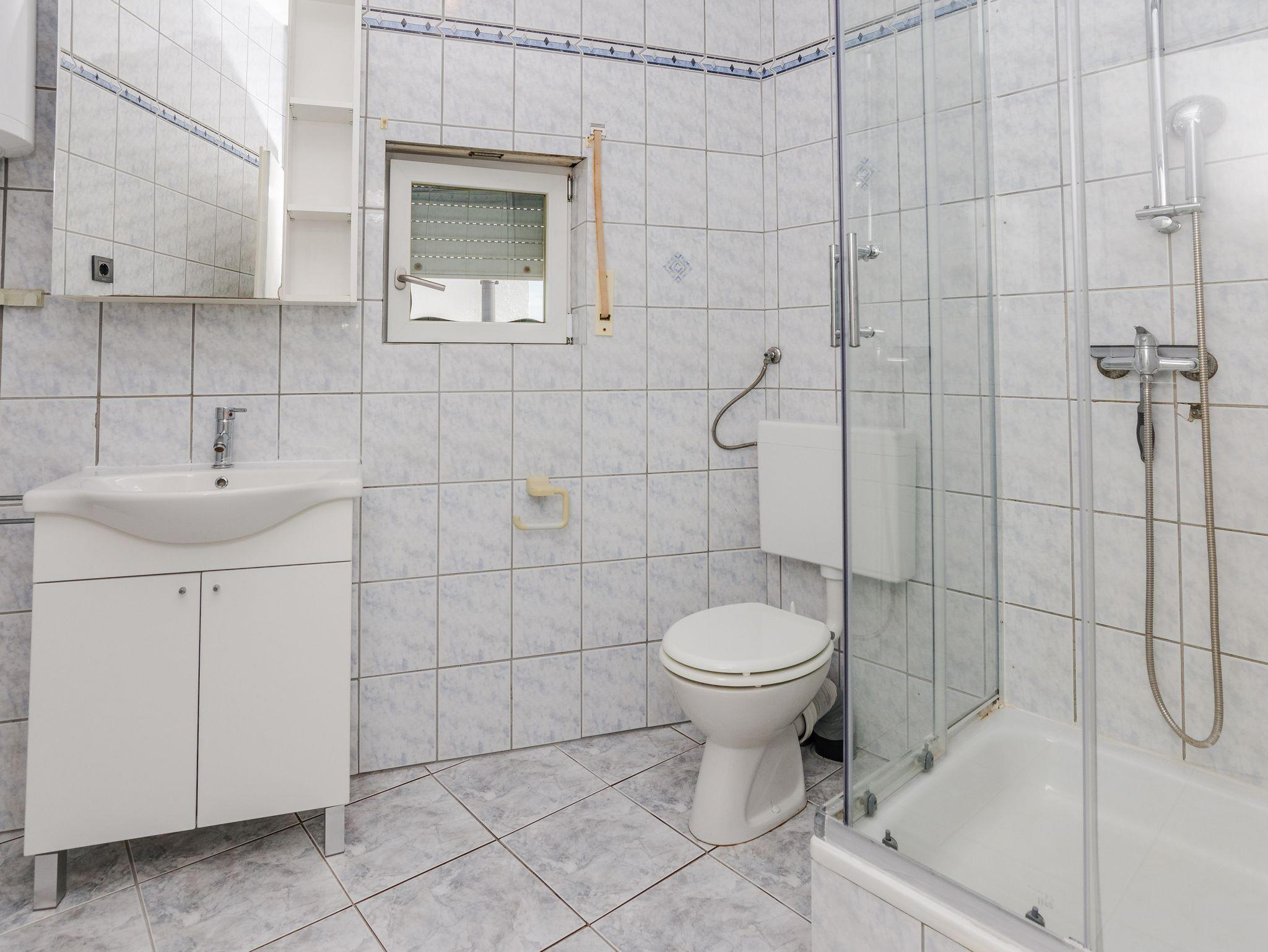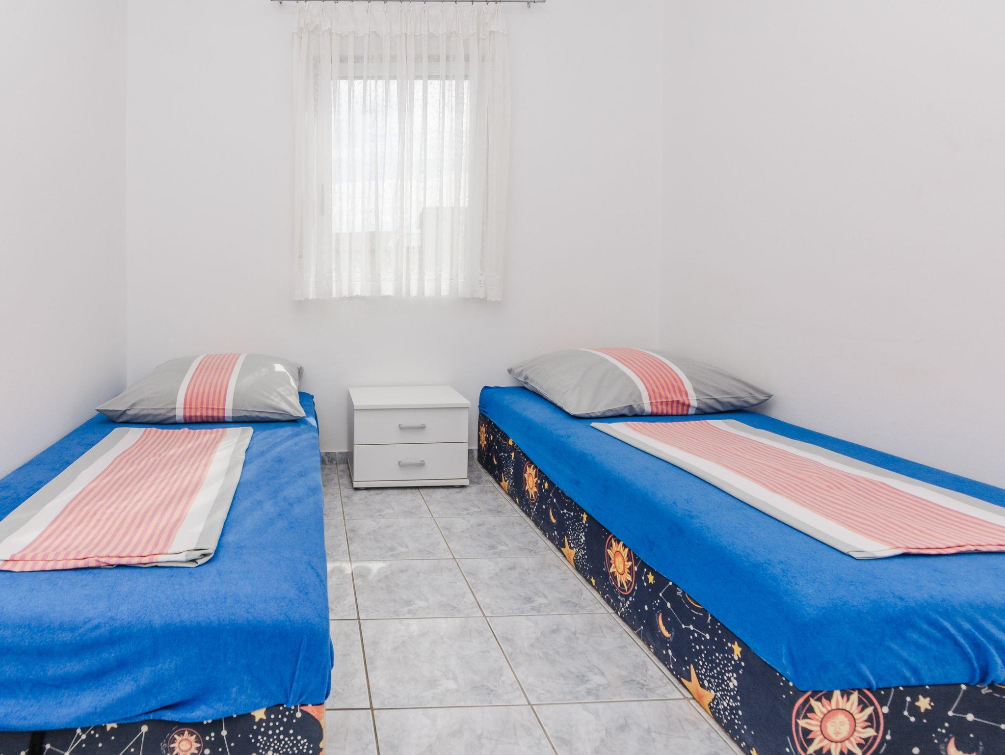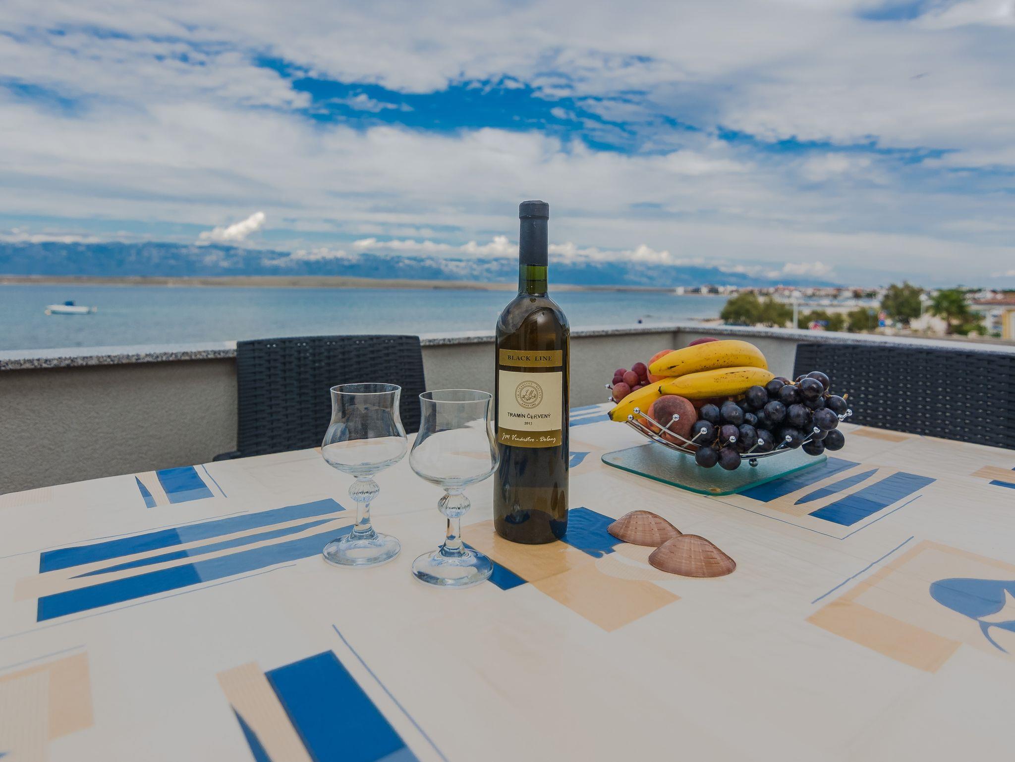 Ferienwohnung bietet Platz für 5 Gäste. Die Betten sind in Schlafzimmern, die es 2 gibt, und in Wohnzimmer, innerhalb einer Gesamtfläche von 38m2, angeordnet. Die Gäste haben eine eigene Terrasse zur Verfügung, auf der sie in warmen Sommernächten genießen können. Das Apartment bietet Meerblick. Es ist erlaubt, Speisen auf dem Gemeinschafts-Grill vorzubereiten. IM PREIS INBEGRIFFEN: Kurtaxe, Endreinigung, Klimatisierung, Parkplatz, Internet, Kinderbett, Föhn. VERBINDLICHE ZUSÄTZLICHE KOSTEN: Aufzahlung für Kurzaufenthalte (prozentualer Zuschlag pro Nächtigungsanzahl: 30% - 1, 20% - 2, 10% - 3). Die Verfügbarkeit zusätzlicher Dienstleistungen in Ihrem reservierten Termin und die Preise derselben (falls nicht aufgeführt) müssen im Voraus überprüft werden. Zusätzliche Dienstleistungen die in der Zahlungsaufforderung nicht aufgeführt sind werden direkt beim Vermieter bezahlt, angenommen der Gast nutzt auch diese.